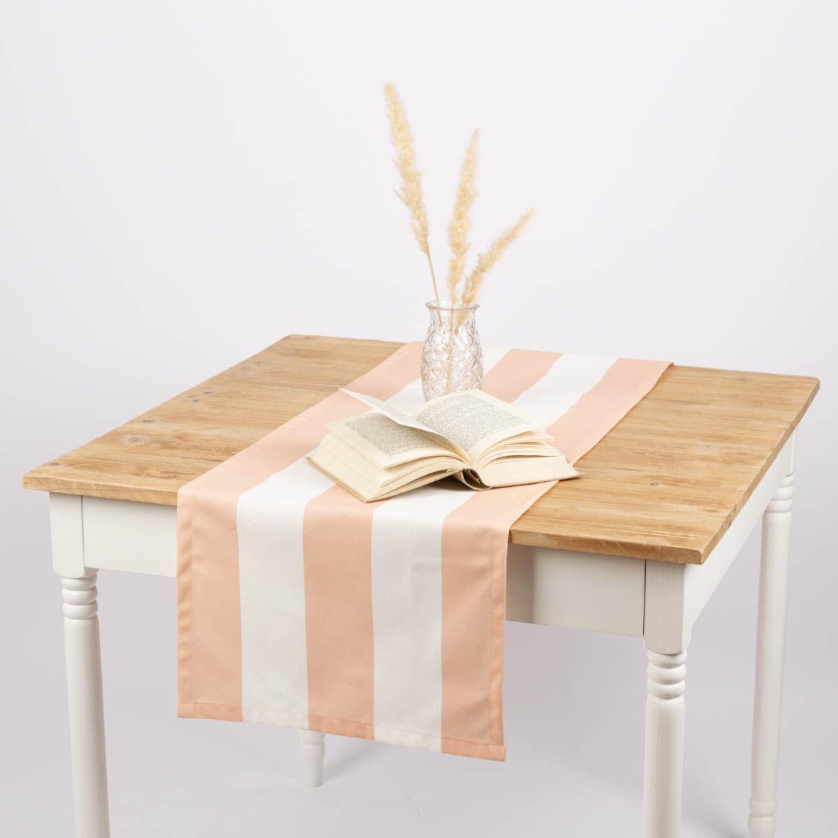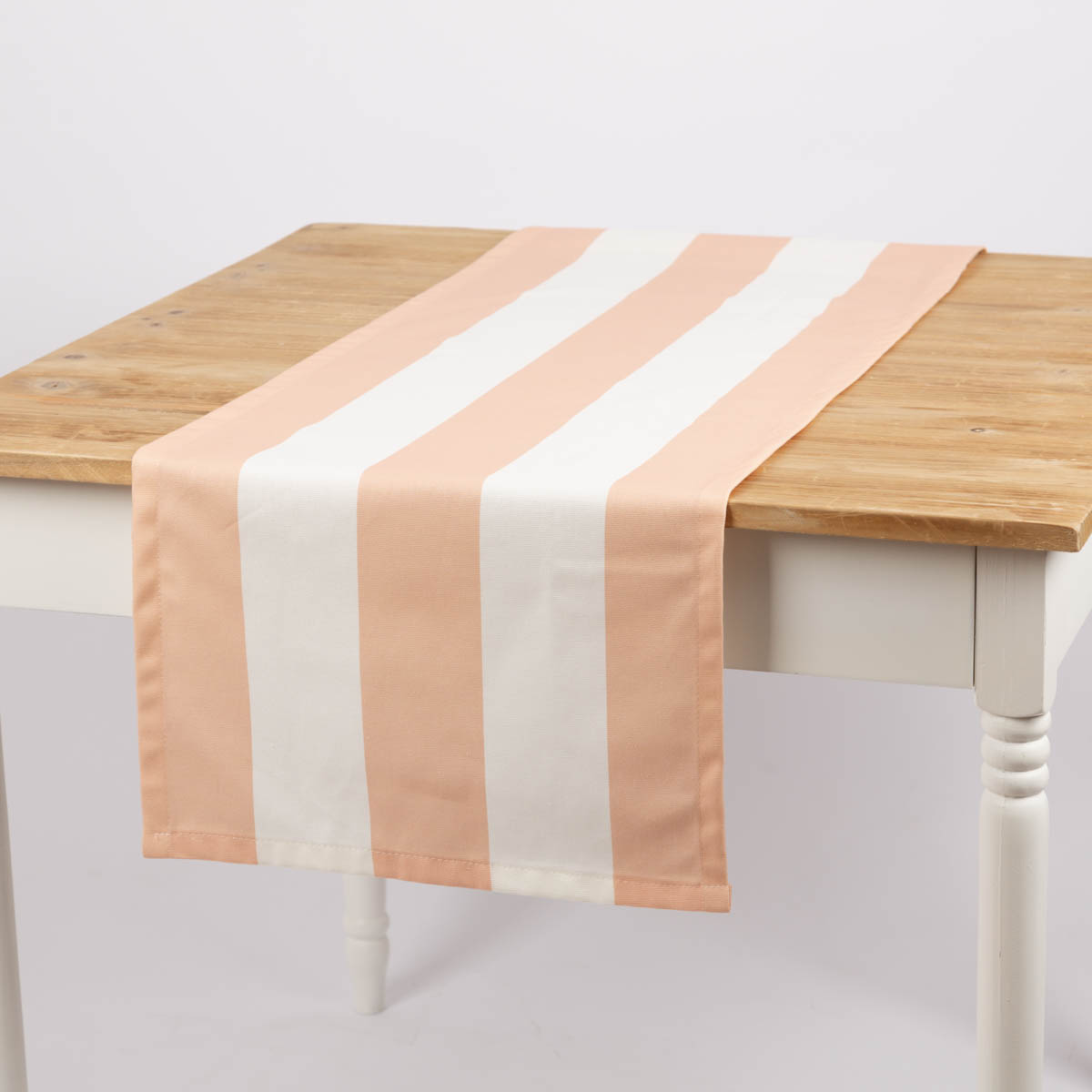Tischläufer aus Baumwolle mit Streifen in Peach und Ecru (40x160cm) – handgefertigt in Deutschland, Teil der SCHÖNER LEBEN. Kollektion