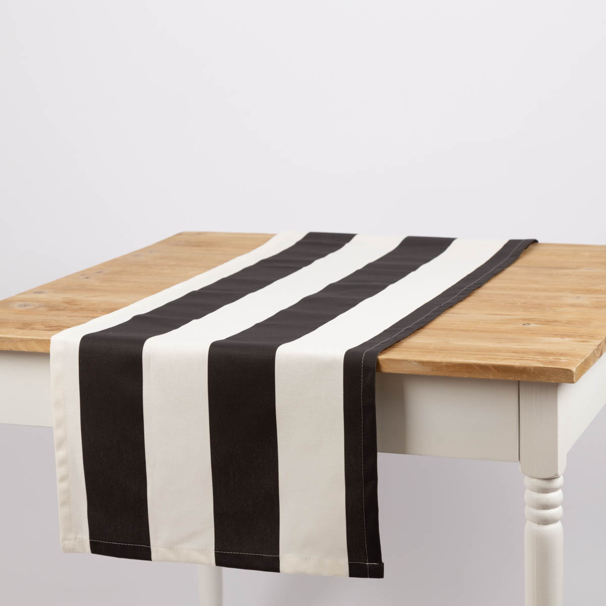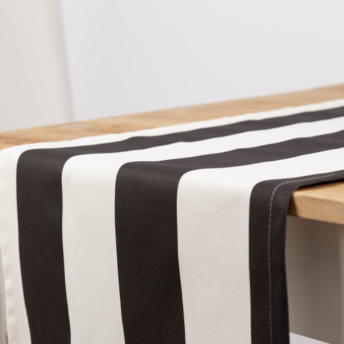 Tischläufer aus Baumwolle mit Streifen in Schwarz und Ecru (40x160cm) – handgefertigt in Deutschland, Teil der SCHÖNER LEBEN. Kollektion