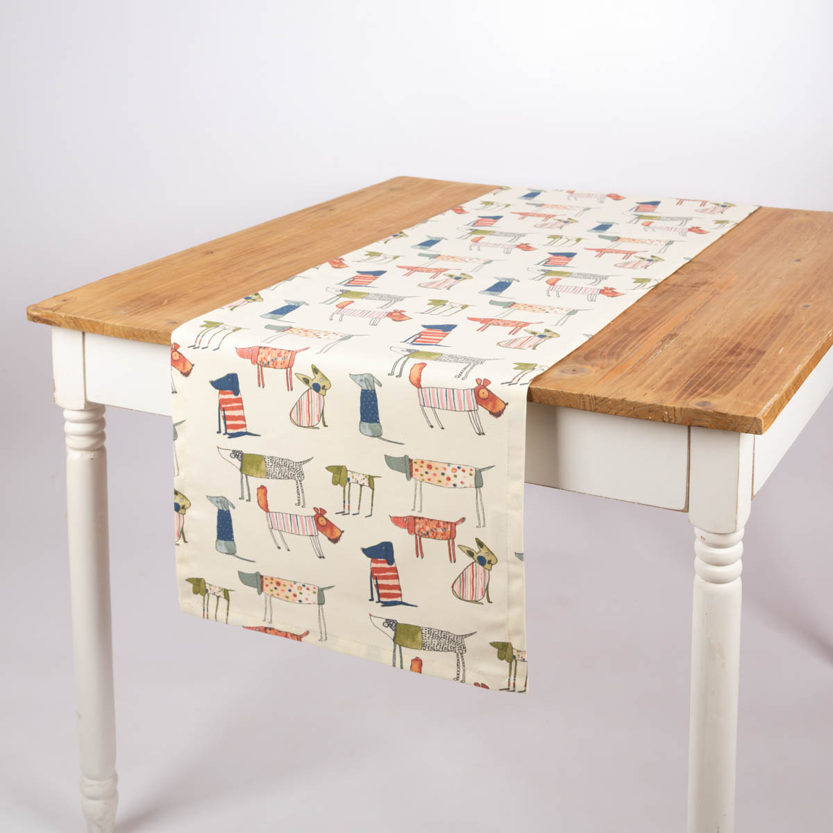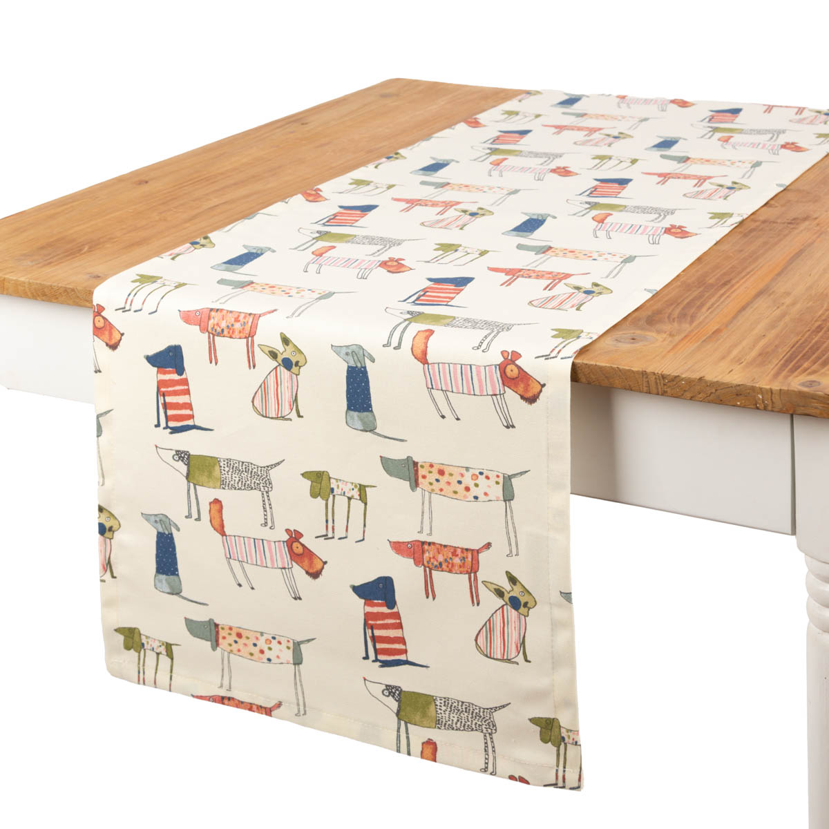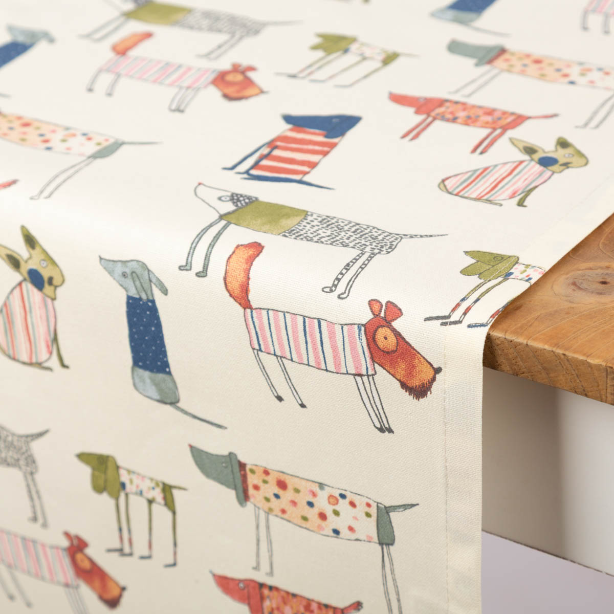 Tischläufer Baumwolle Hunde beige bunt 40x160cm von SCHÖNER LEBEN.