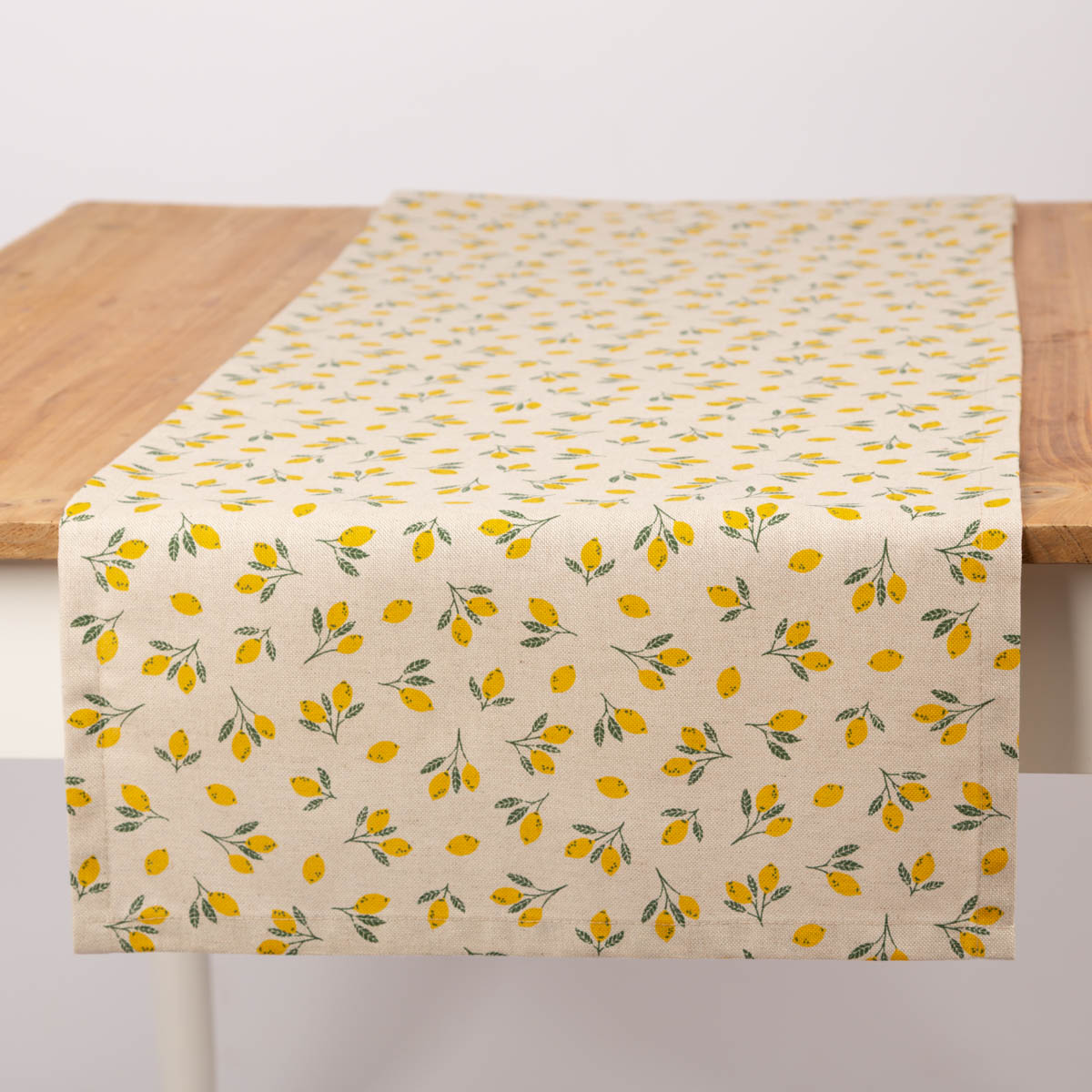 Frischer Tischläufer im Leinenlook mit Zitronen-Motiv in Gelb