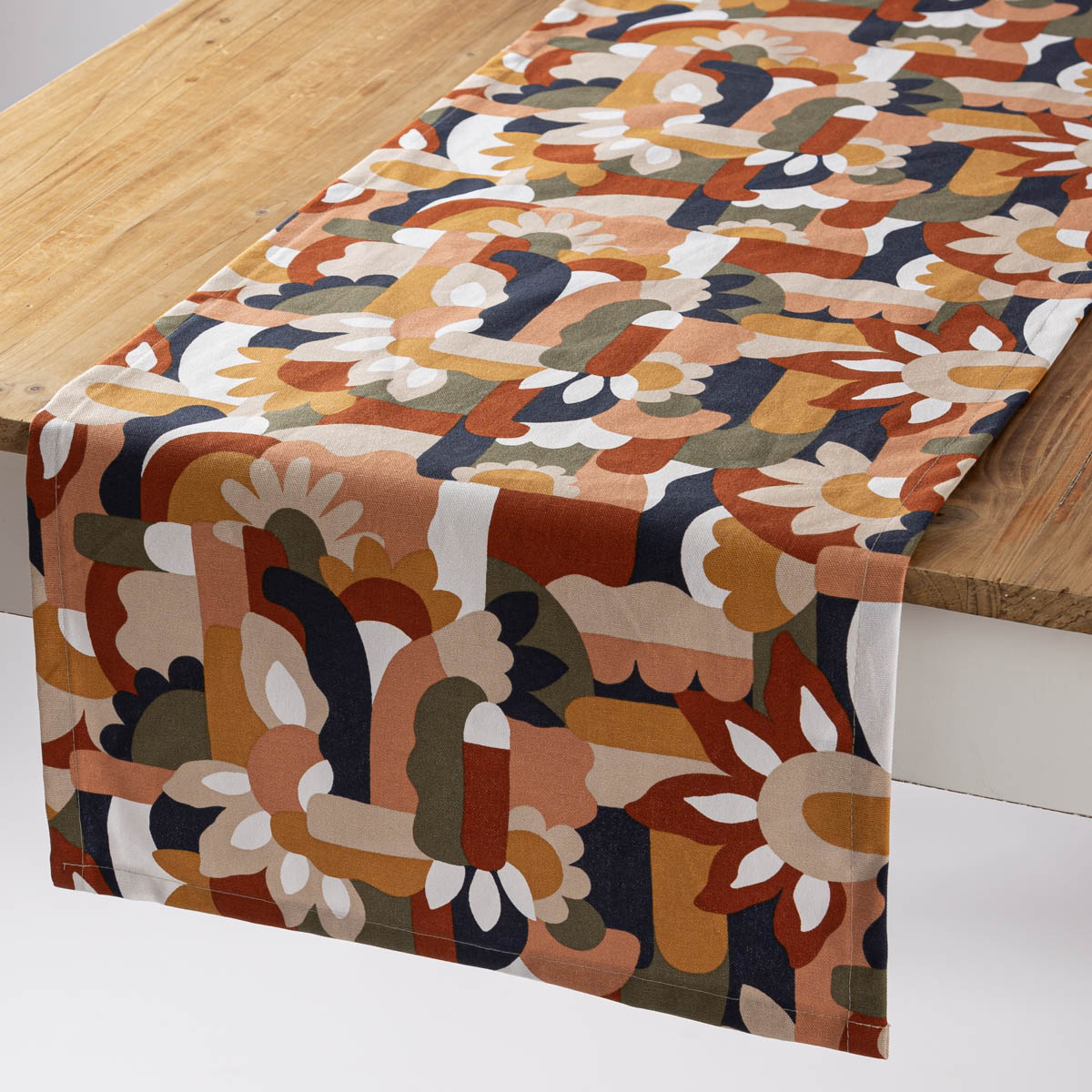 Retro Dessin: Der Tischläufer mit kräftigen warmen Farben und organischen Formen im Retro-Stil aus unserer Schöner Leben. Kollektion ist ein Hingucker auf deinem Tisch.