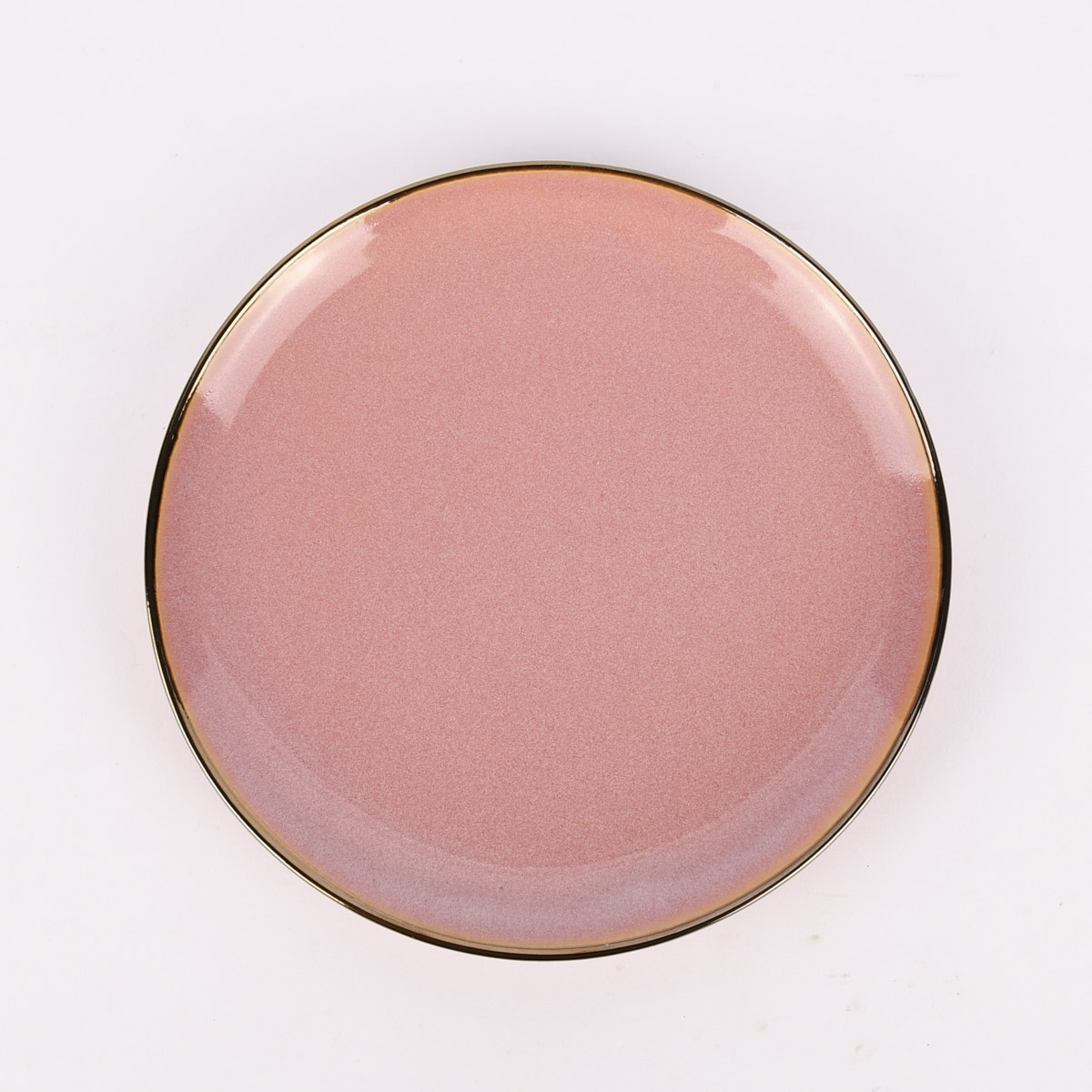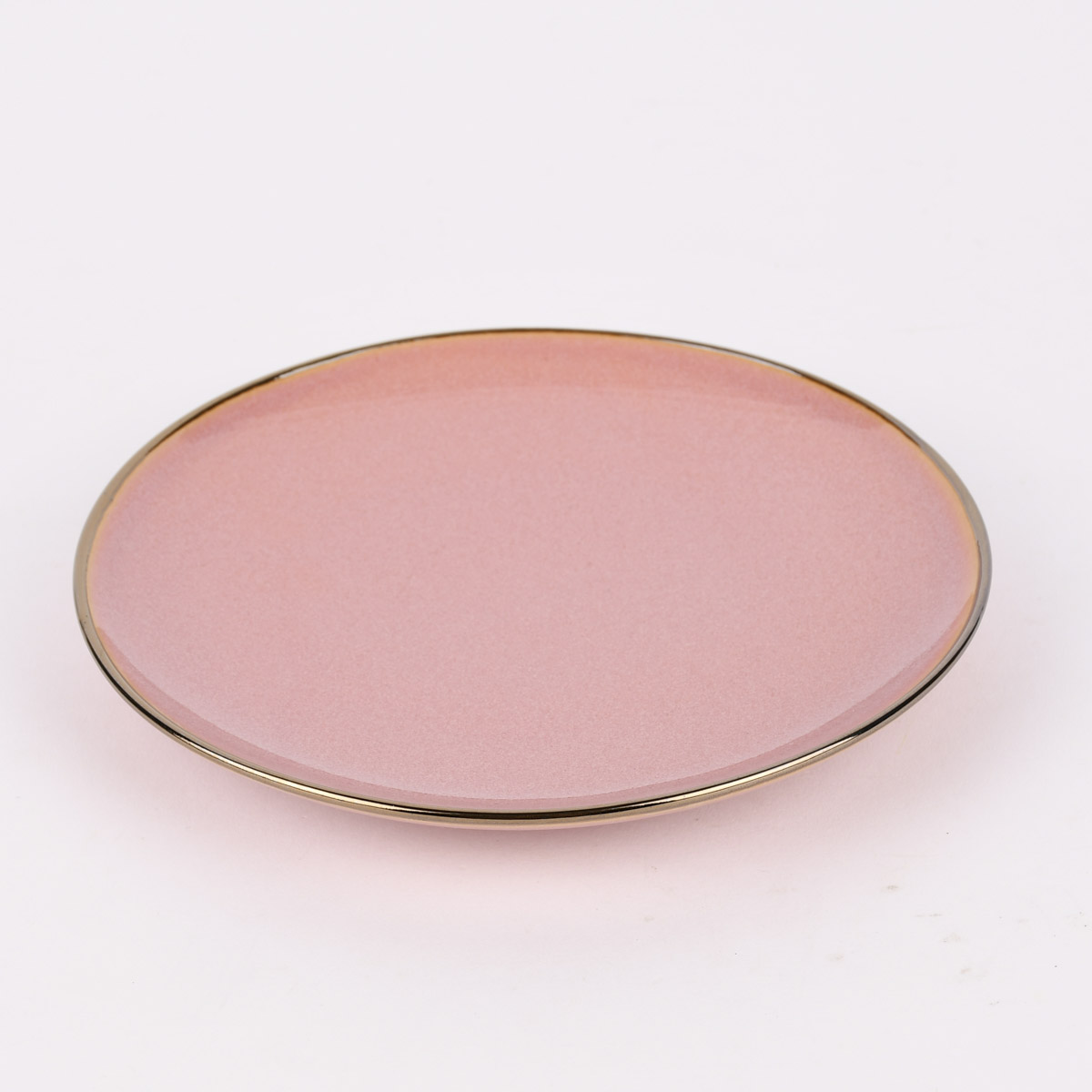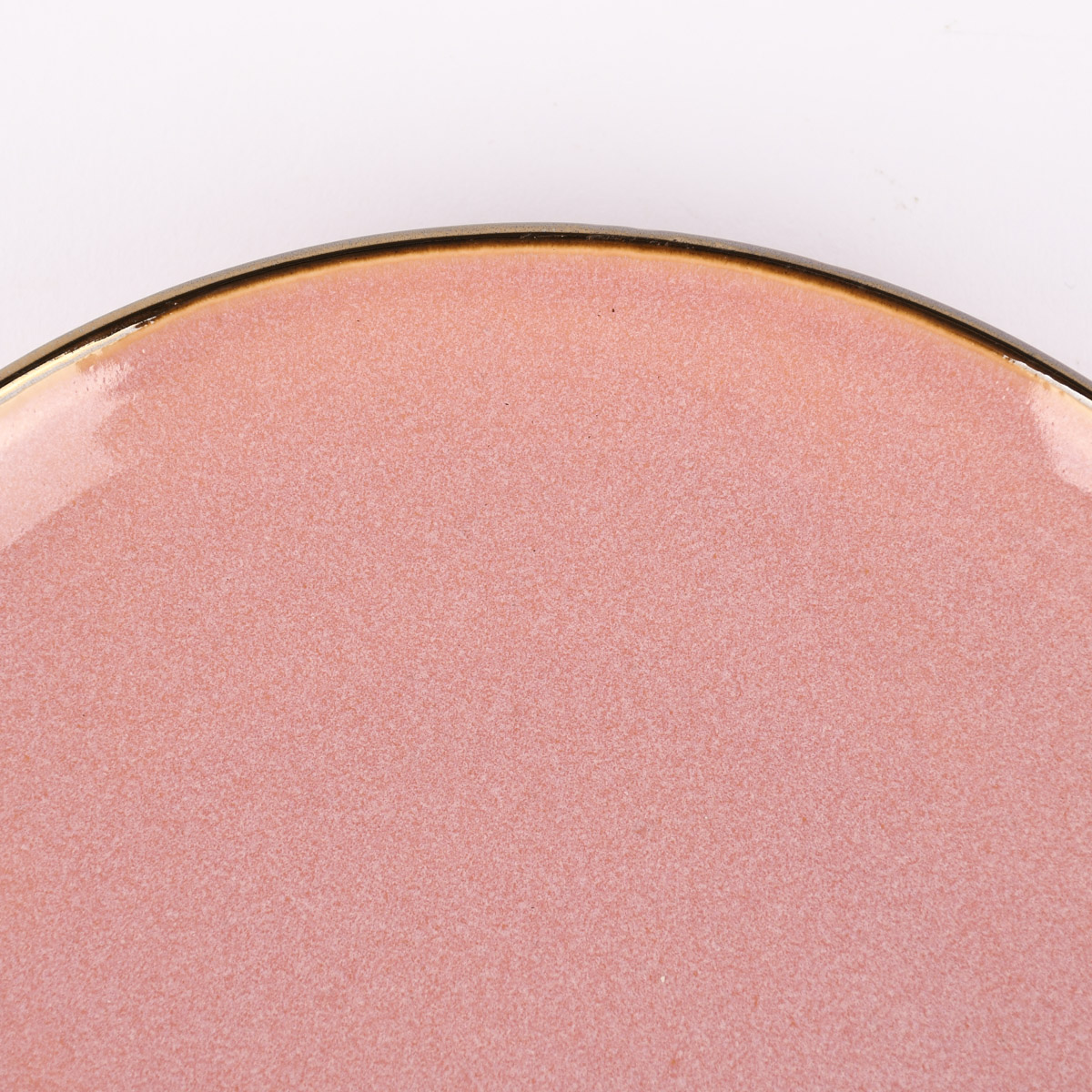 Die Teller- in Altrosa-Melange oder Cremeton erhältlich - gehören zu einer stylischen Geschirrserie mit speziellen Lasurakzenten.