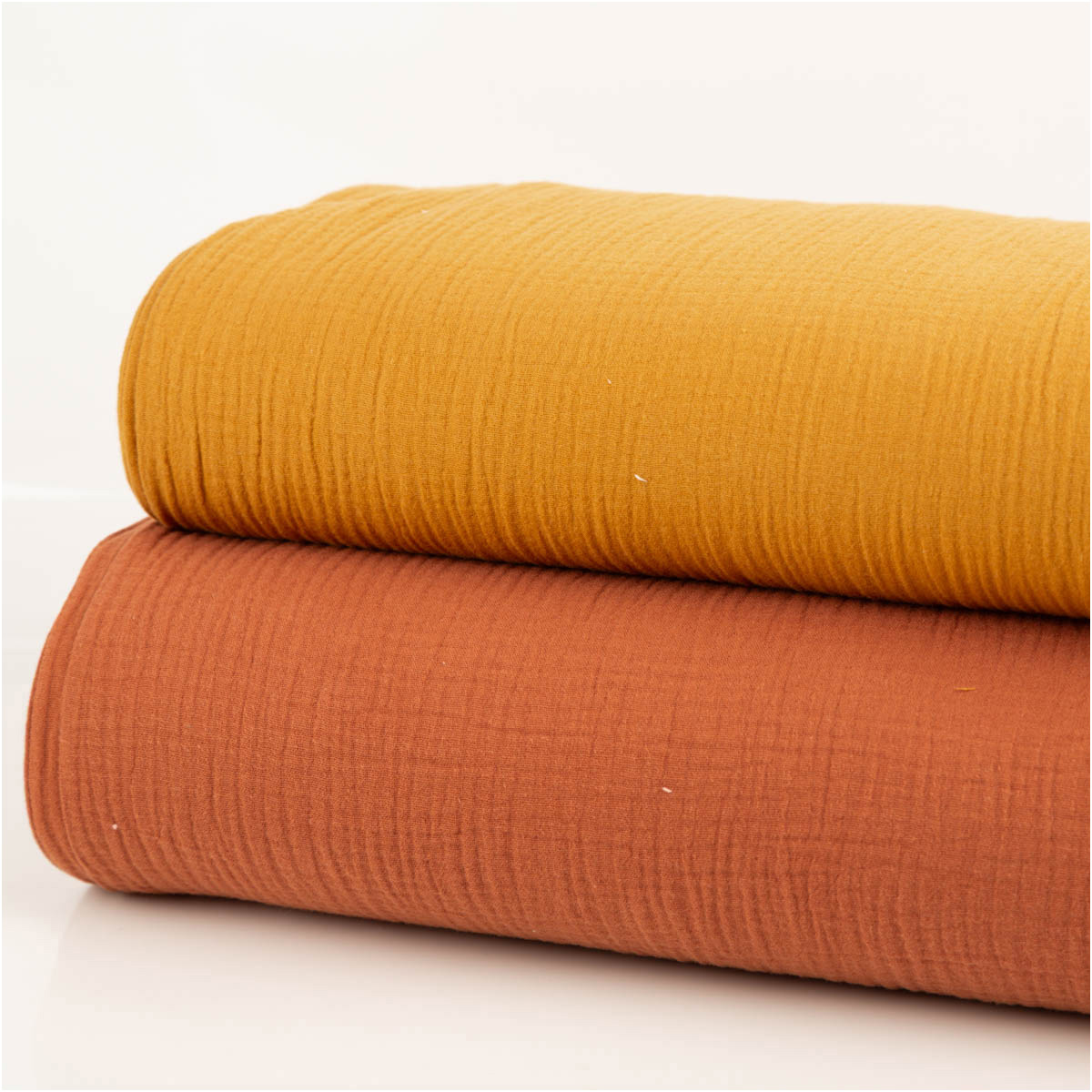 Dieser Musselin Stoff in warmem Cognac Braun überzeugt mit natürlicher Ausstrahlung, angenehmer Haptik und vielseitiger Einsetzbarkeit. Der zweilagige Bio-Baumwollstoff punktet mit seiner typischen Crinkle-Optik, ist atmungsaktiv und besonders hautfreundlich. Ideal für zeitlose Mode, stilvolle Wohnaccessoires sowie für Baby- und Kinderprojekte.