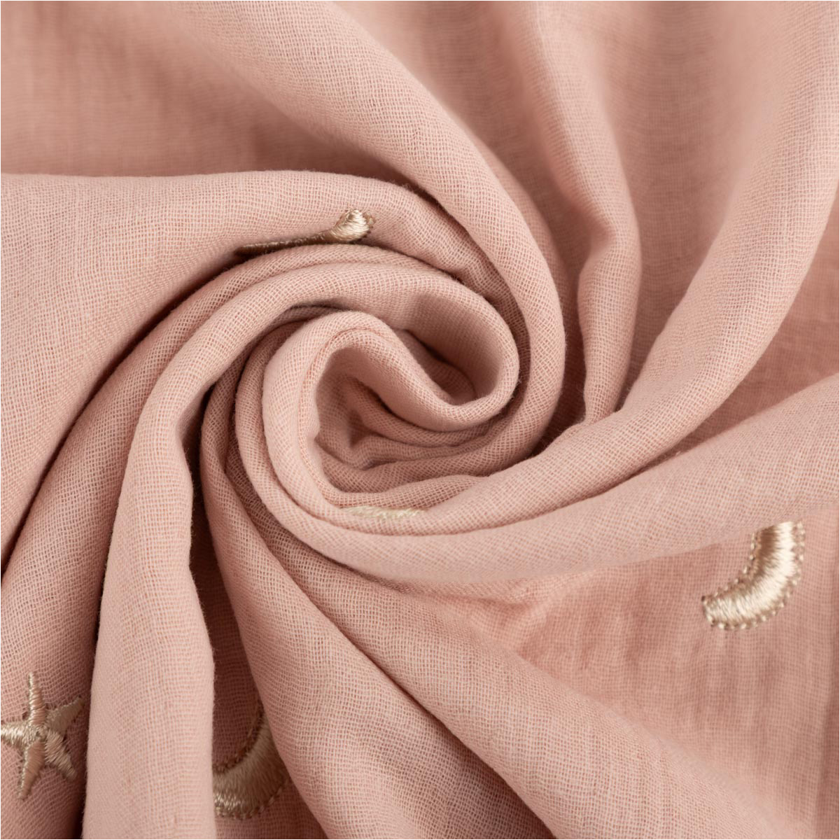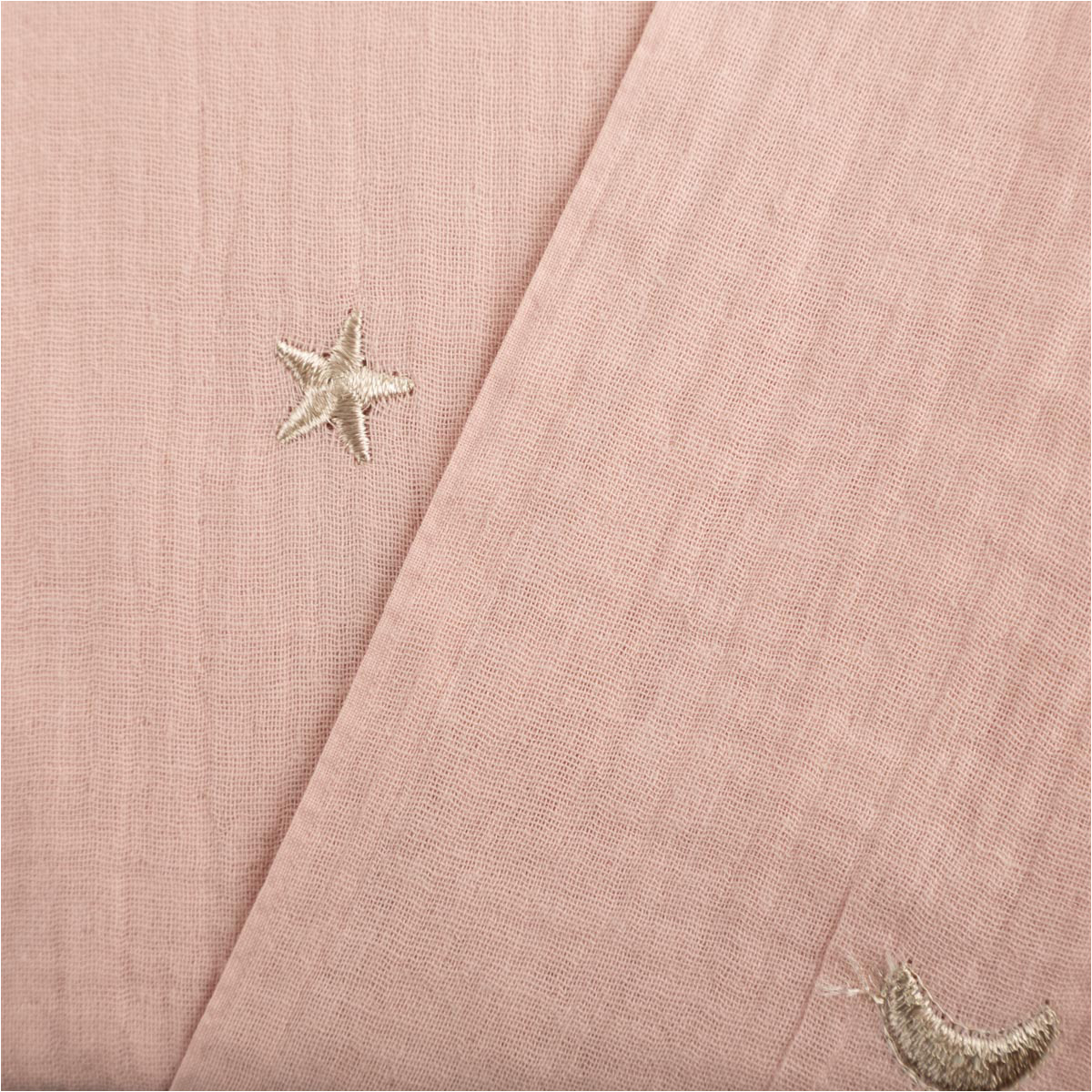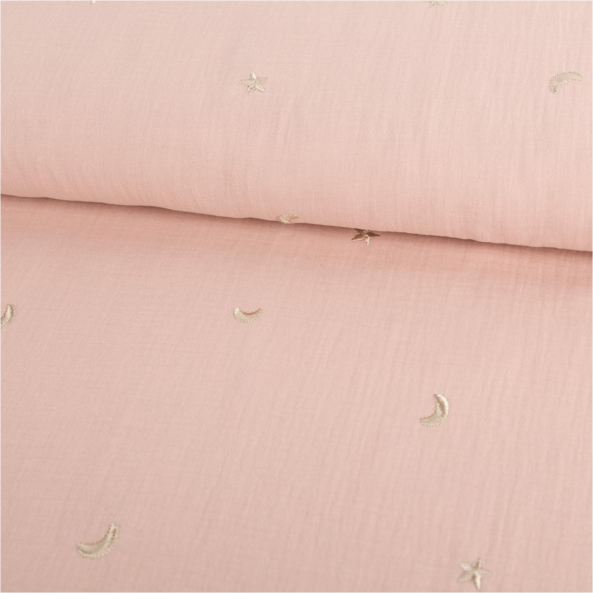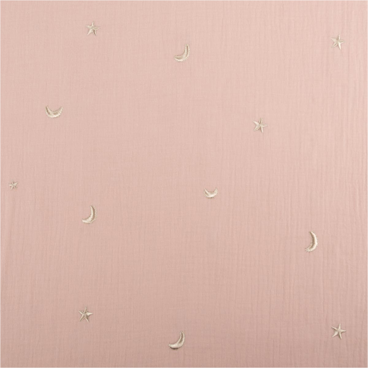 Musselin Stoff Double Gauze STARS – Stickerei Sterne & Mond, rosa