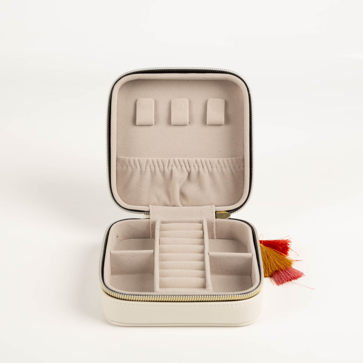 Separate Fächer für Ohrringe und kleine Schmuckstücke