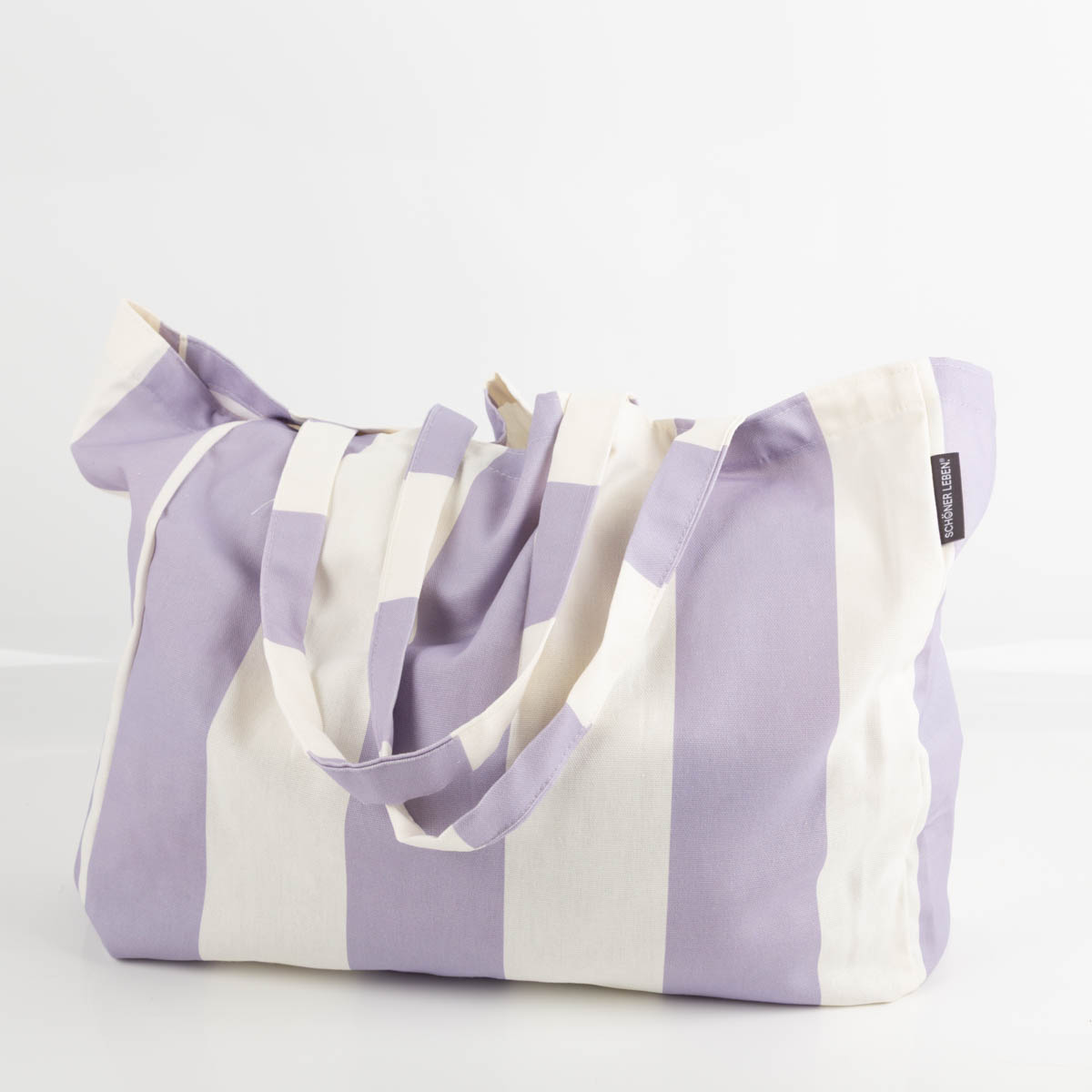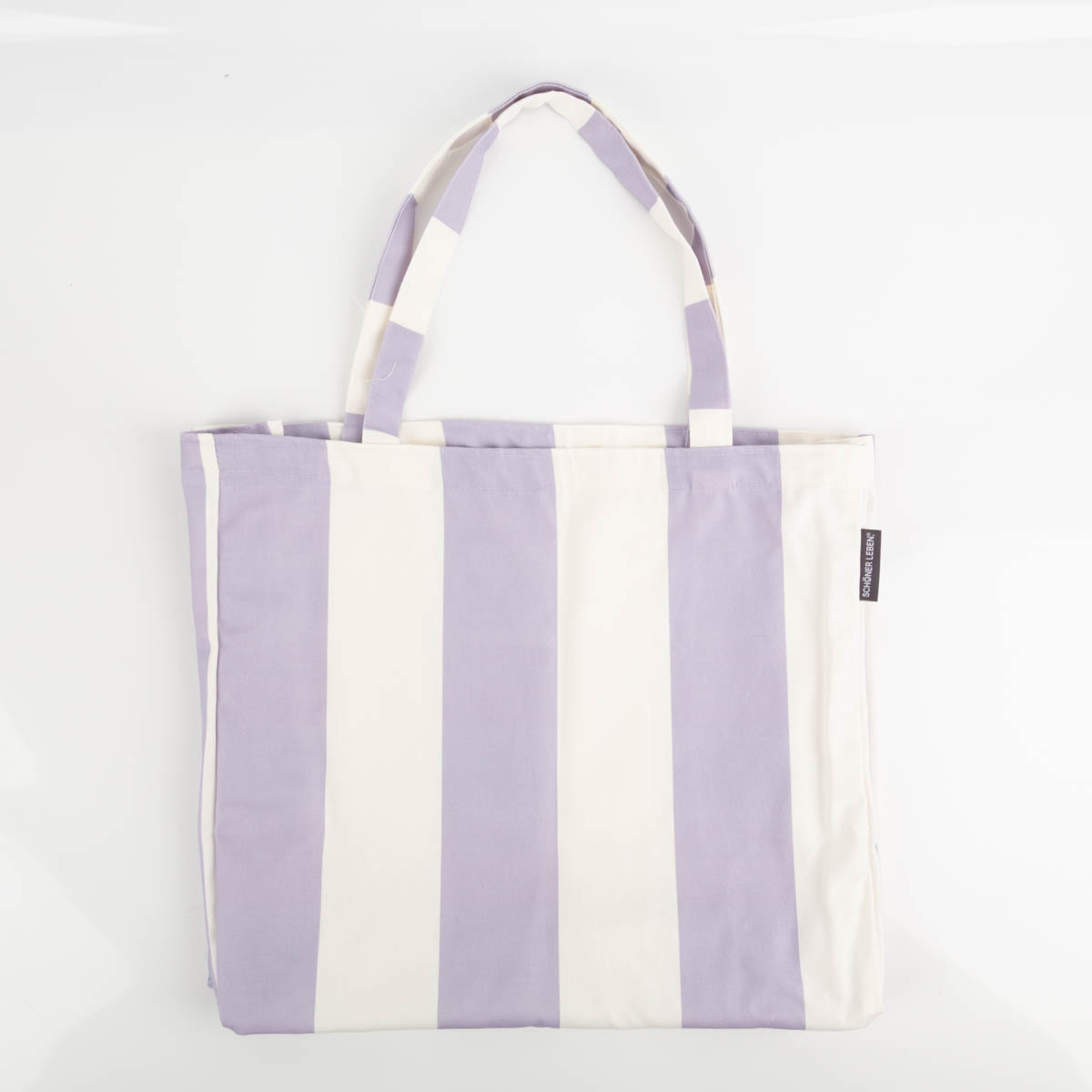 Tasche Shopper aus Baumwolle mit Streifen flieder ecru von SCHÖNER LEBEN.