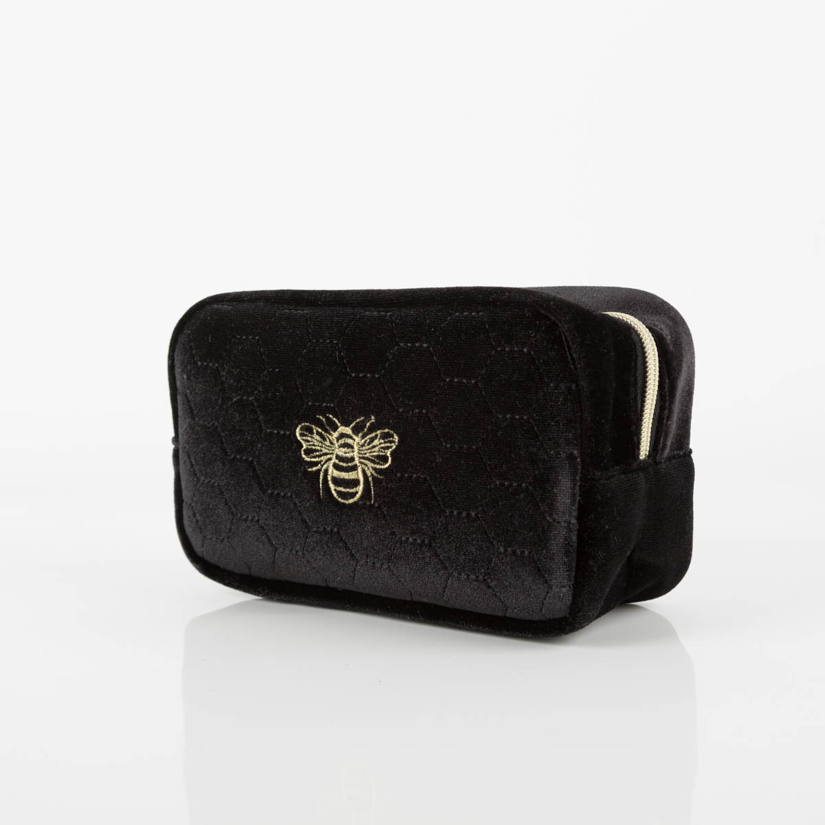 Bezaubernde Bee Makeup Bag von Sass & Belle in Schwarz und Gold in der Größe 9x18x13cm (BxLxH)