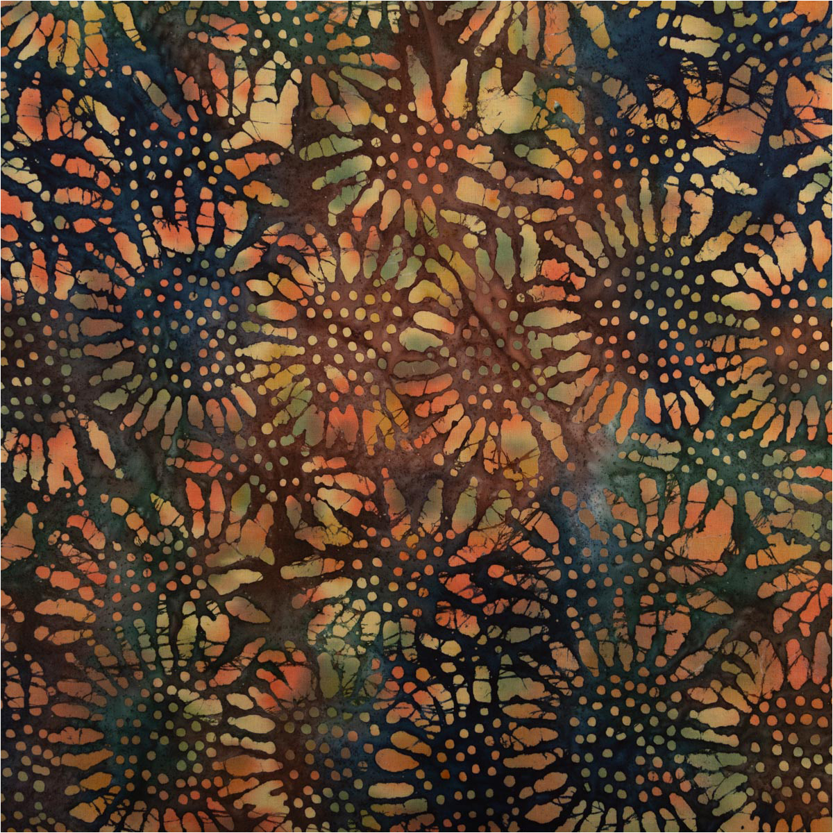 Baumwollstoff Unique Crafted Batik Cotton Blumen grün orange 1,37m Breite