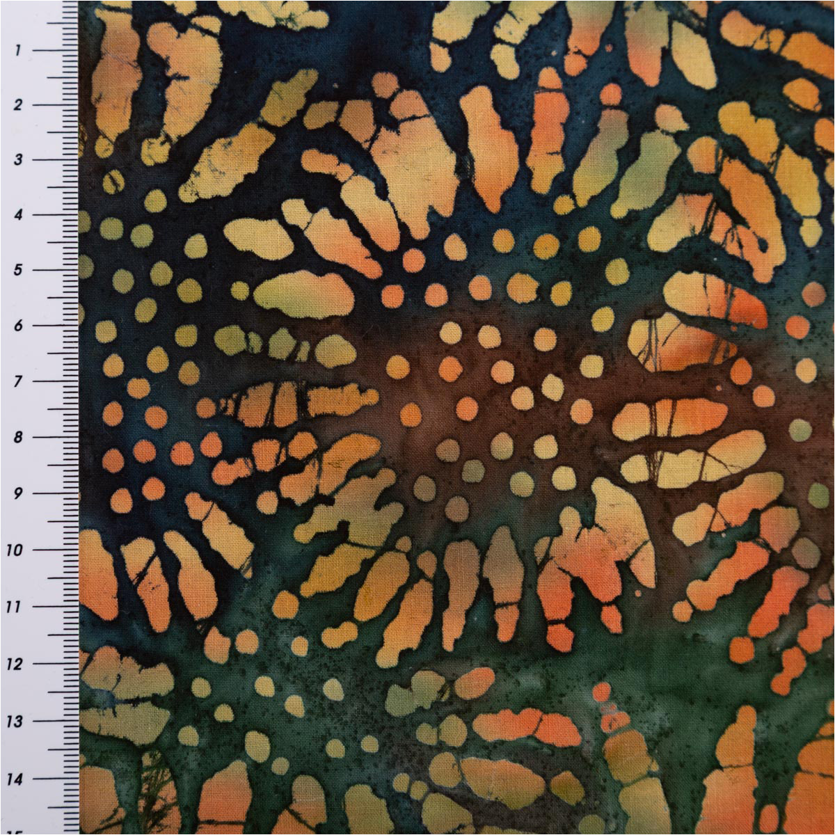 Baumwollstoff Unique Crafted Batik – Blumen-Dessin in Grün und Orange 1,37 m Breite, weich & luftig für Sommermode im Boho-Style