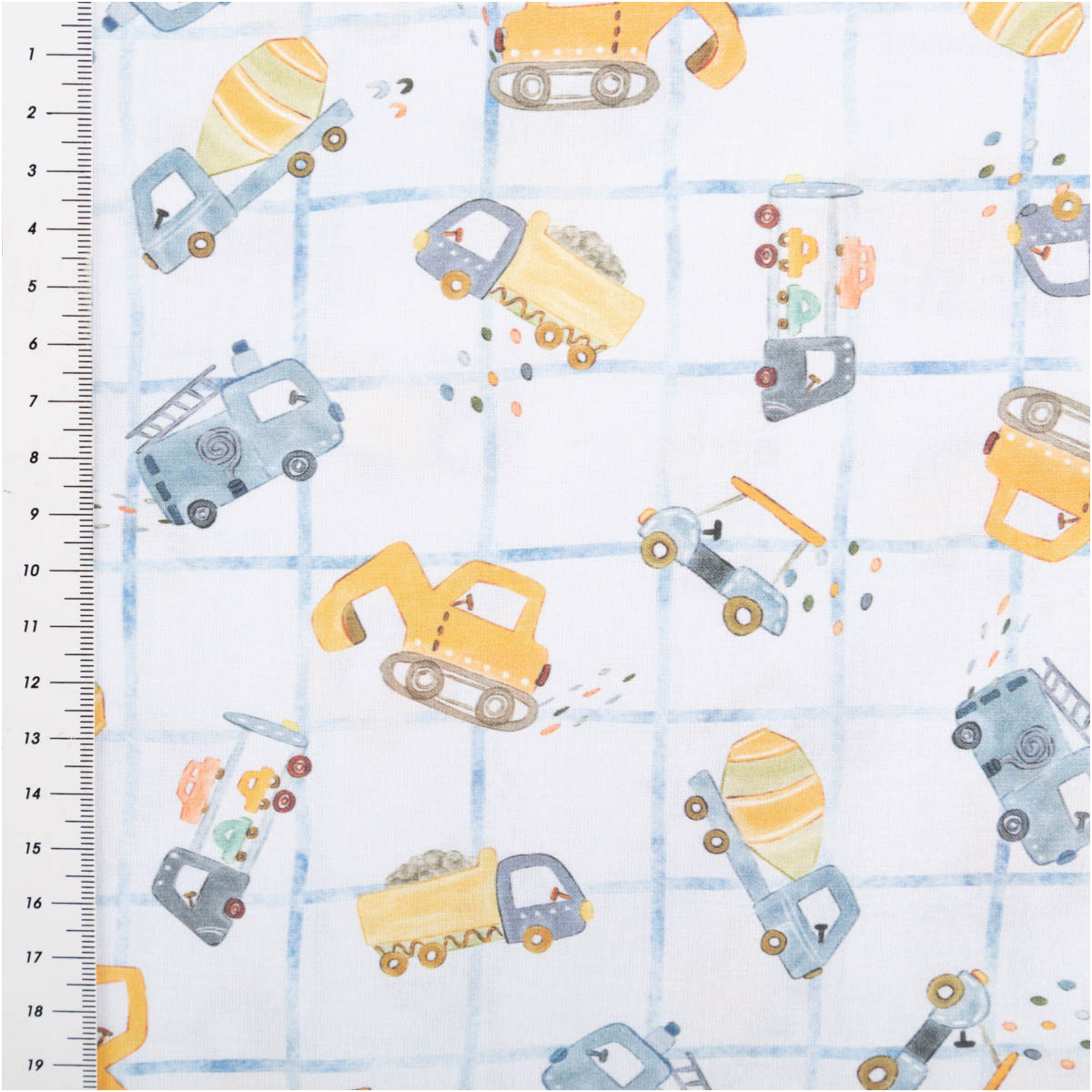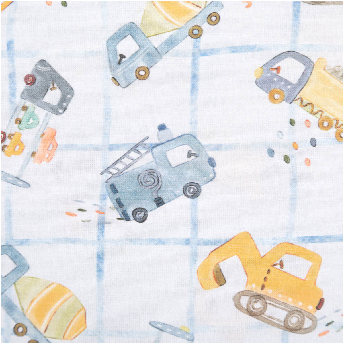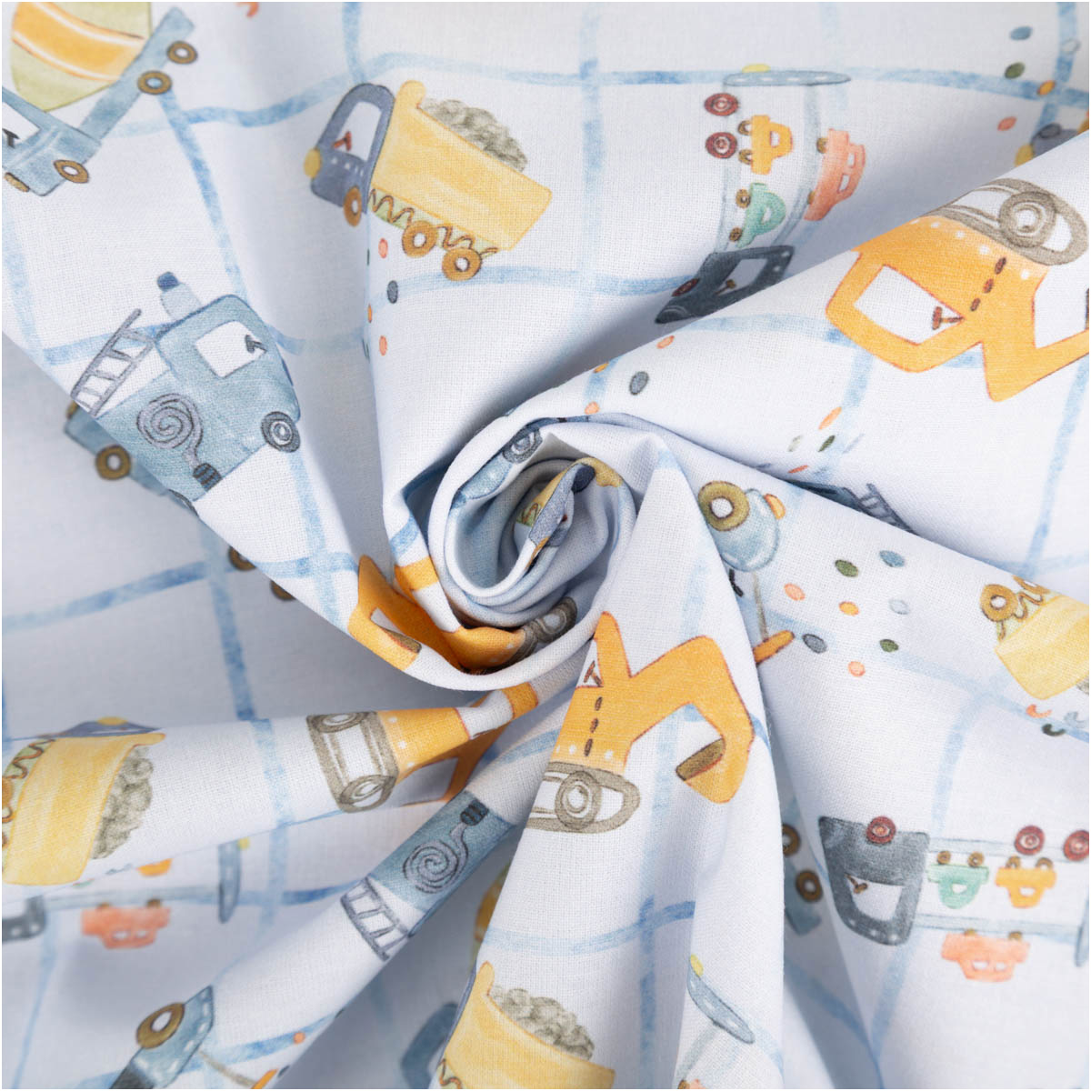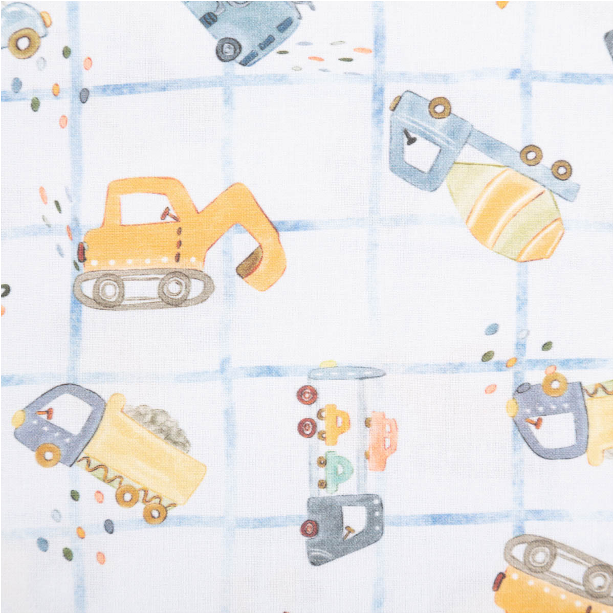 Dieser hochwertige Baumwollstoff Popeline begeistert mit einem liebevoll gestalteten Baufahrzeuge-Dessin. Kleine Bagger, Betonmischer, Kipplaster und Fahrzeuge verteilen sich spielerisch auf einem hellen Grund mit feinem Karomuster in Blau. Die harmonische Farbwelt aus Blau-, Gelb- und Naturtönen wirkt freundlich, modern und perfekt auf Kinder abgestimmt. Das exklusive französische Dessin macht diesen Stoff zu etwas ganz Besonderem.