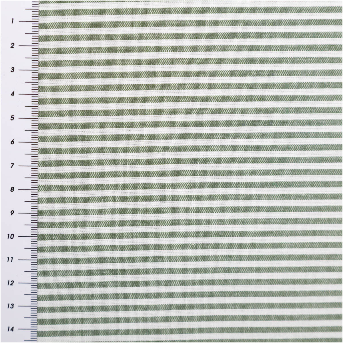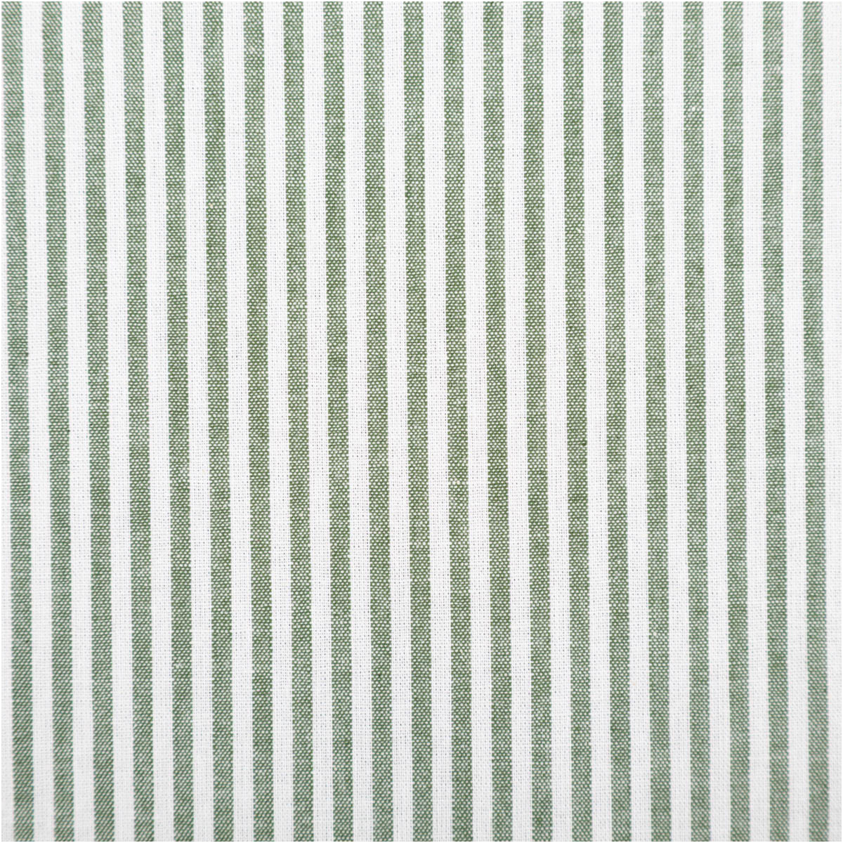 Die feinen Streifen in dunkelgrün und weiß verleihen dem Stoff eine zeitlose, frische und stilvolle Optik. Das Muster wirkt klassisch und klar, ohne aufdringlich zu sein. Dadurch passt der Stoff sowohl zu moderner Kleidung als auch zu geschmackvollen Wohntextilien und Accessoires.