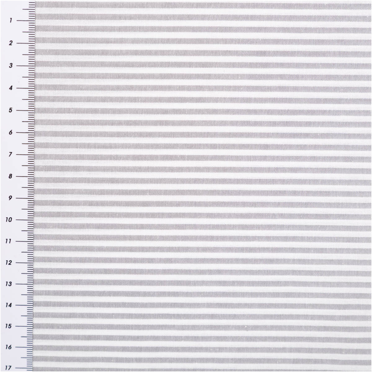 Die feinen Streifen in grau und weiß verleihen dem Stoff eine zeitlose und stilvolle Optik. Das Muster wirkt klassisch und klar, ohne aufdringlich zu sein. Dadurch passt der Stoff sowohl zu moderner Kleidung als auch zu geschmackvollen Wohntextilien und Accessoires.