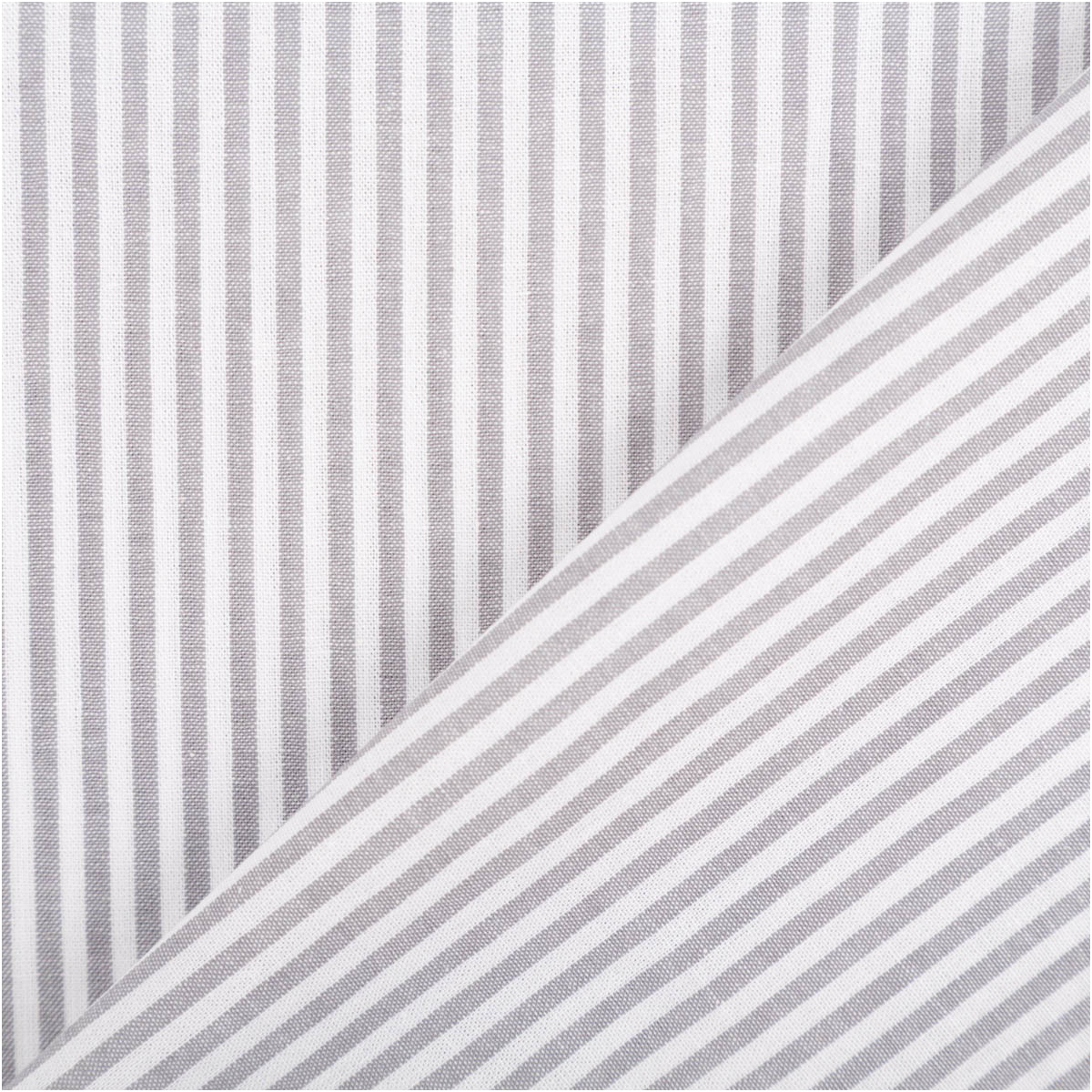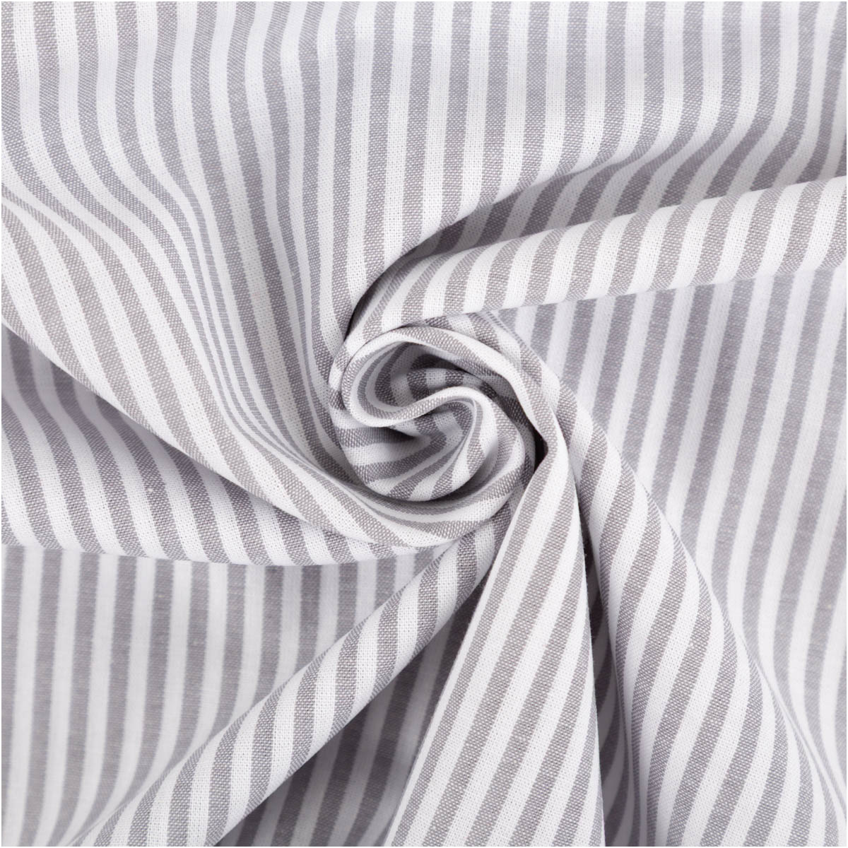 Dieser Baumwollstoff als Popeline Meterware begeistert mit feinen 3-mm-Streifen in grau und weiß, einer angenehm glatten Haptik und einer hochwertigen garngefärbten Qualität. Durch die Yarn-Dyed-Verarbeitung werden die Garne bereits vor dem Weben gefärbt. So entsteht ein besonders gleichmäßiges, klares Streifenbild, das auf Vorder- und Rückseite schön wirkt und dem Stoff eine edle, textile Ausstrahlung verleiht.