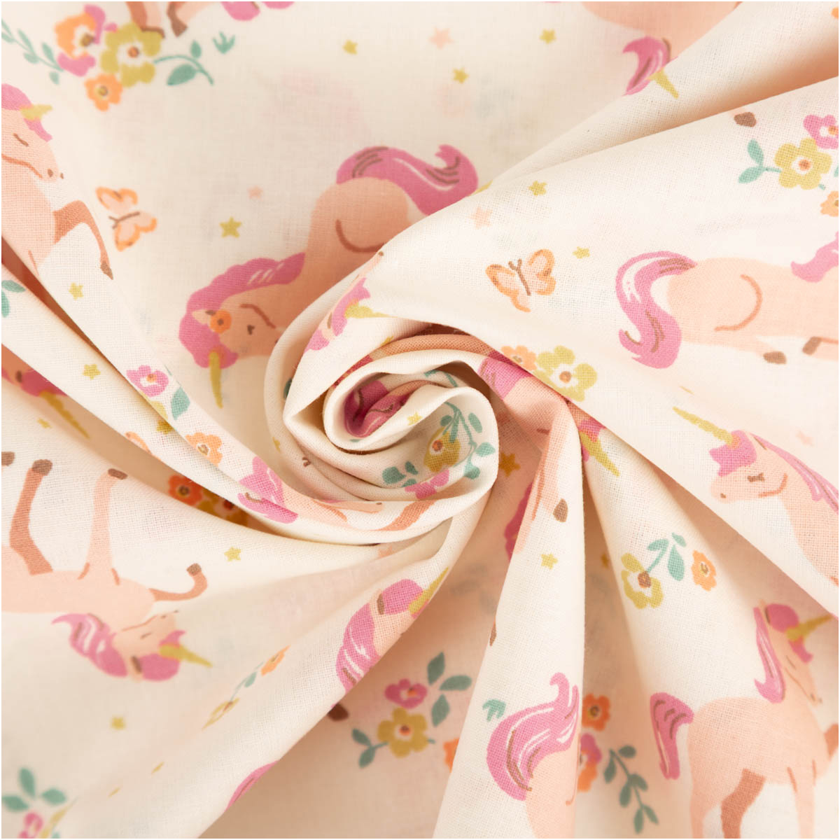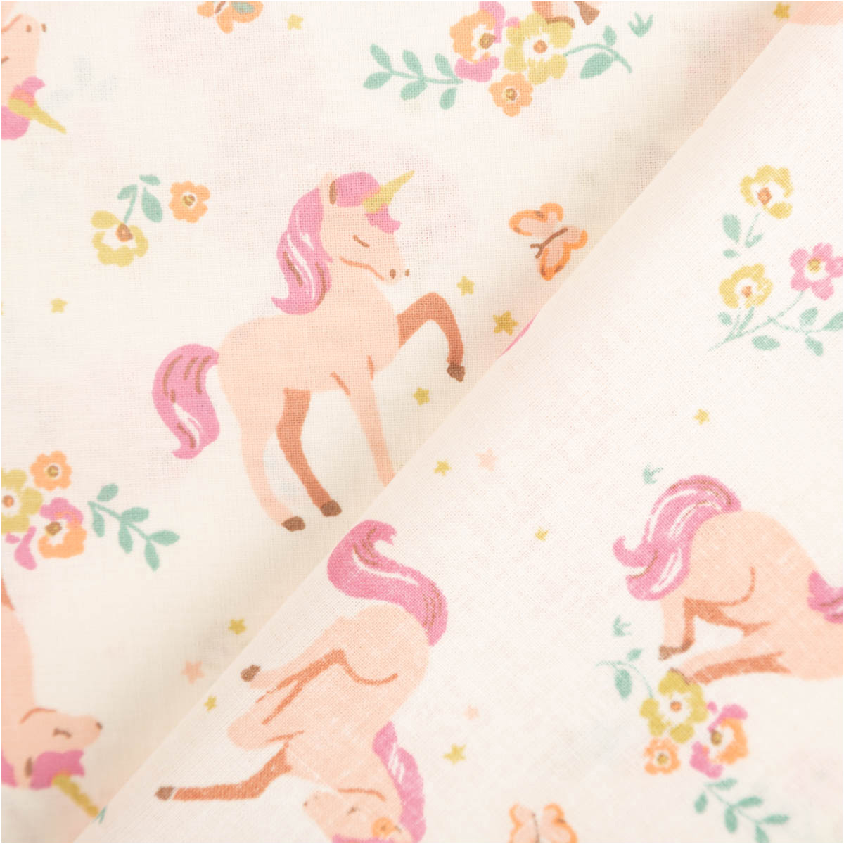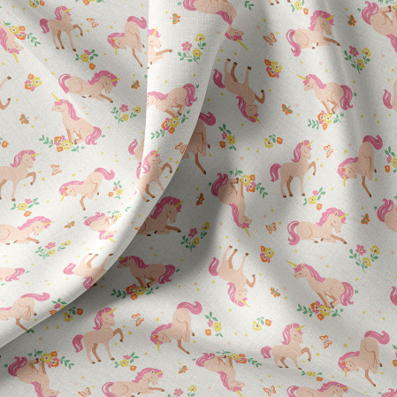 Baumwollstoff „Lilic“ mit Einhörnern und Blumen – zeitlos & verspielt