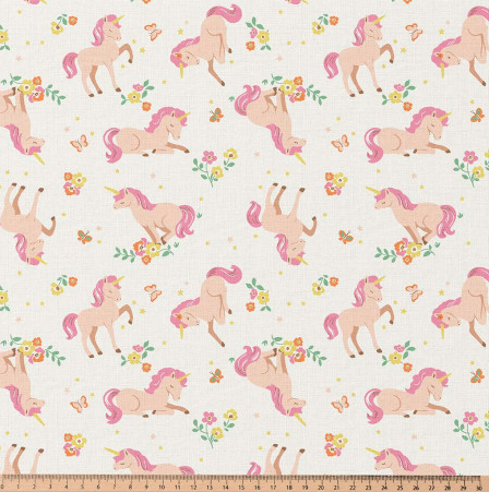 Baumwollstoff Lilic Einhörner Blumen ecru rosa 1,47m Breite