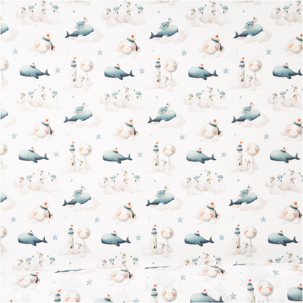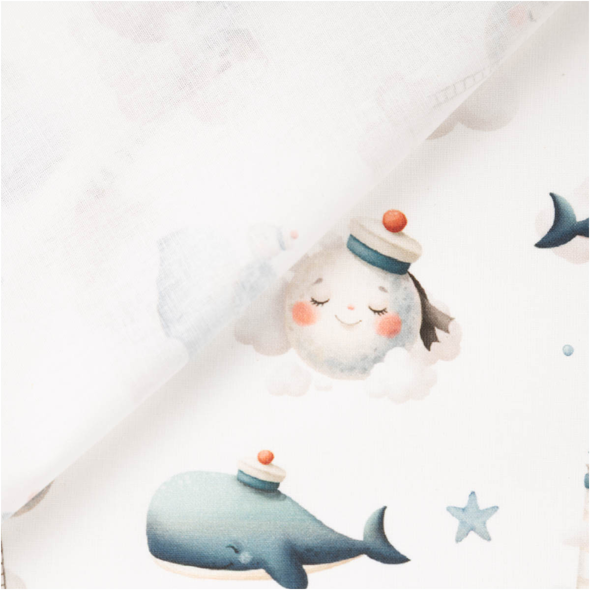 Leichter Baumwollstoff mit fantasievollem Dessin aus Wal, Mond und Wolken