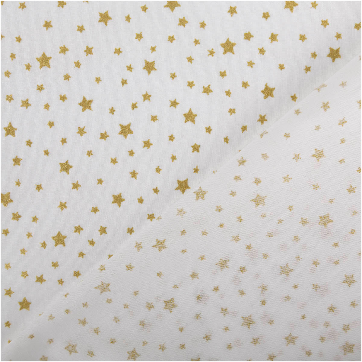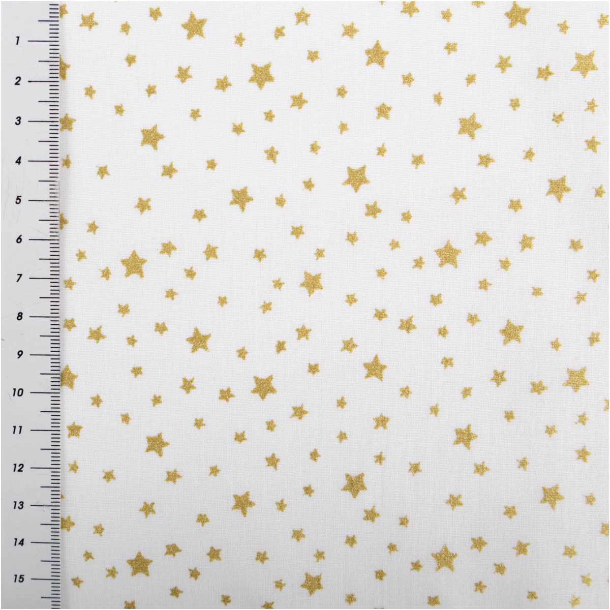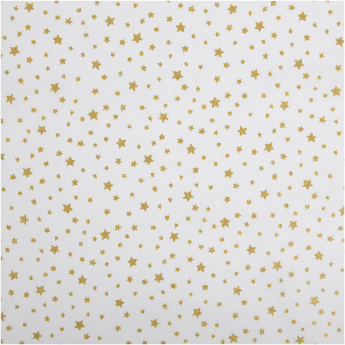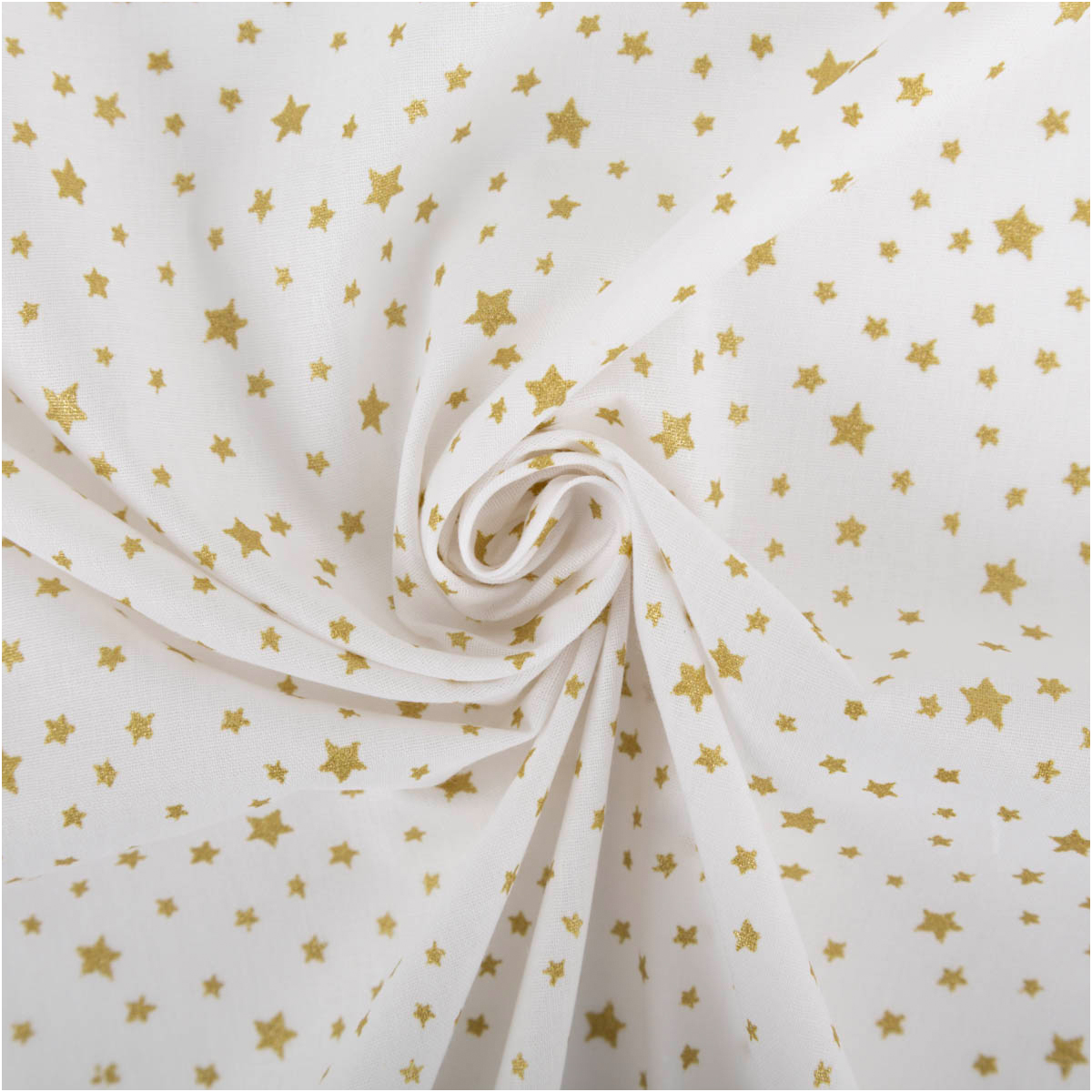Baumwollstoff mit altgoldenen Sternchen auf weißem Grund