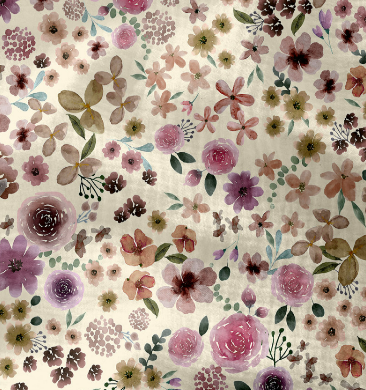 Dieser hochwertige Musselin Stoff aus 100 % Baumwolle begeistert mit einem detailreichen Blüten-Digitaldruck in harmonischen Ecru-, Lila- und Rosatönen. Das florale Dessin „Hortense“ wirkt weich, elegant und zeitlos zugleich. Durch den besonders feinen Digitaldruck kommen Farben und Details klar und hochwertig zur Geltung – ideal für anspruchsvolle Nähprojekte im Baby-, Kinder- und Wohnbereich.