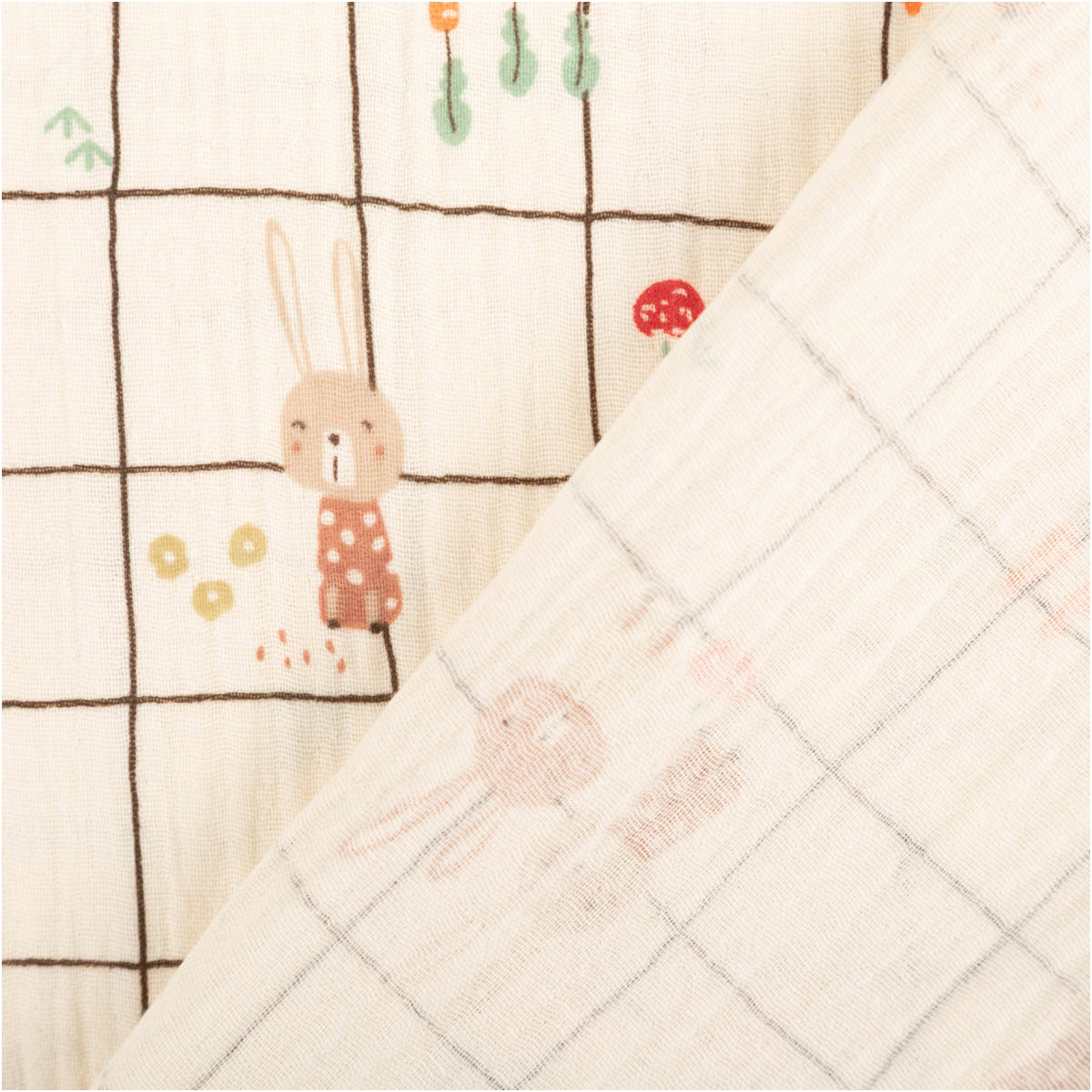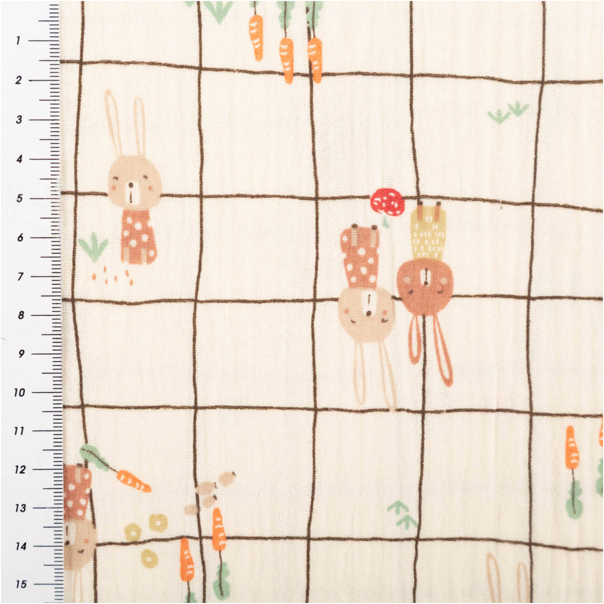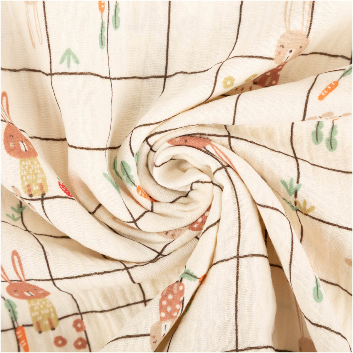 Musselin Stoff Baumwolle Ilyes Hasen Karo ecru bunt – 1,30 m Breite