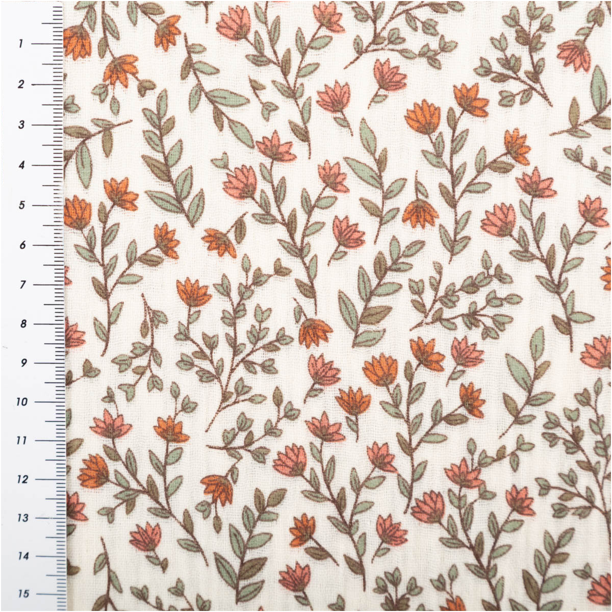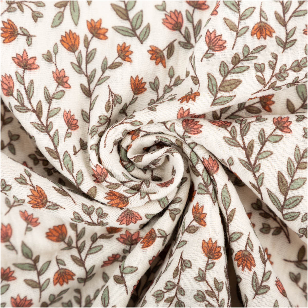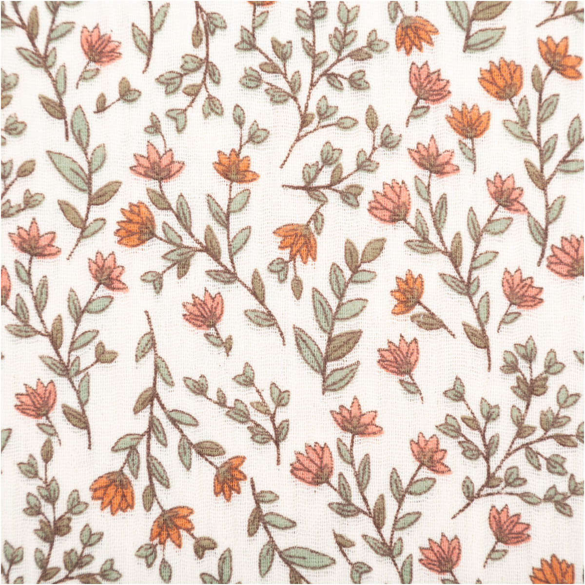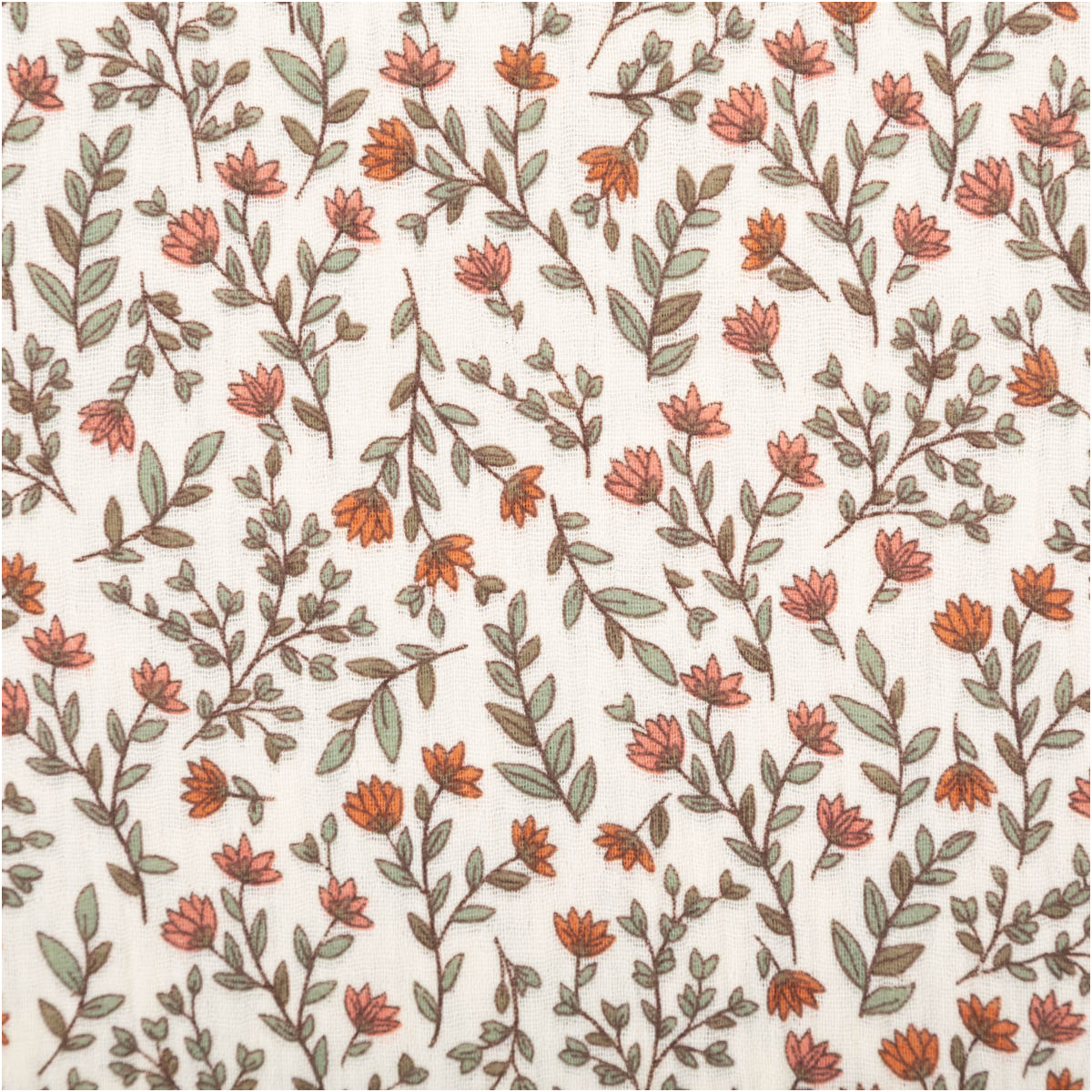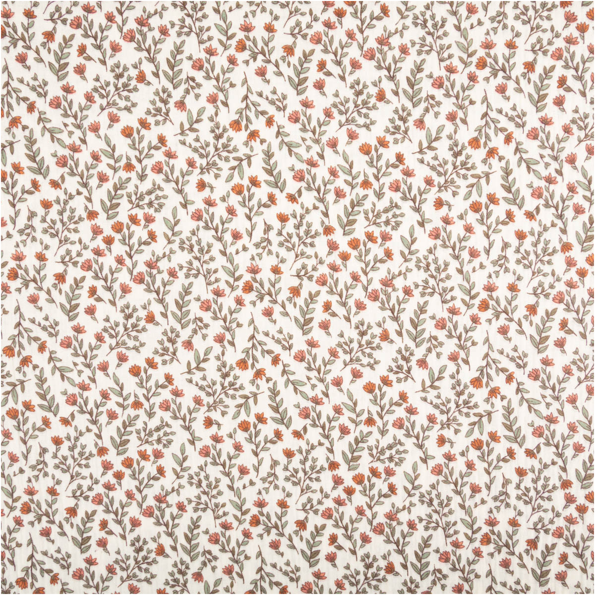 Musselin Stoff aus 100% Baumwolle mit Mini-Blumen- und Blätter-Dessin