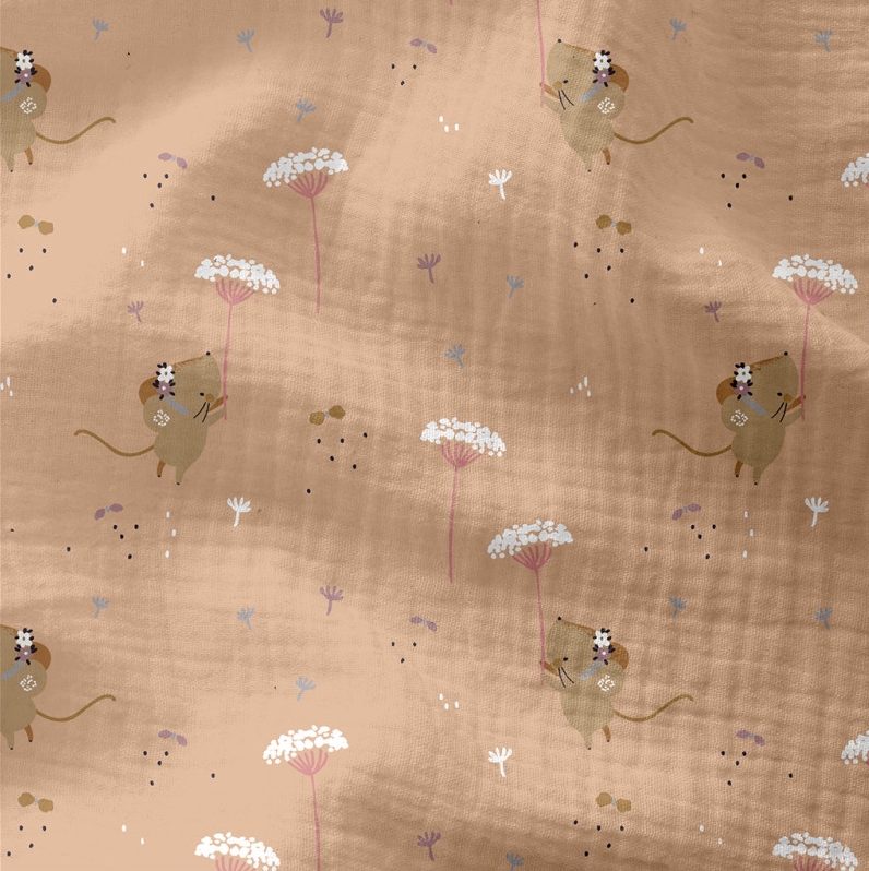 Musselin Stoff aus Baumwolle mit Mausmotiv in Nude und Rosa