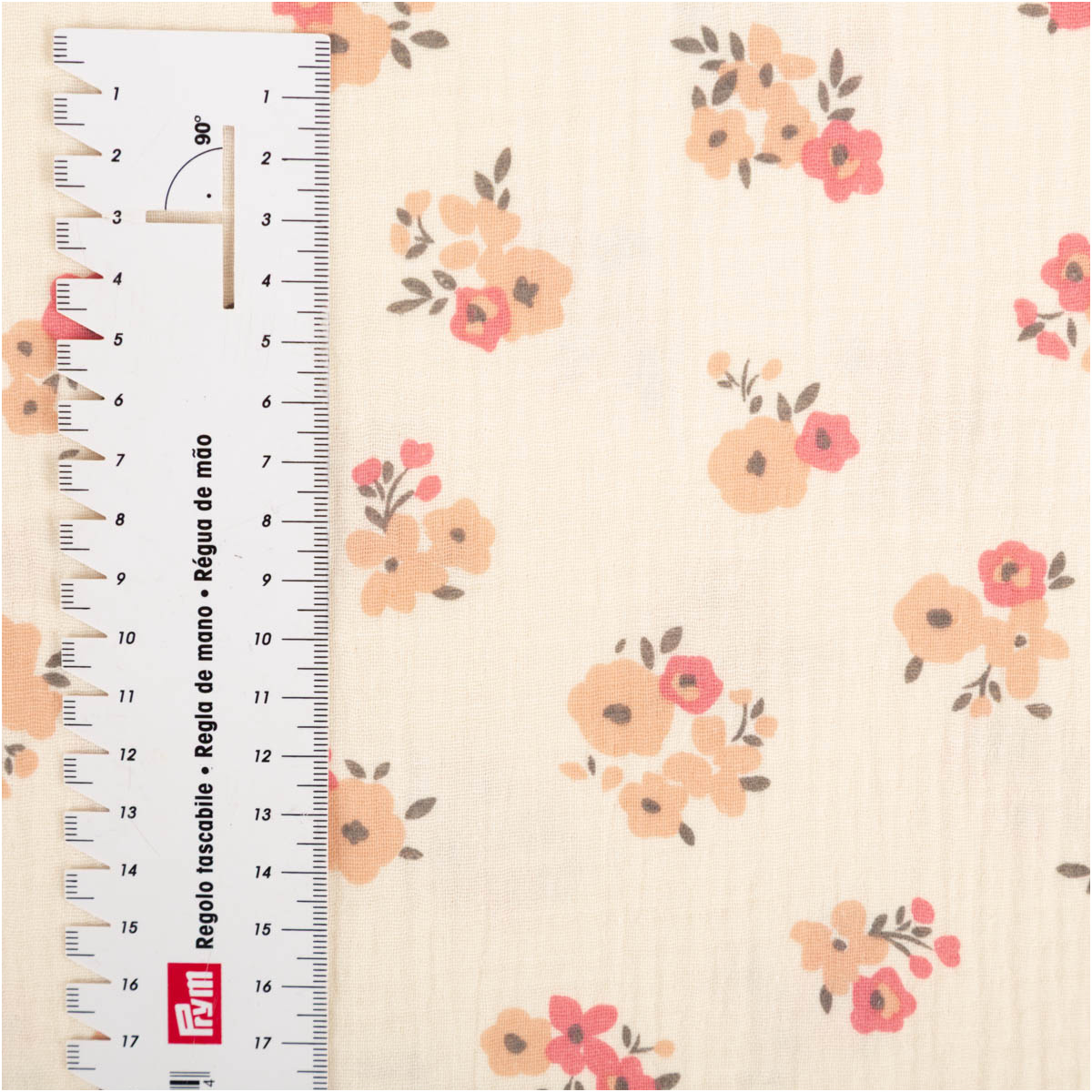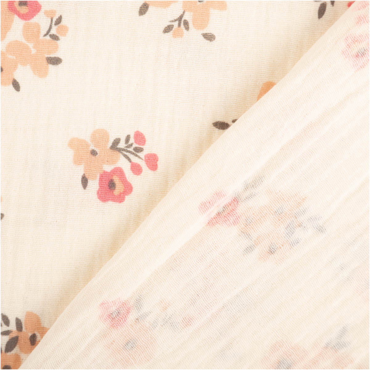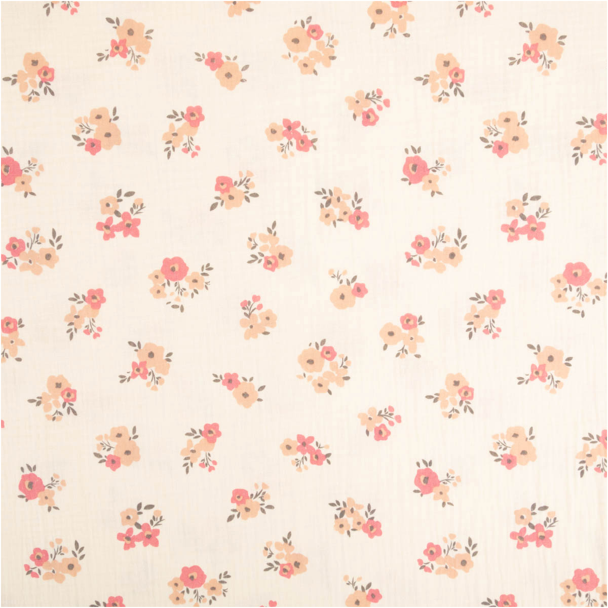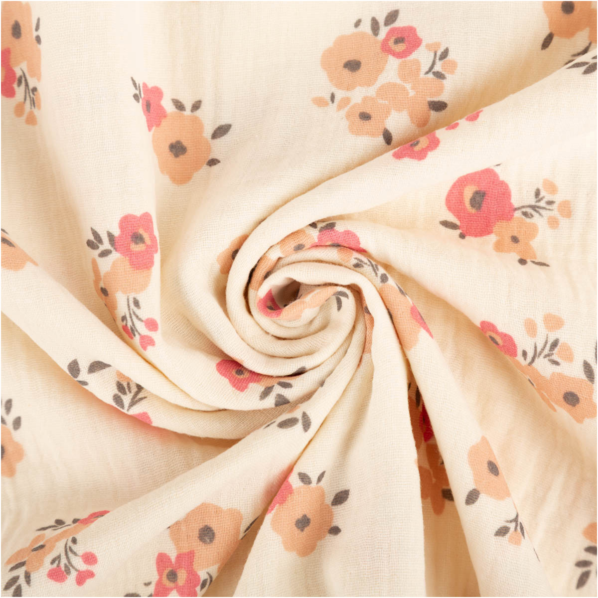 Musselin Stoff aus Baumwolle mit Streublümchen-Dessin in Ecru und Rosa
