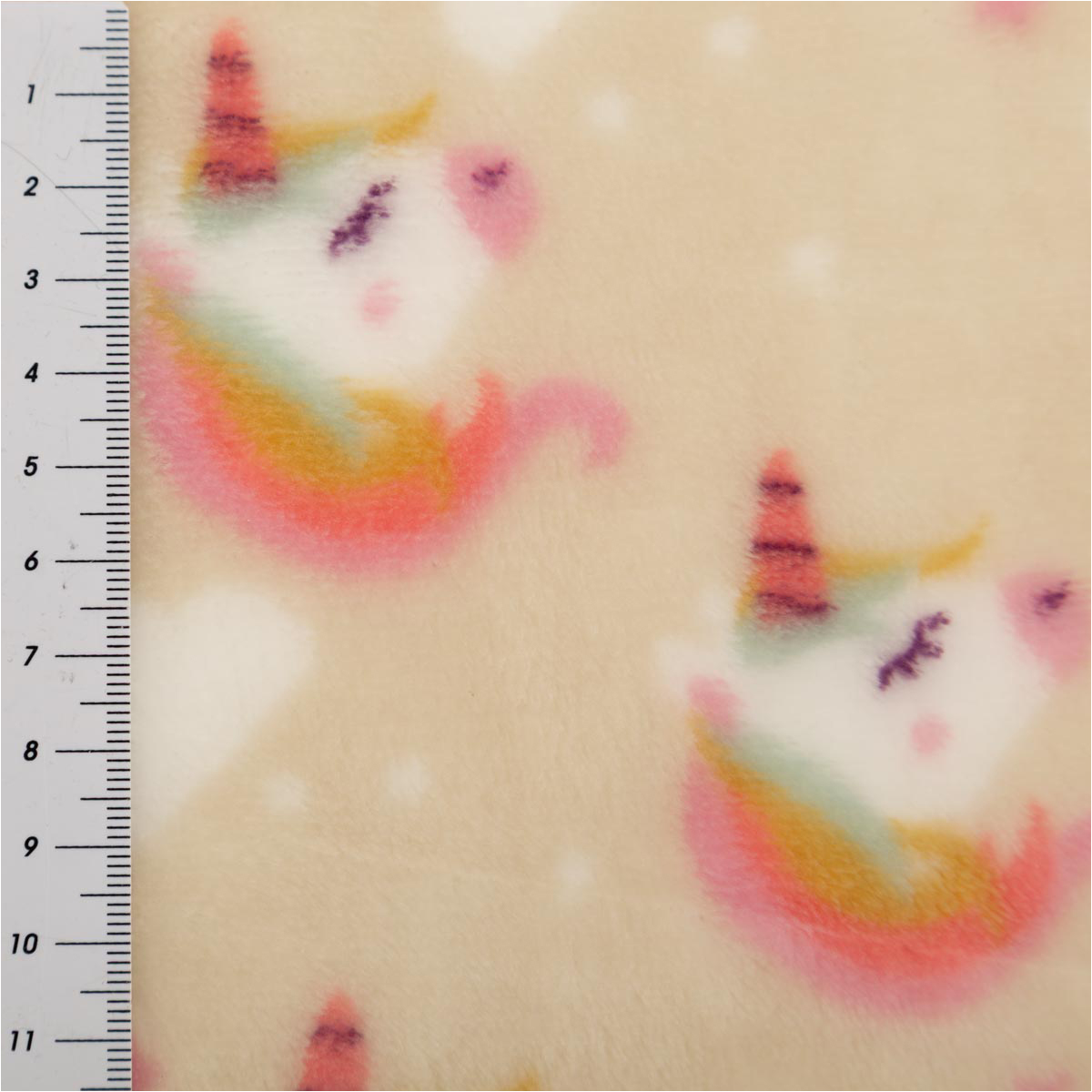 Fleecestoff Einhörner Regenbogen beige rosa – weicher Kuschelstoff 1,45 m Breite