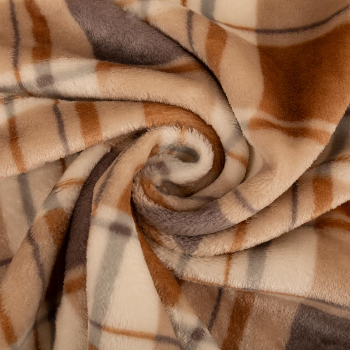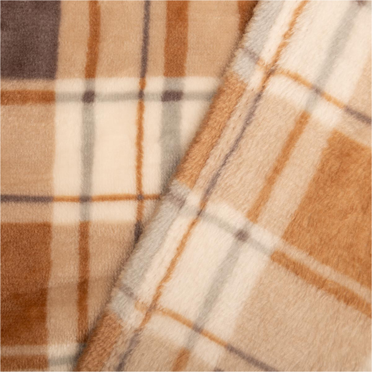 Kuschelweicher Fleecestoff mit klassischem Karomuster in Beige und Grau