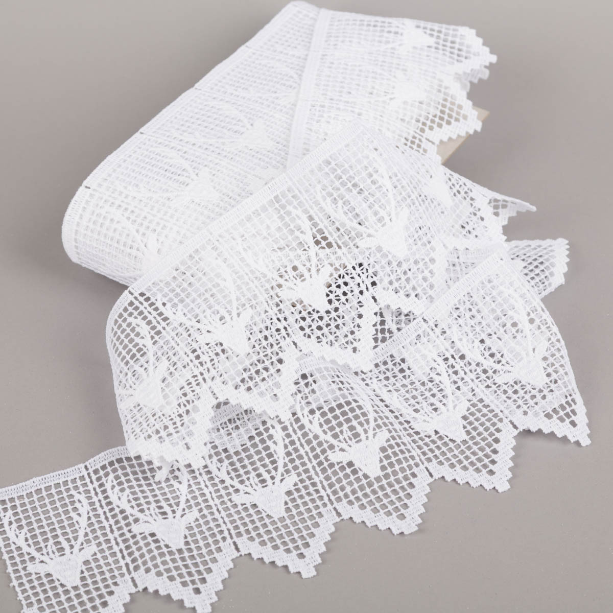 Häkelborte Spitzenborte Hirsch in Weiß – Landhauscharme für Fenster, Regale und Möbel