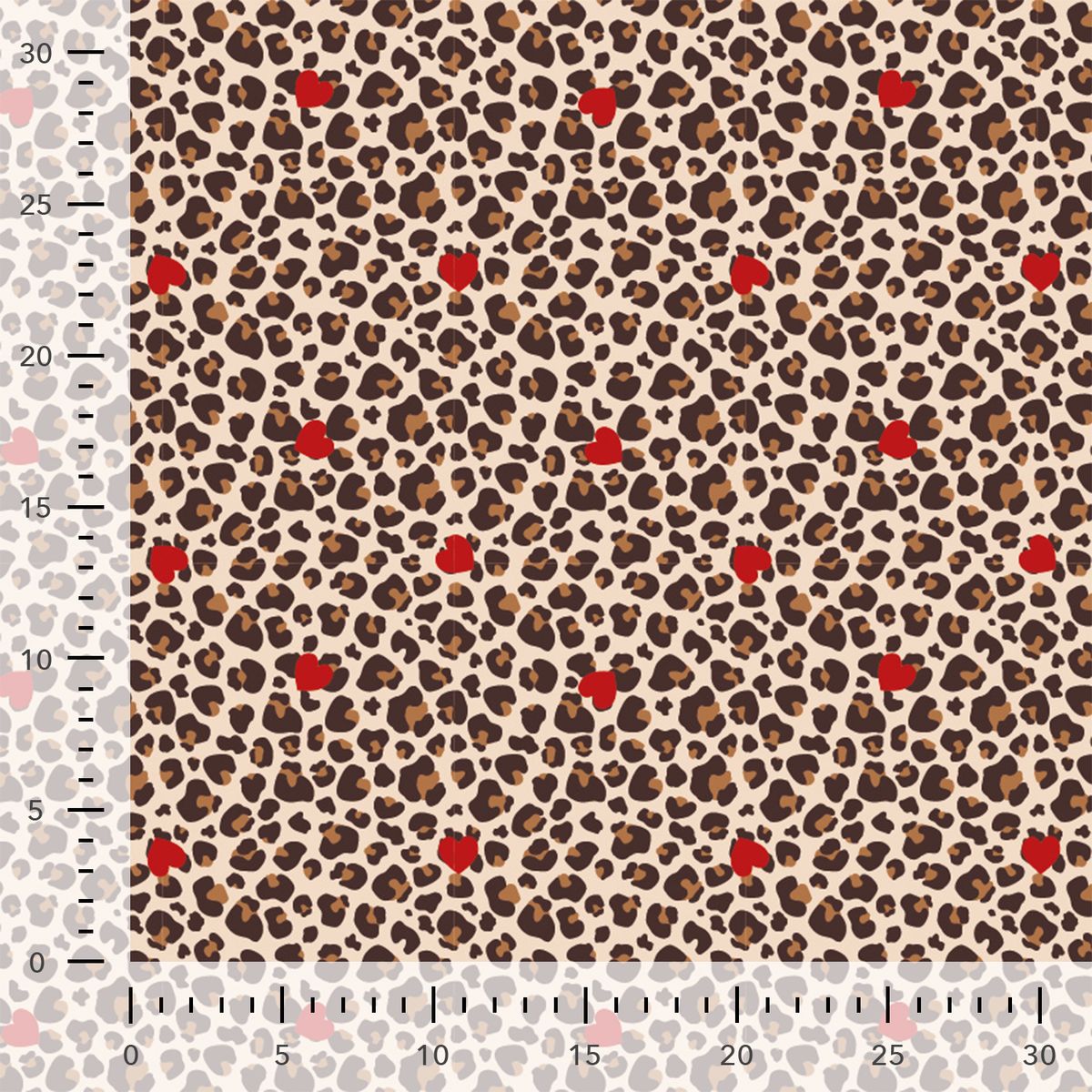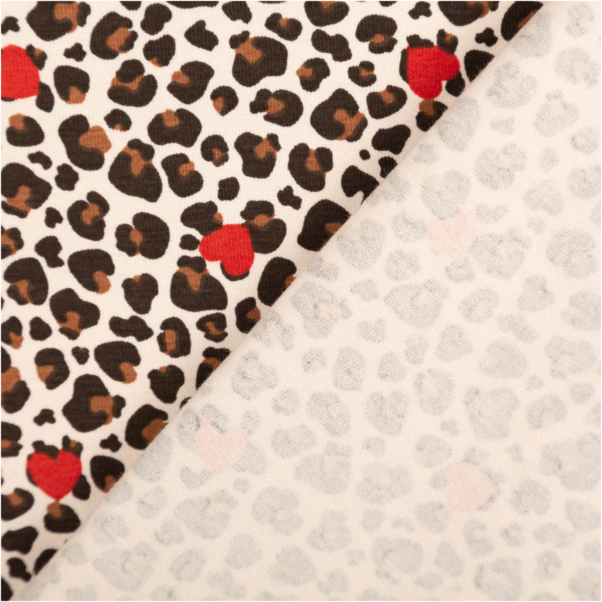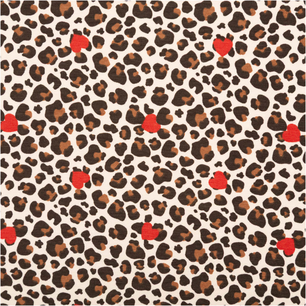 Design: Trendiger Leo-Print in warmem Braun mit roten Herzen – wild und trotzdem super süß.