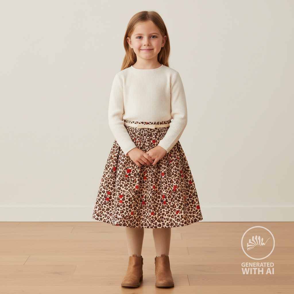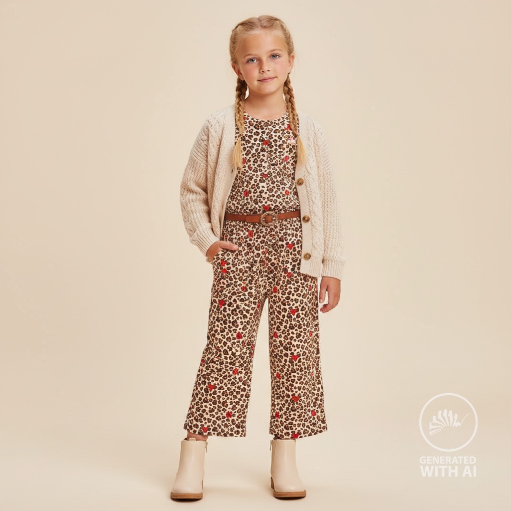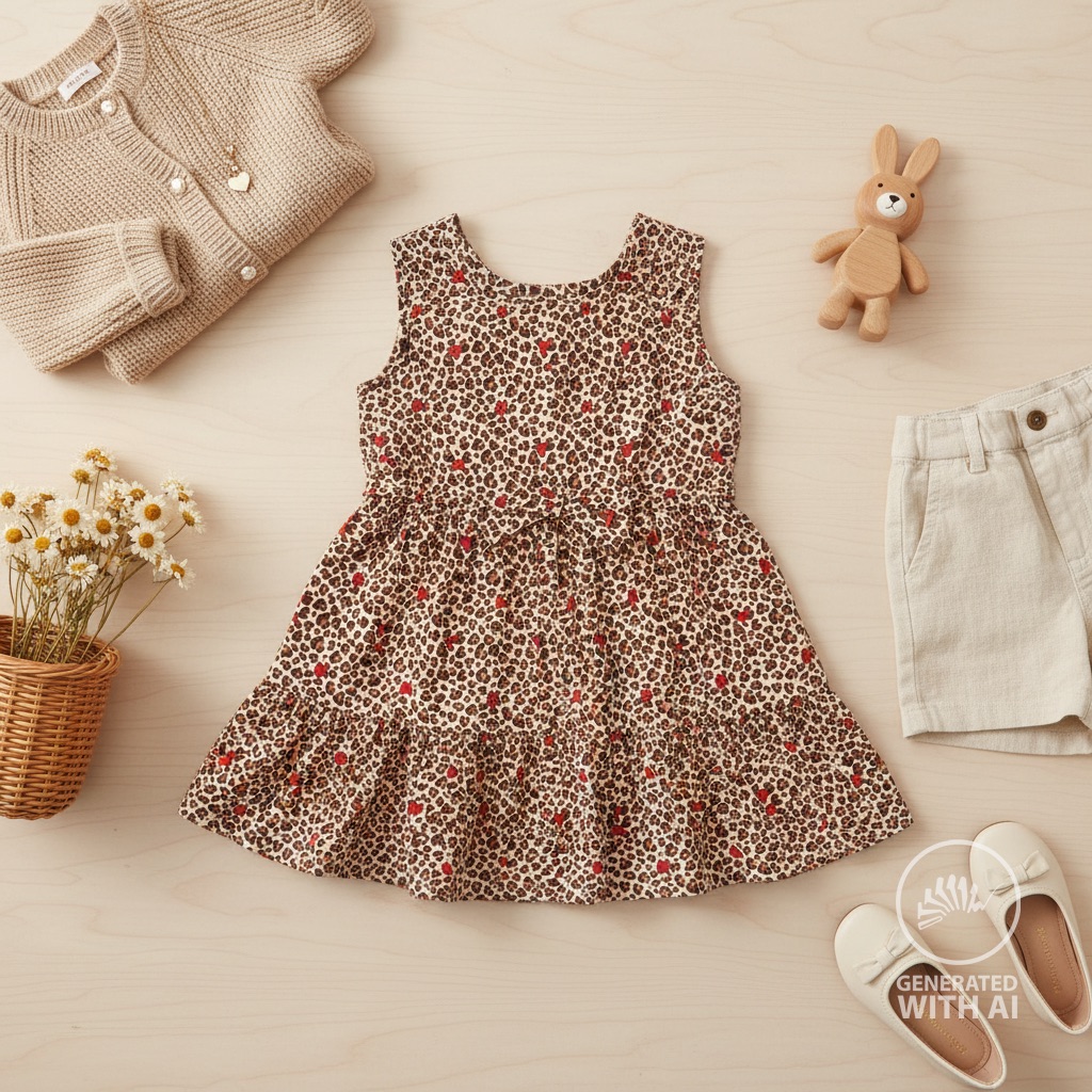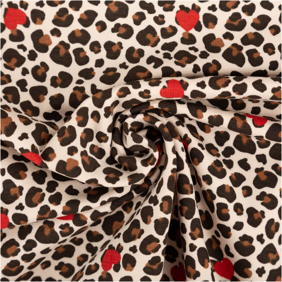 Design: Trendiger Leo-Print in warmem Braun mit roten Herzen – wild und trotzdem super süß.
