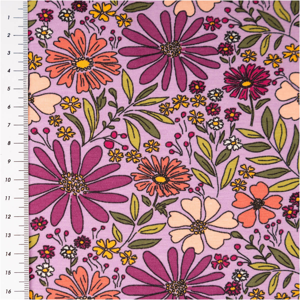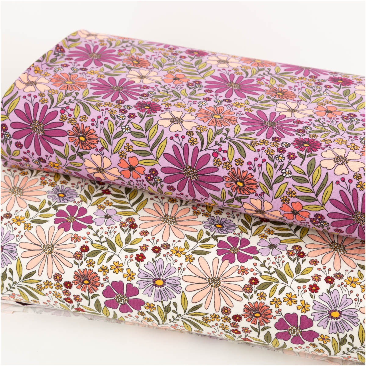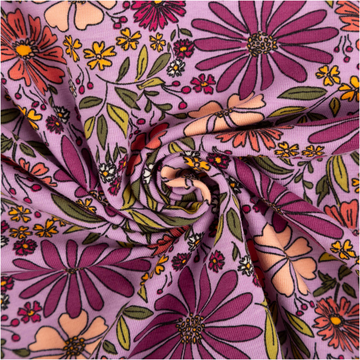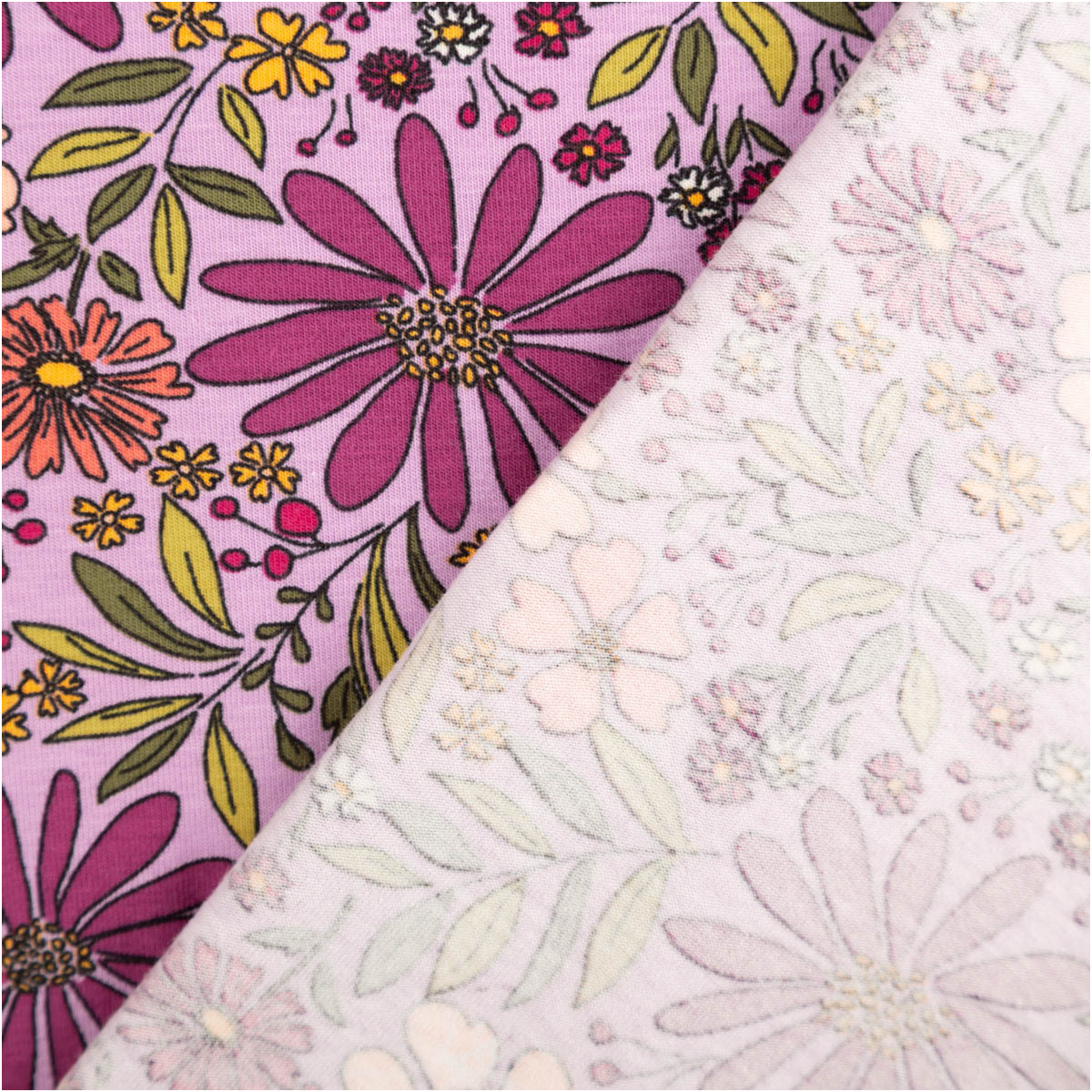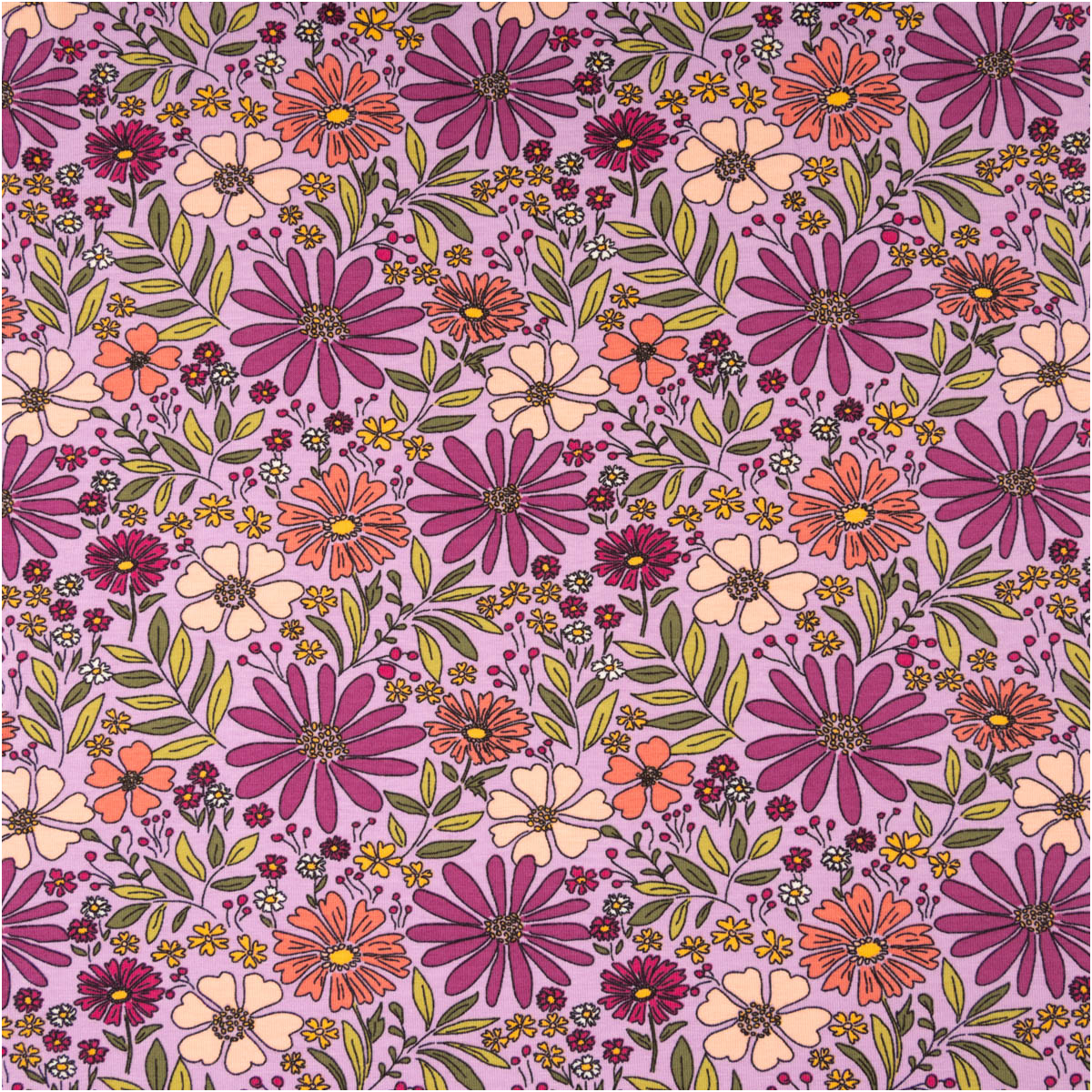 Dieser Baumwolljersey mit floralem Muster in Violett begeistert mit einer harmonischen, leicht verspielten und zugleich modernen Ausstrahlung. Die Kombination aus verschiedenen Blüten und fein abgestimmten Farbtönen macht den Stoff zu einer wunderschönen Wahl für Kleidung, die bequem ist und gleichzeitig ins Auge fällt. Als Meterware hast du maximale Freiheit für deine individuellen Nähprojekte.