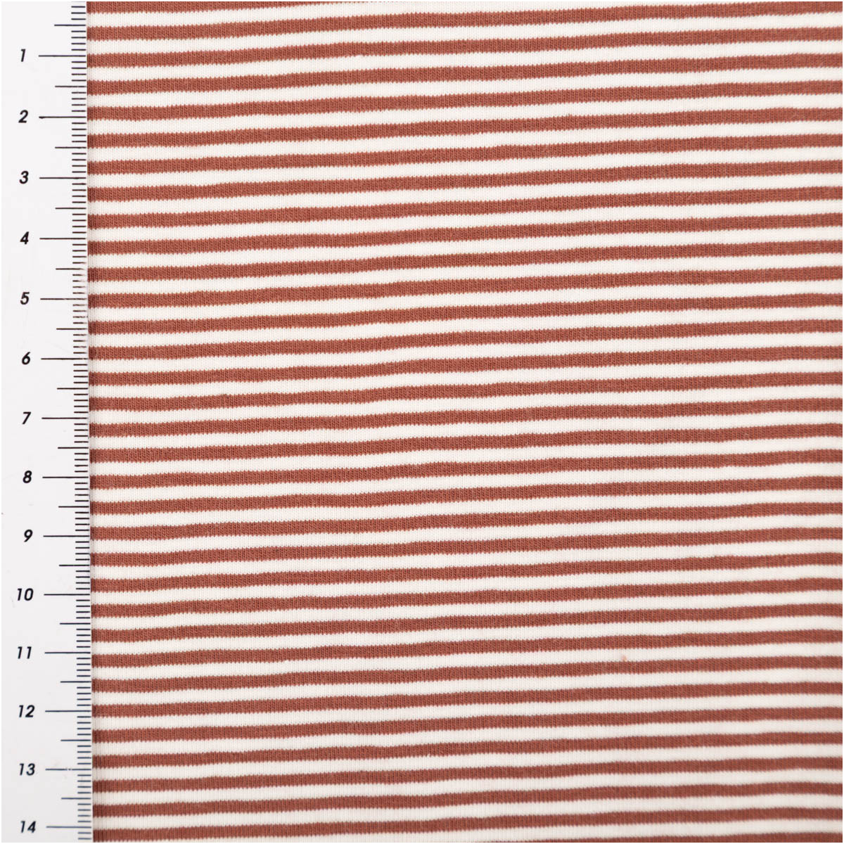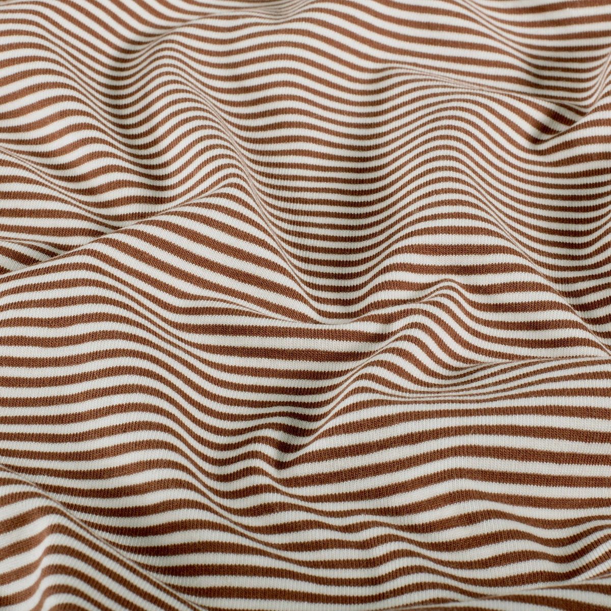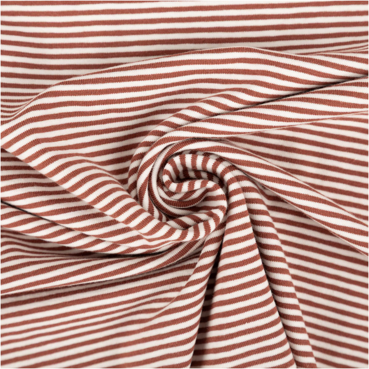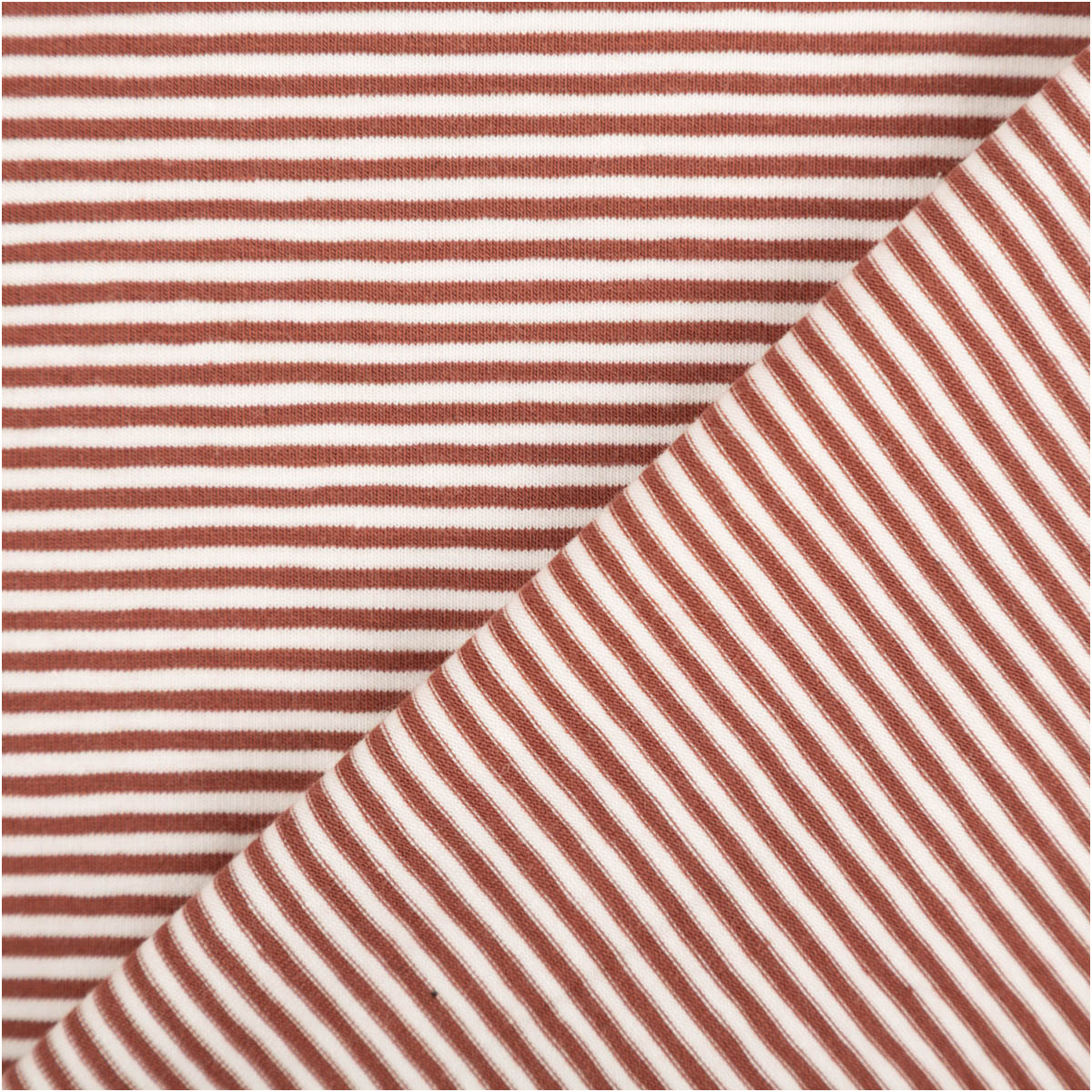 Baumwolljersey yarn dyed: feine Streifen in weiß und rost