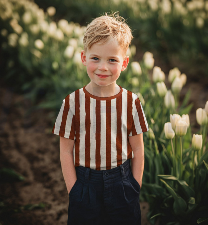 Zeitloses Streifen-Design: naturfarbiger Grund mit braunen Streifen, ideal für Baby, Kind und Erwachsene