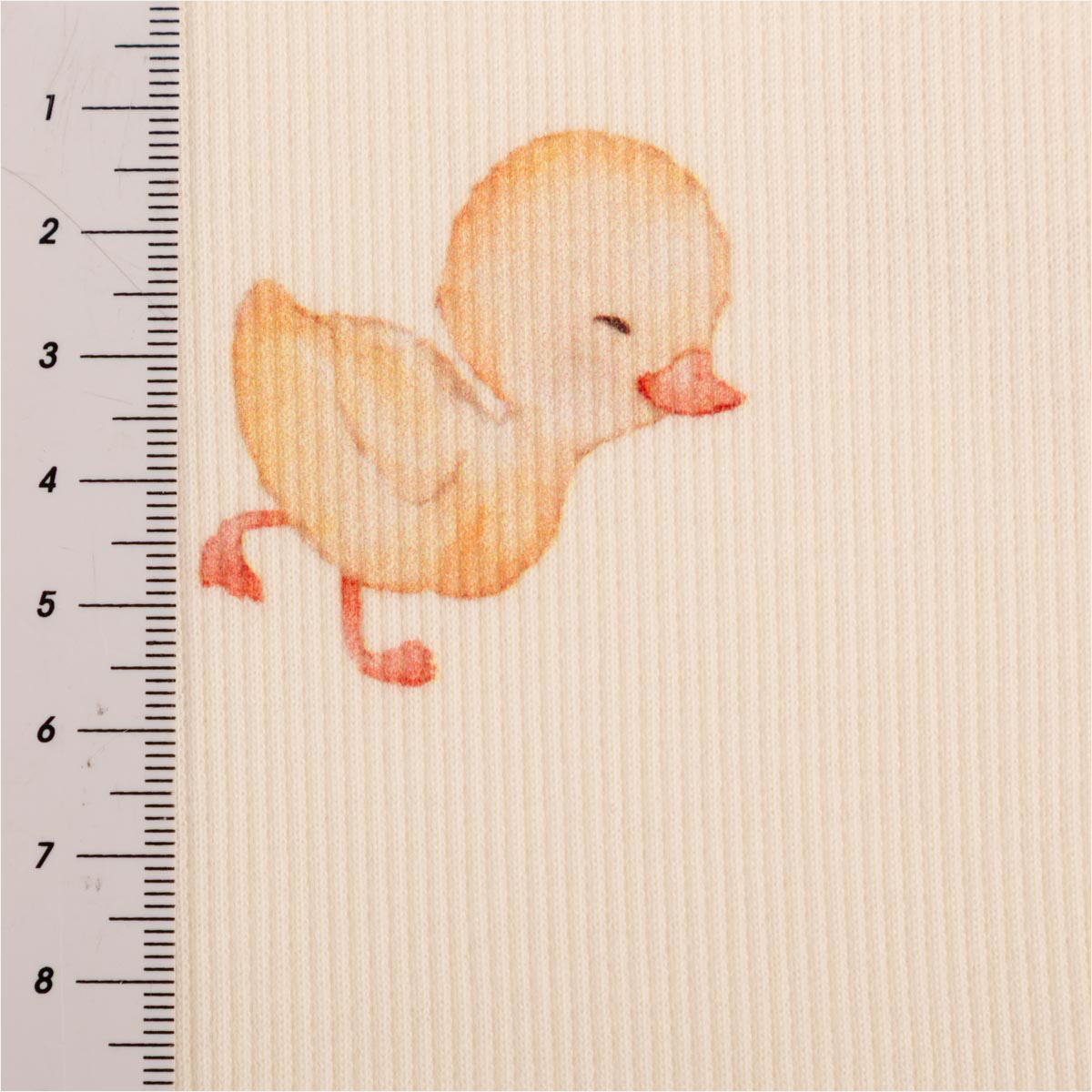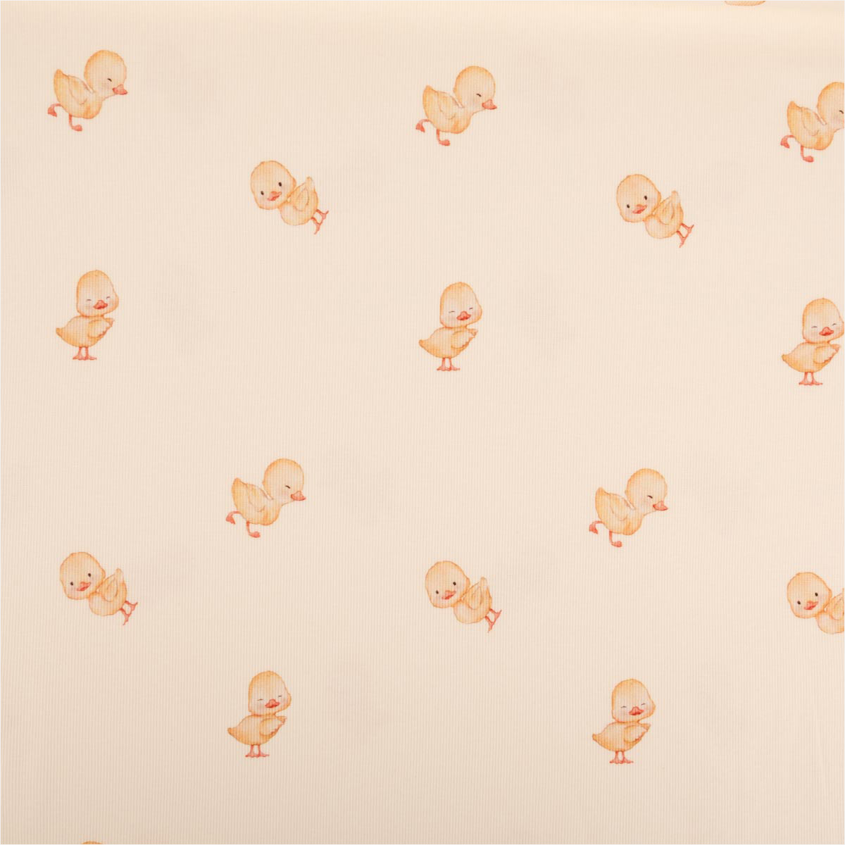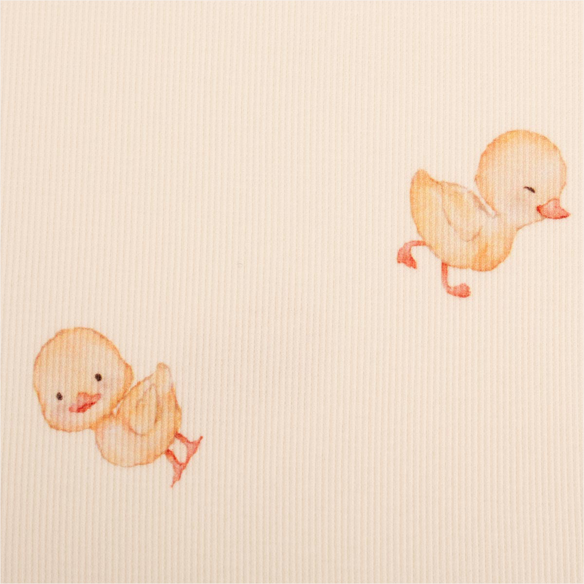 Weicher Rippjersey mit gelben Entchen auf wollweißem Grund