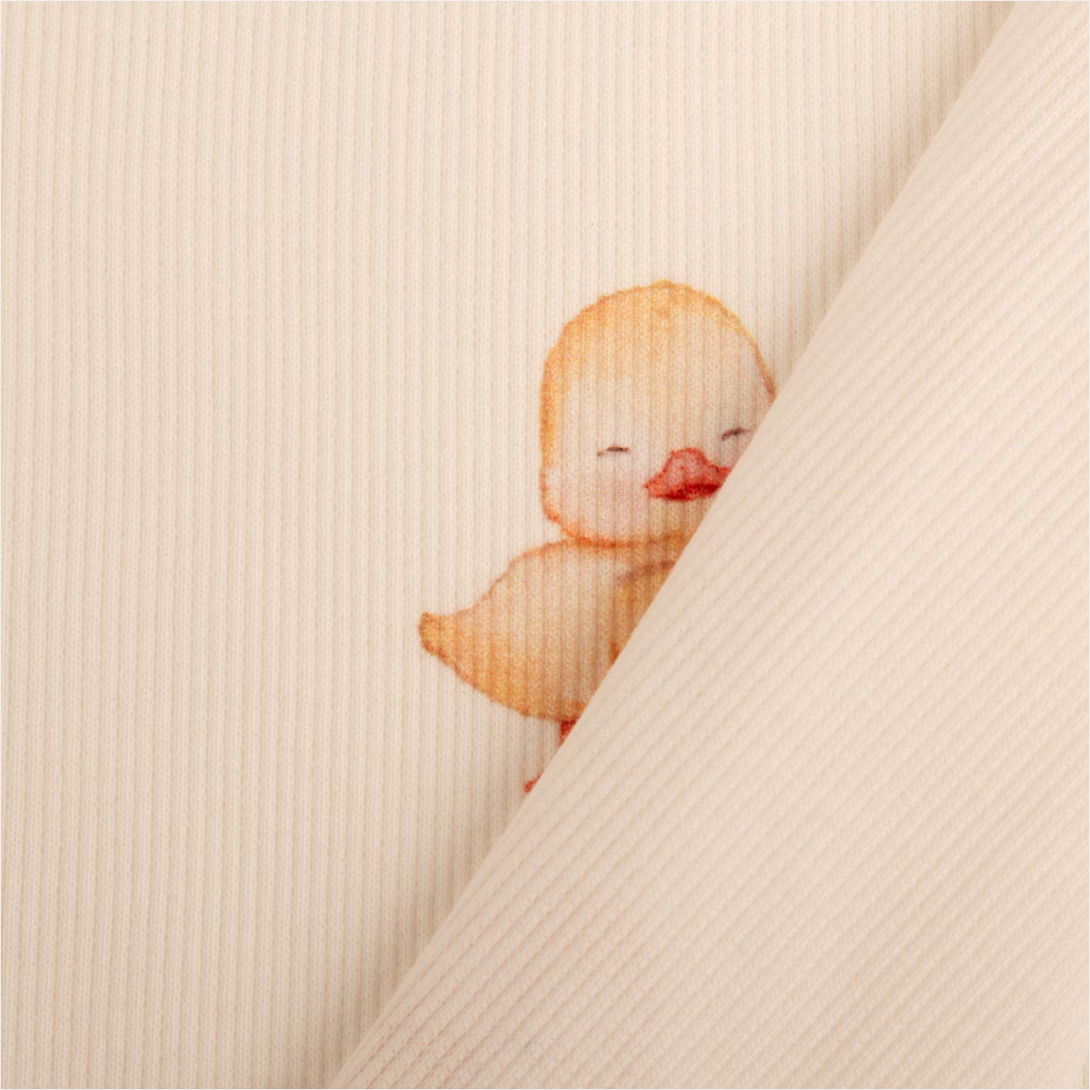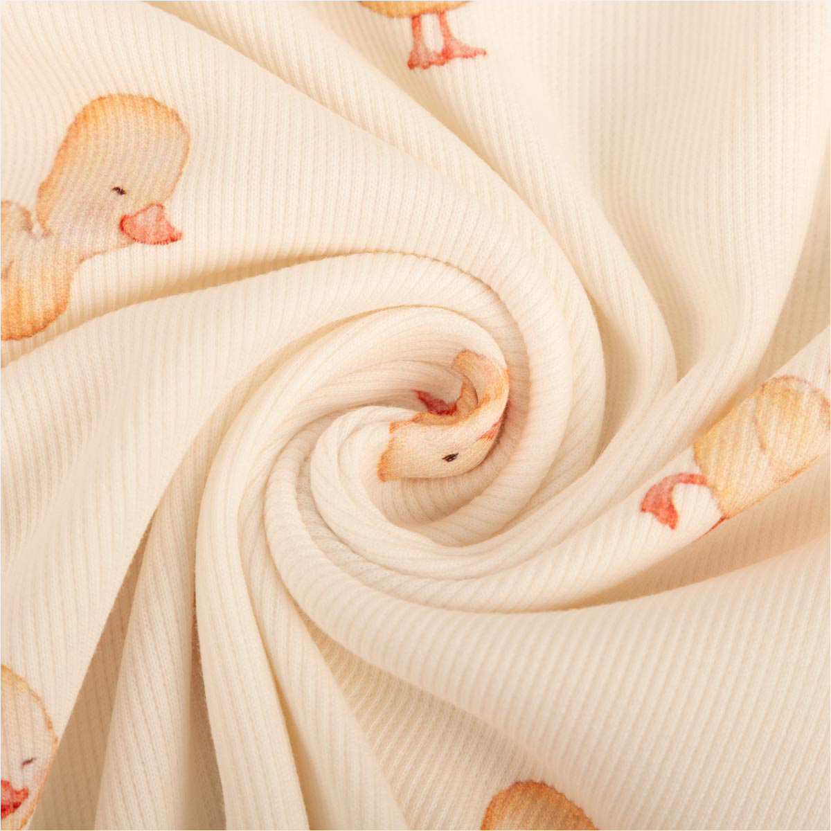 Rippjersey Entchen wollweiß gelb – weicher Baumwolljersey für Baby- & Kinderkleidung
