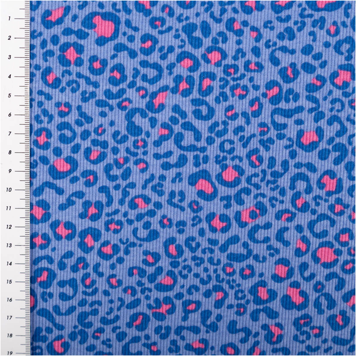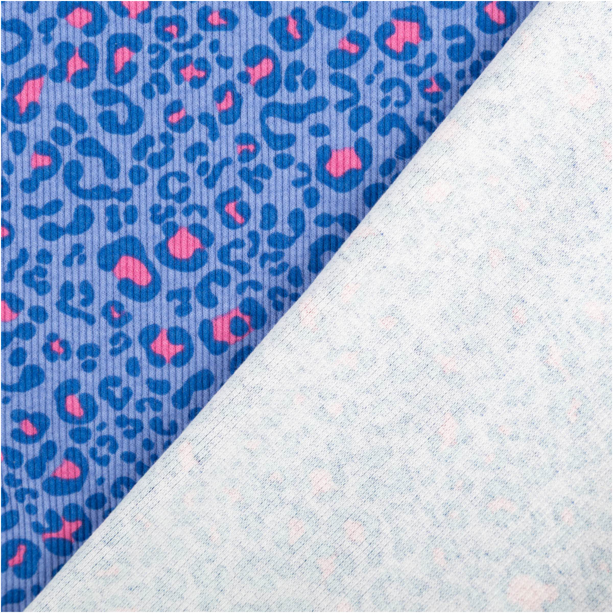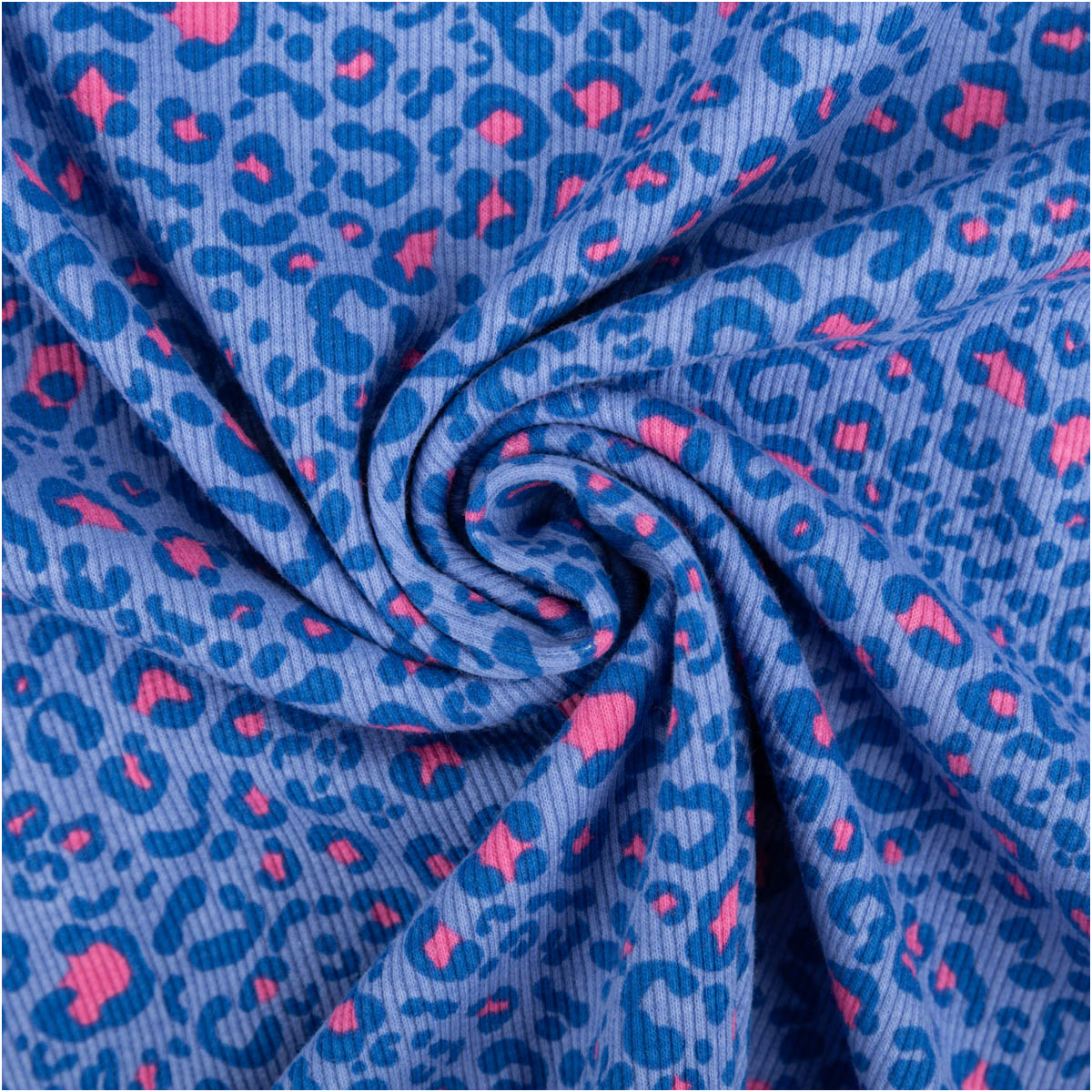 Rippjersey Rib Jersey Stoff Baumwolle Leo blau pink 1,2m Breite