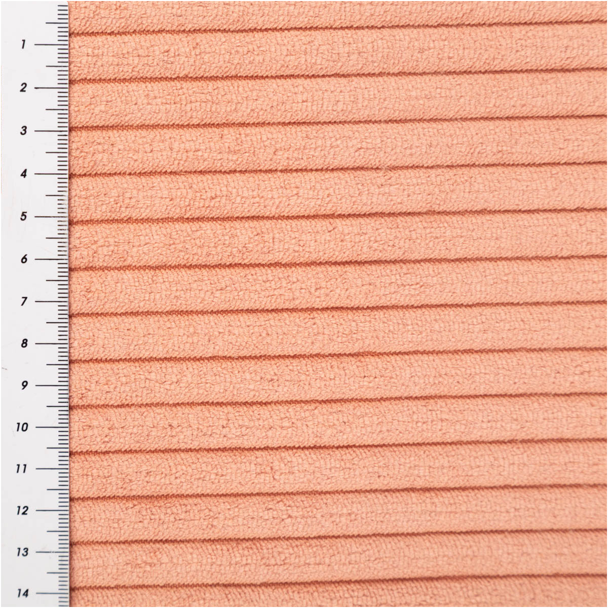 • Weicher Breitcord in lachsrosa mit 1 cm Rippen und hohem Flor für eine angenehm flauschige Haptik