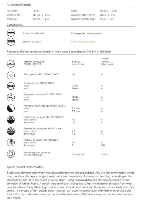 • Extrem robust dank 100.000 Scheuertouren und damit ideal für Polsterungen aller Art