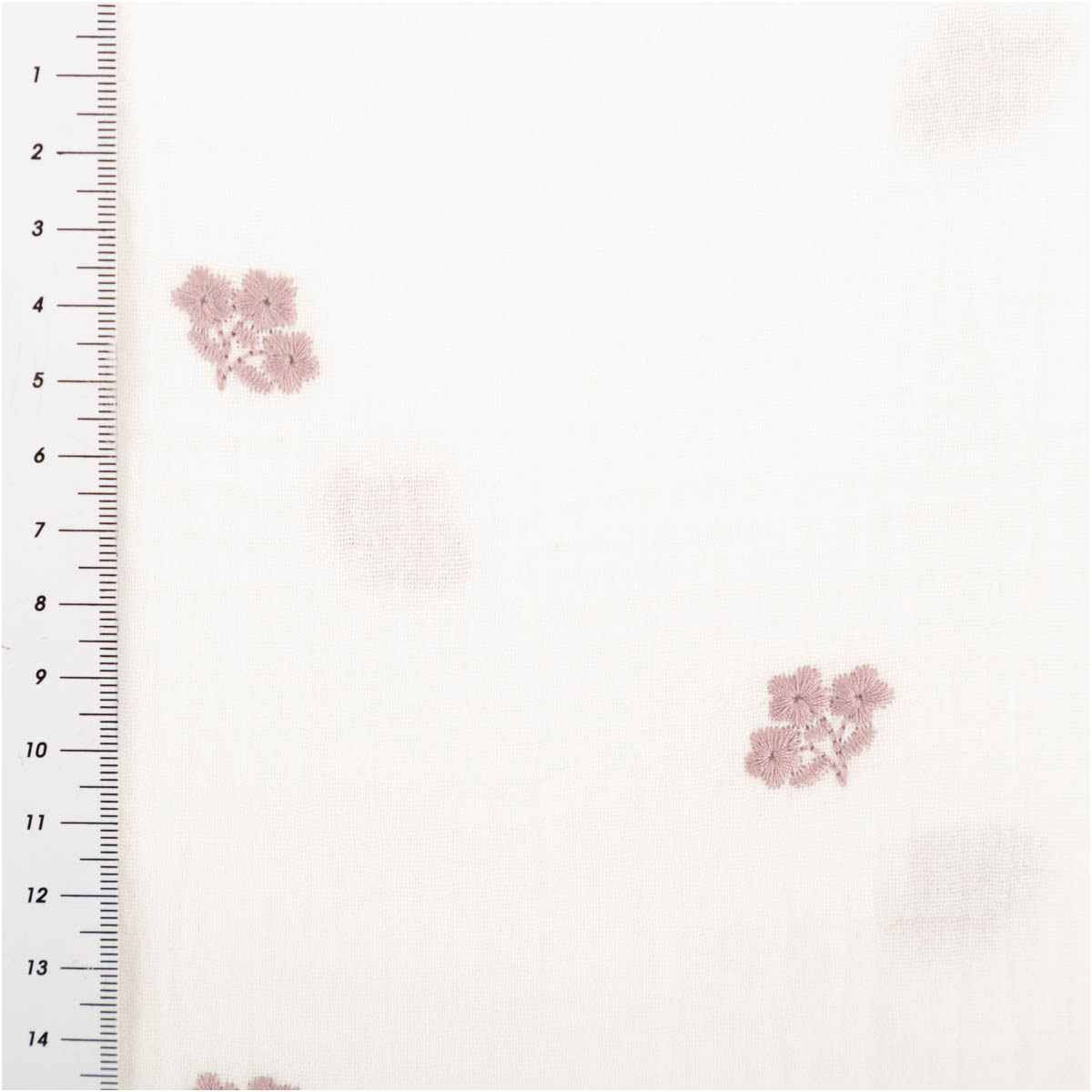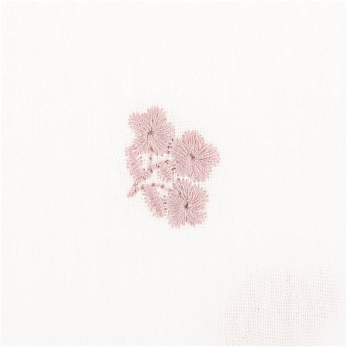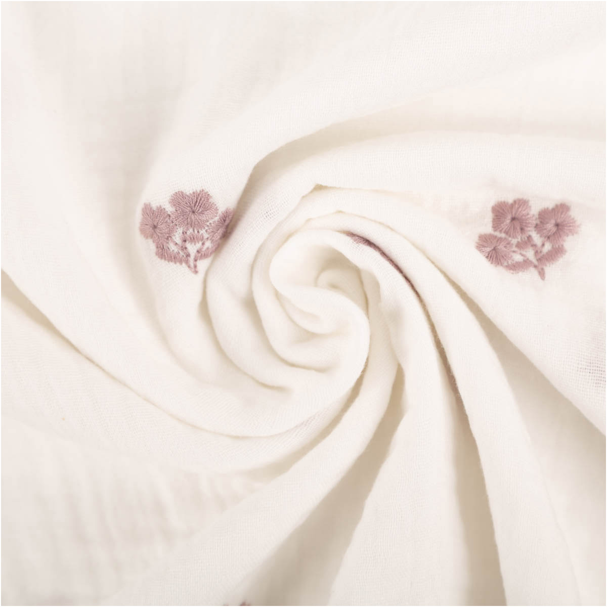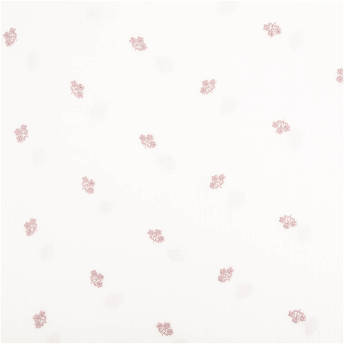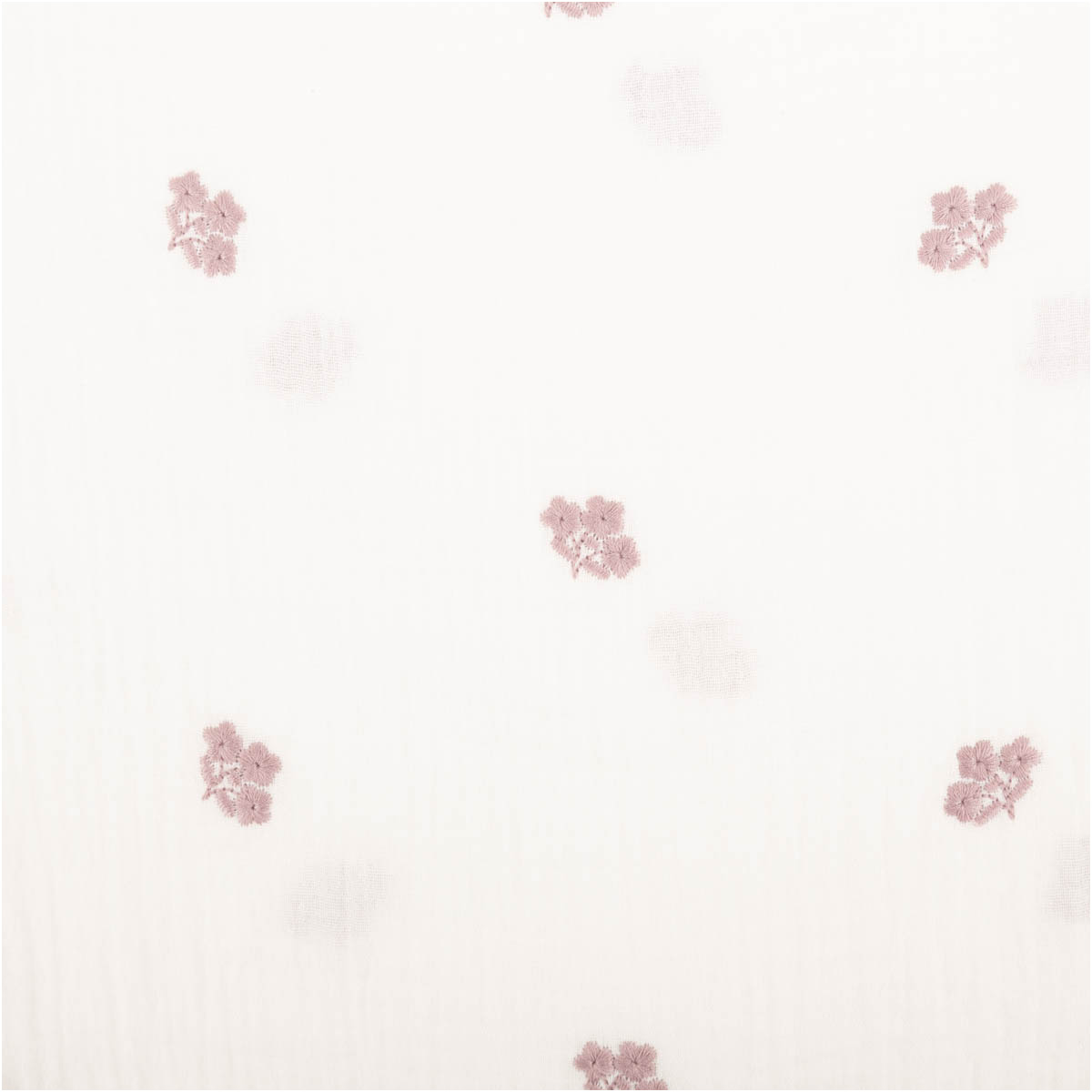 Weicher Musselin Stoff Double Gauze in Weiß mit feiner rosa Blümchen Stickerei für liebevolle und hochwertige Nähideen