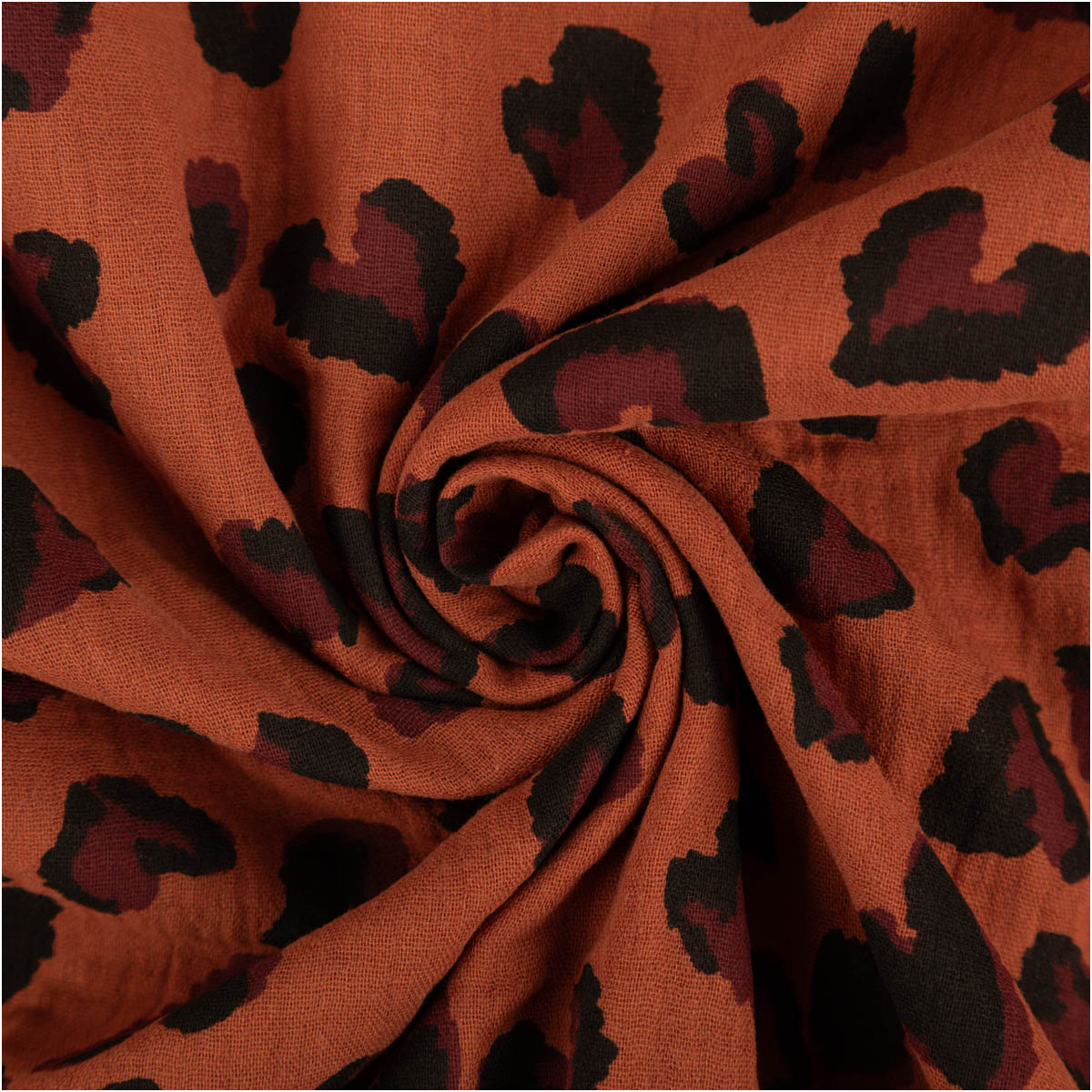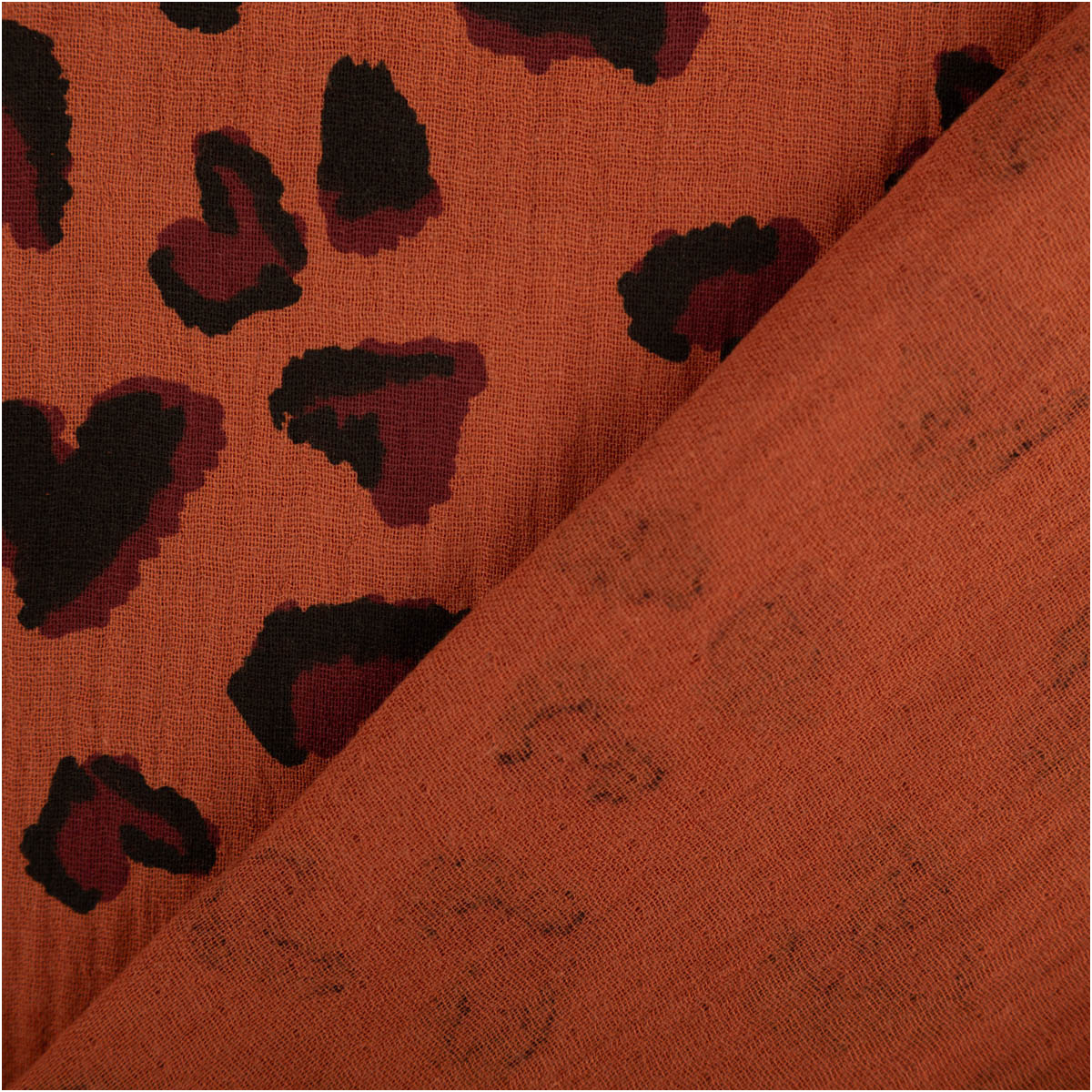 Angenehm weicher Musselin Stoff aus 100% Baumwolle mit exklusivem Leo-Dessin aus Frankreich.