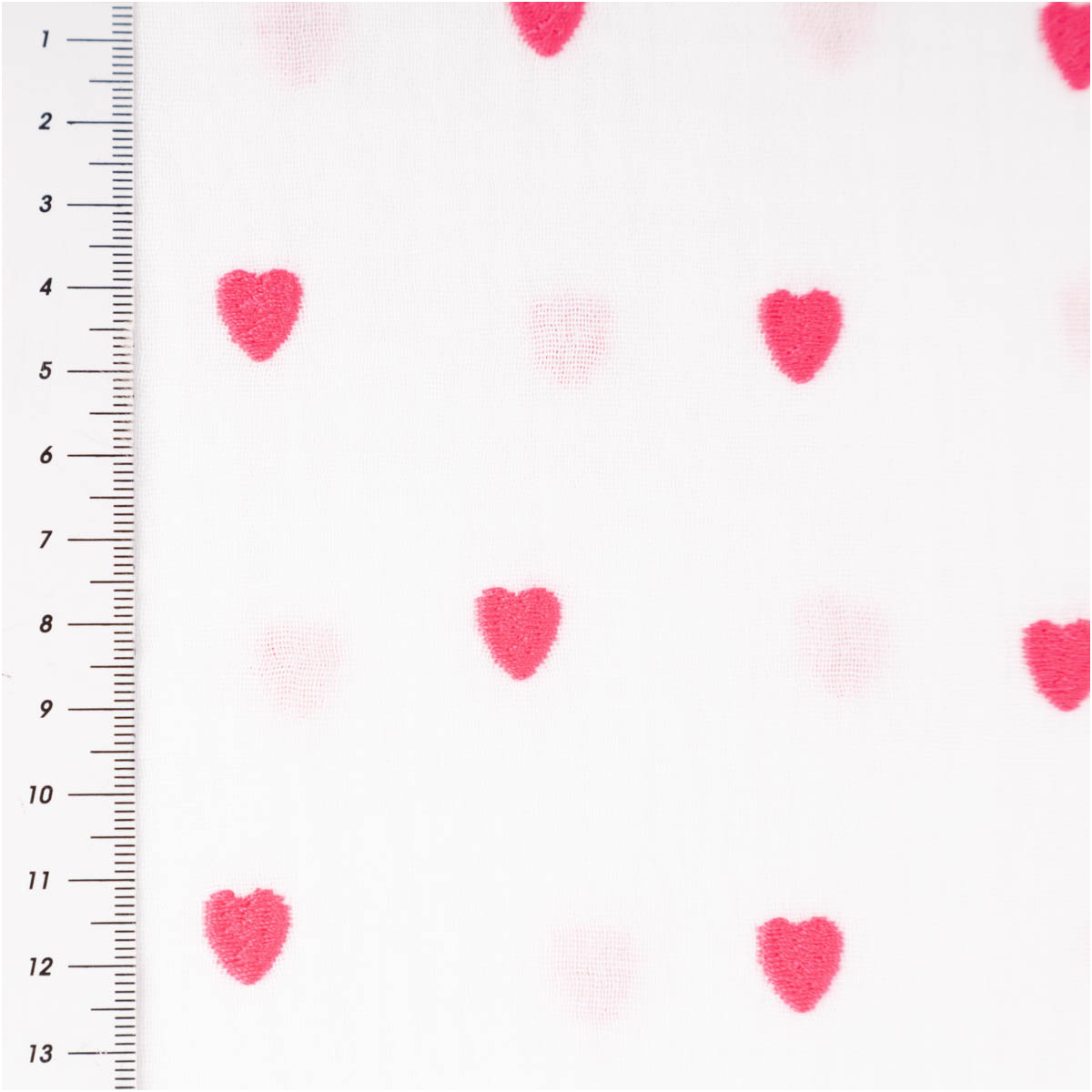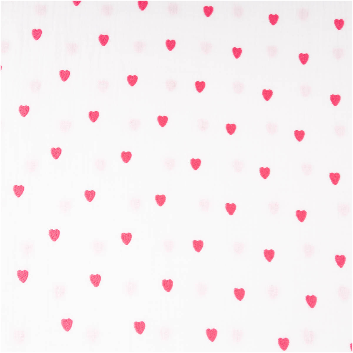 Musselin Stoff mit Herzchen Stickerei als Meterware in Weiß und Neonpink