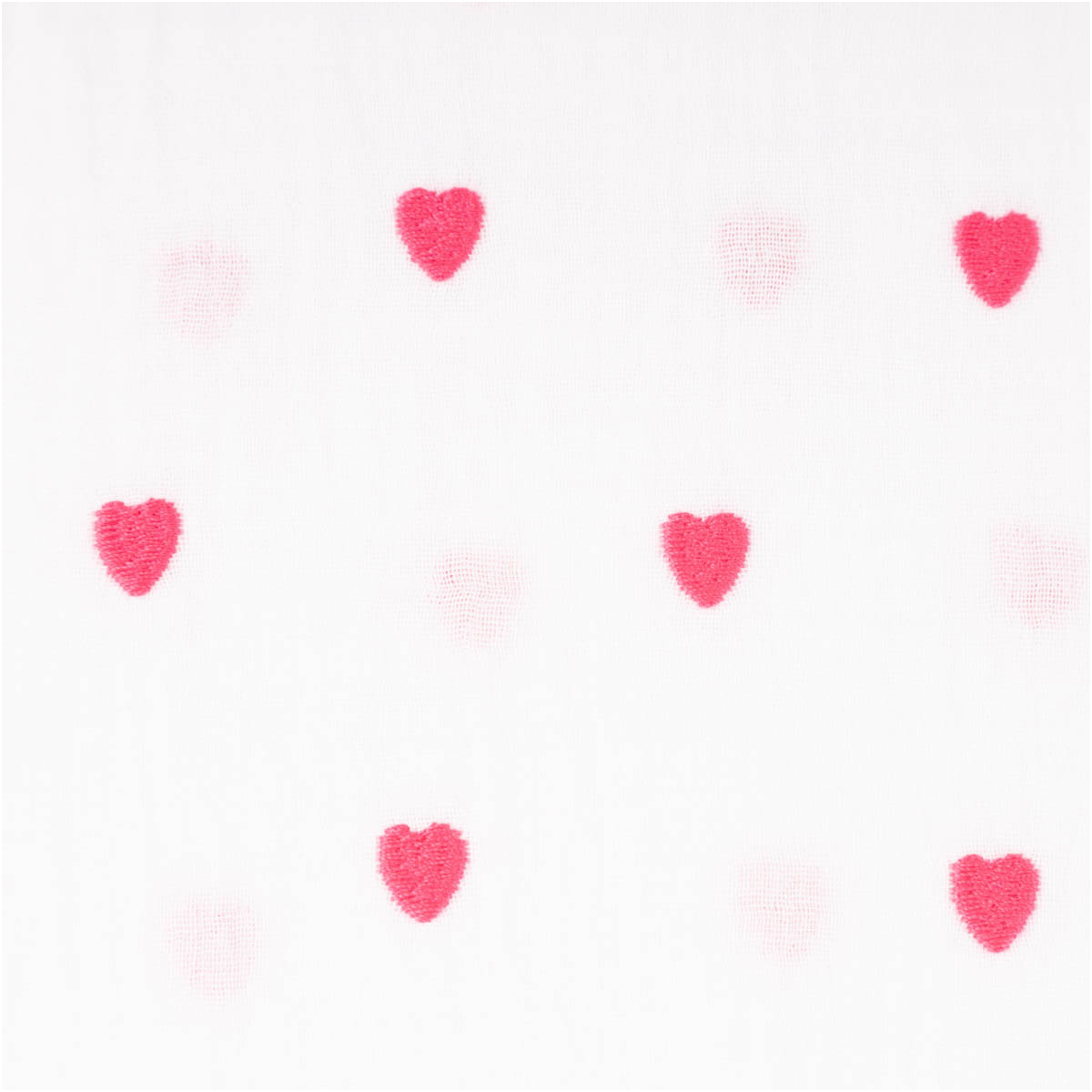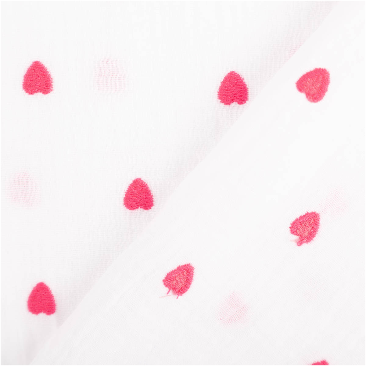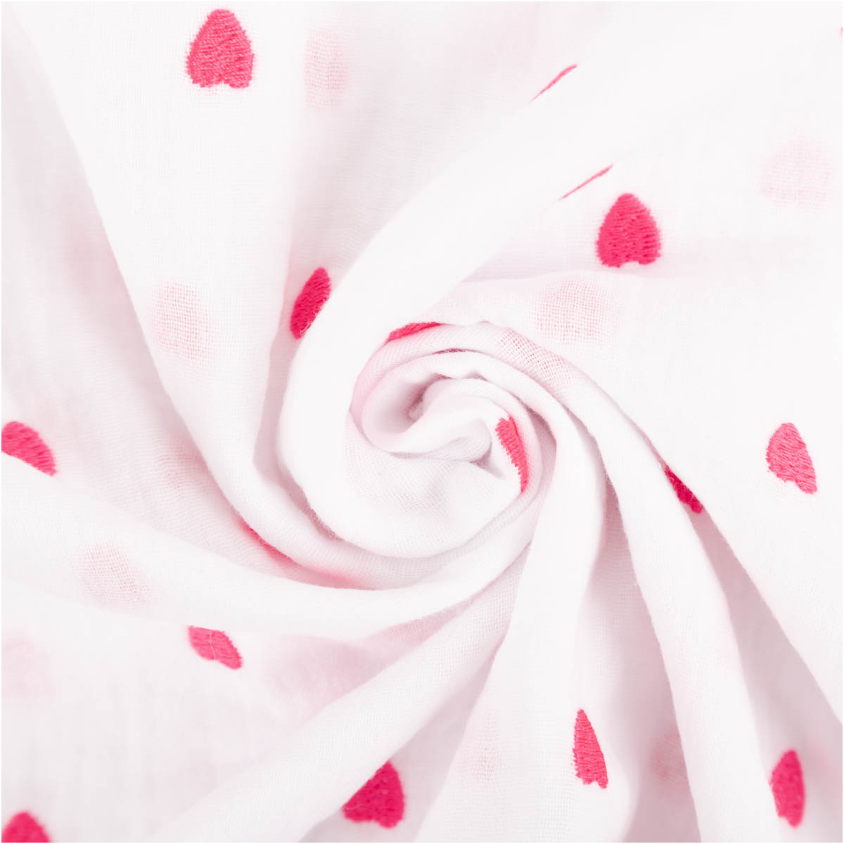 Musselin Stoff Double Gauze Herzchen Stickerei weiß neonpink 1,35m Breite
