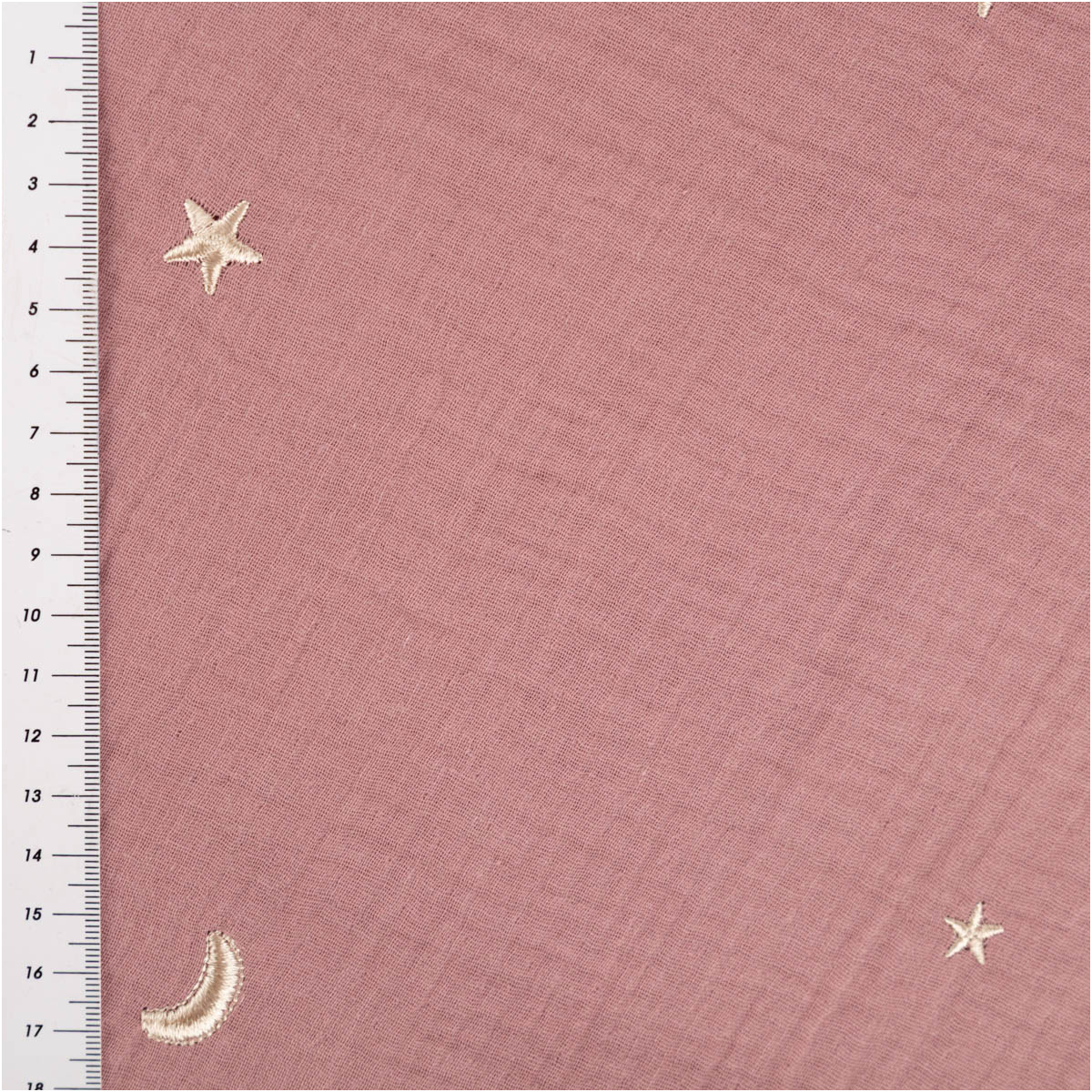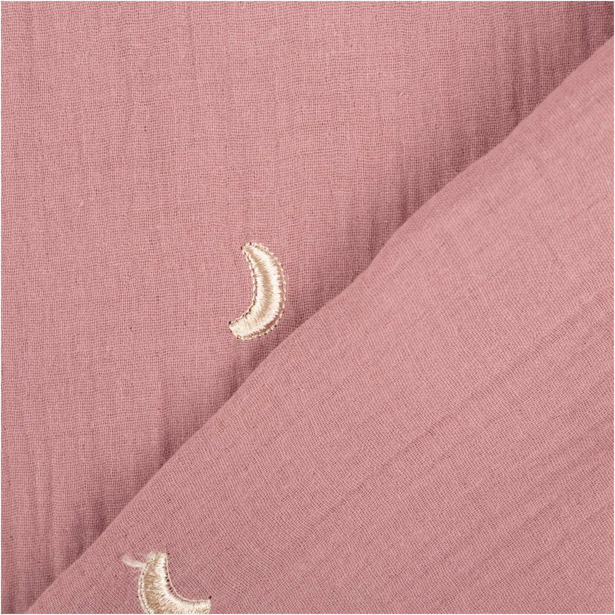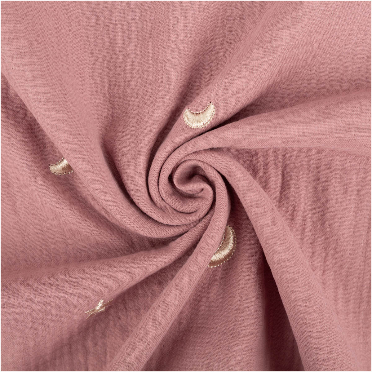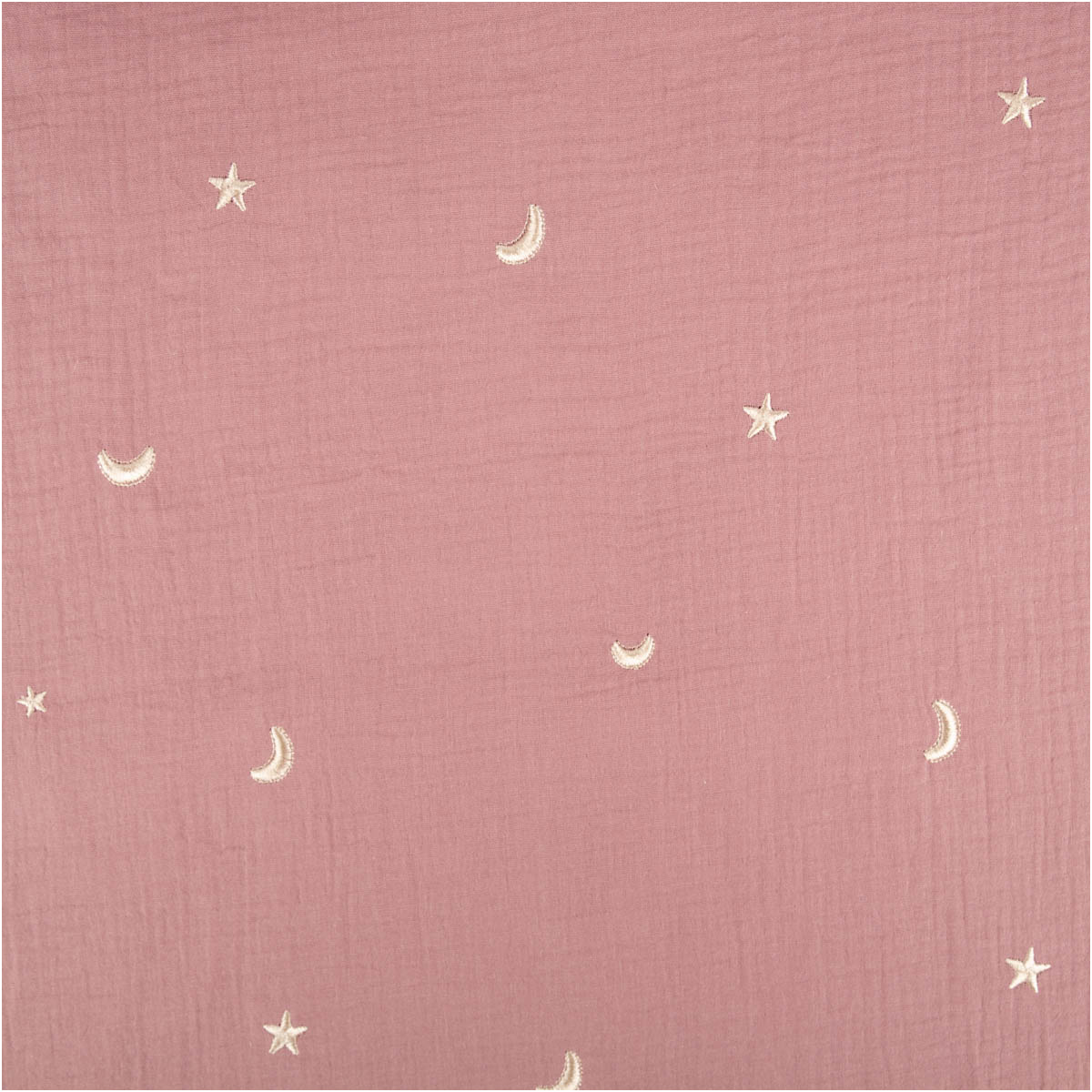 Musselin Double Gauze in Alt-Lila mit Sterne- und Mond-Stickerei – weich, luftig, besonders edel