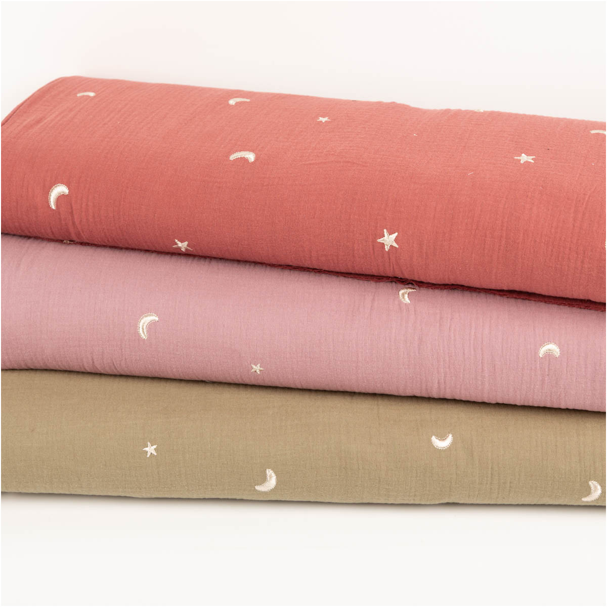 Du suchst einen Musselin, der sanft wirkt und trotzdem ein echter Hingucker ist? Dieser Double Gauze in Alt-Lila begeistert mit einer liebevollen Stickerei aus Sternen und Monden. Die Motive sind nicht gedruckt, sondern hochwertig aufgestickt – dadurch entsteht eine feine Struktur, die den Stoff besonders wertig wirken lässt.