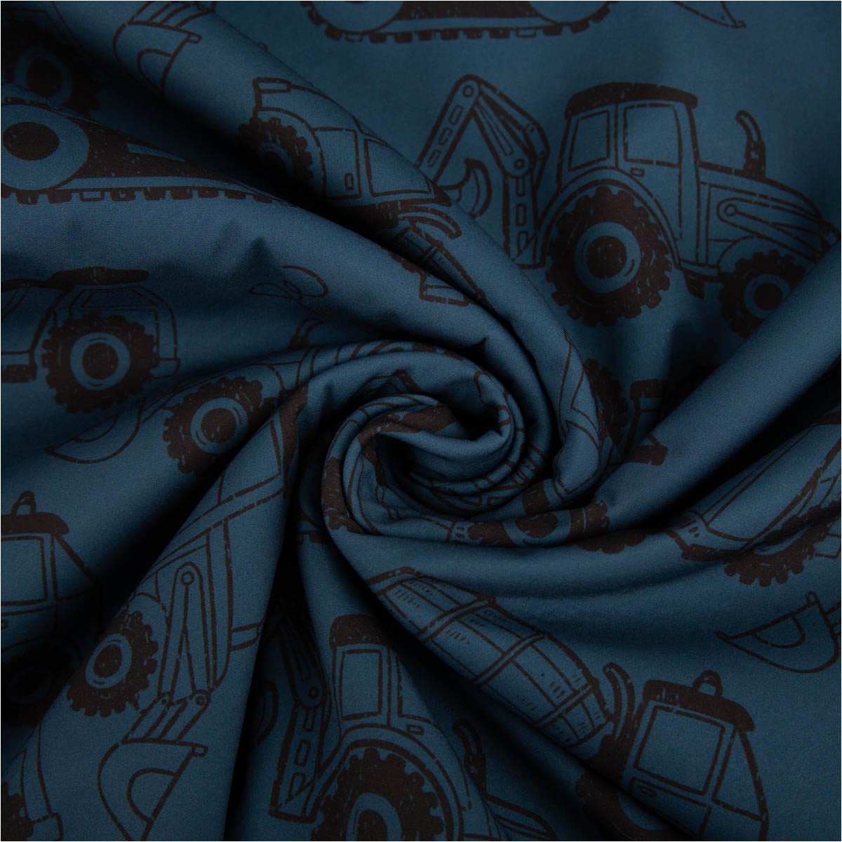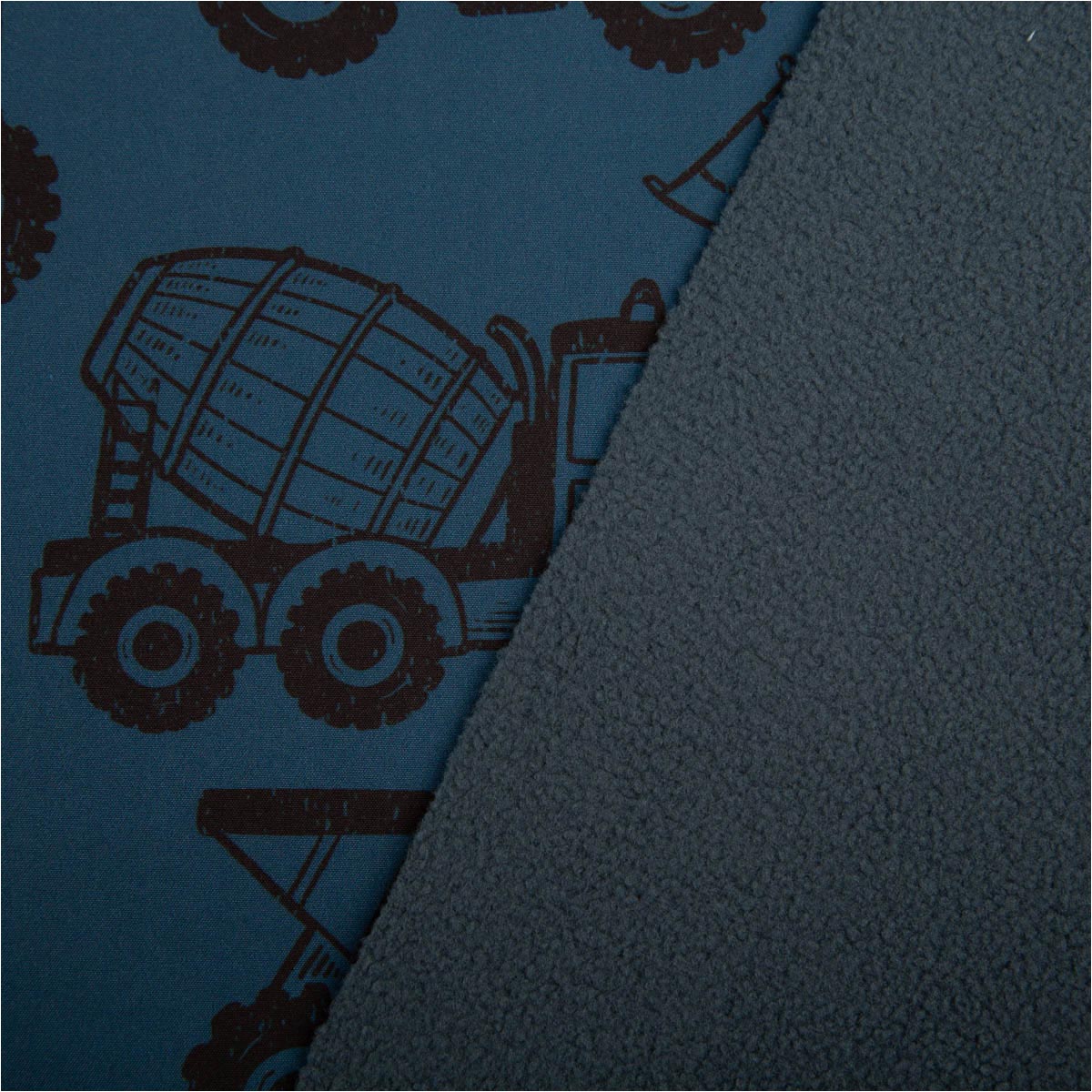 Softshell mit Fleece-Innenseite Digitaldruck Baufahrzeuge blau schwarz 1,45m Breite