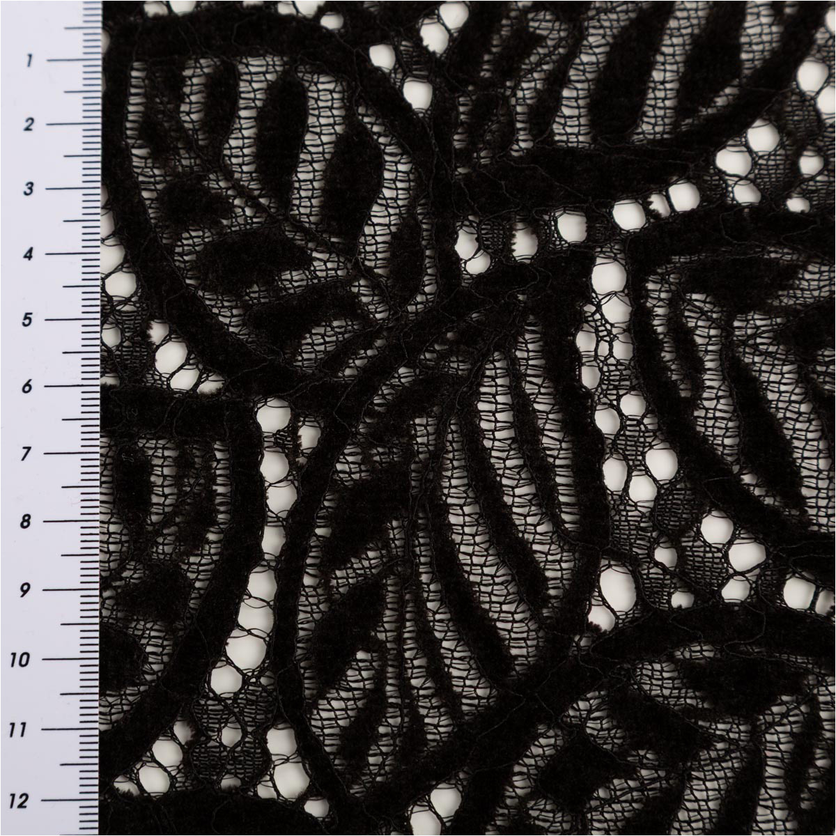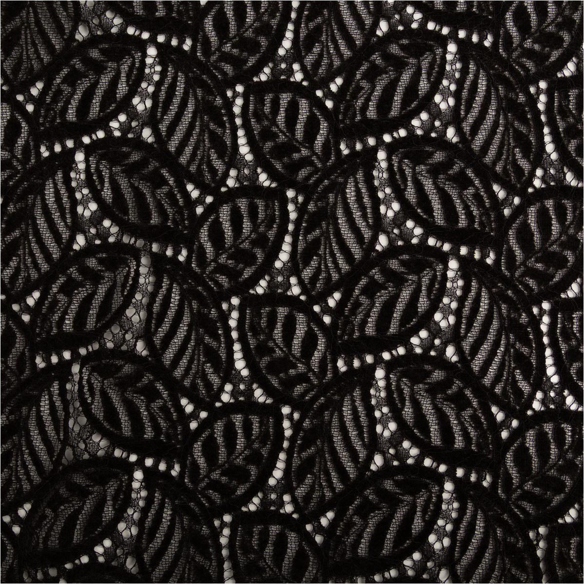 Spitze mit Chenille Blätterdessin Meterware schwarz 150cm breit