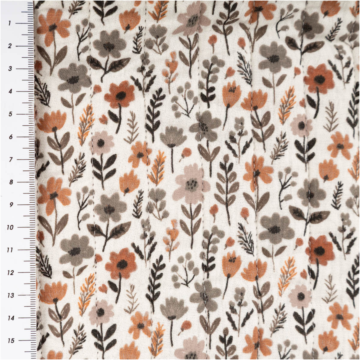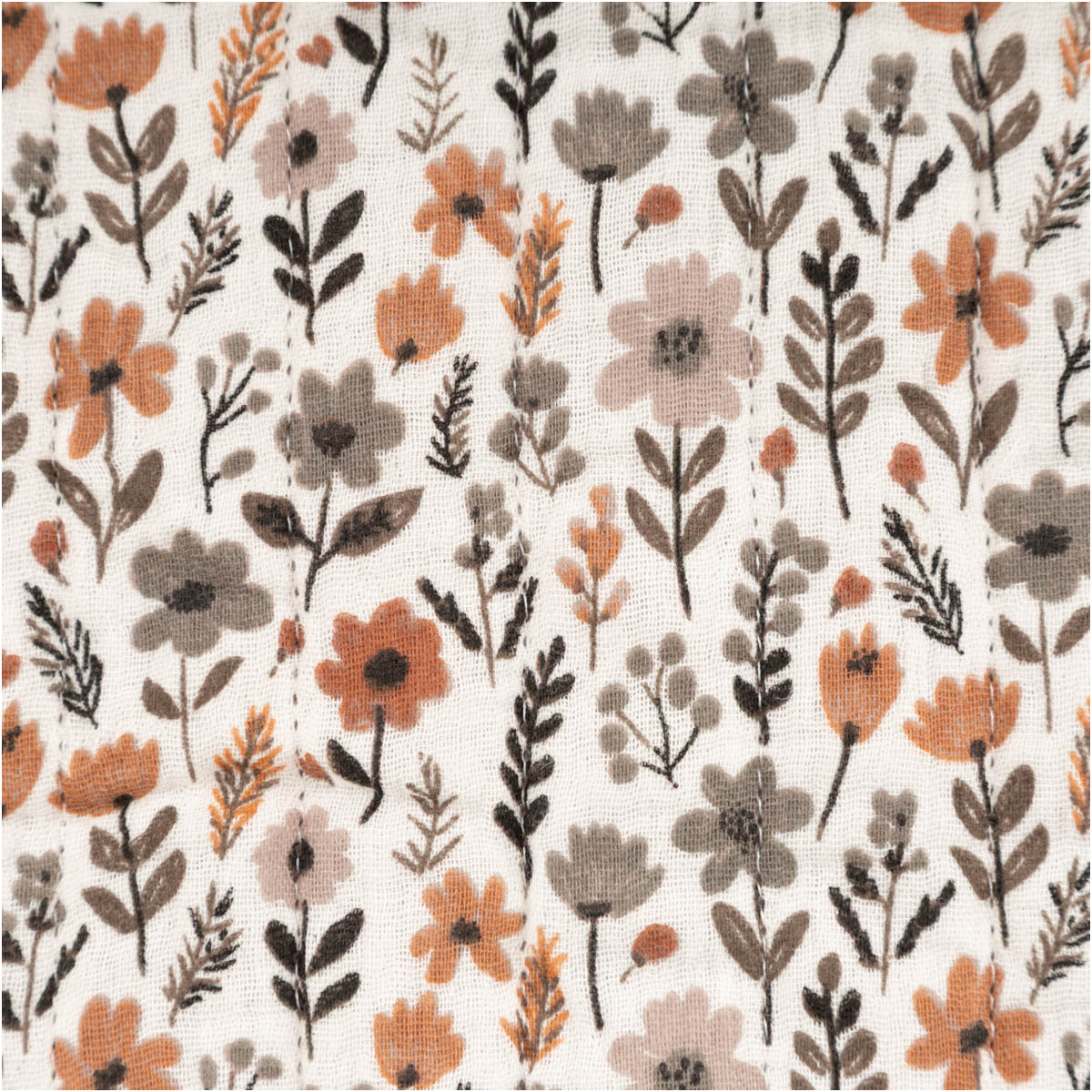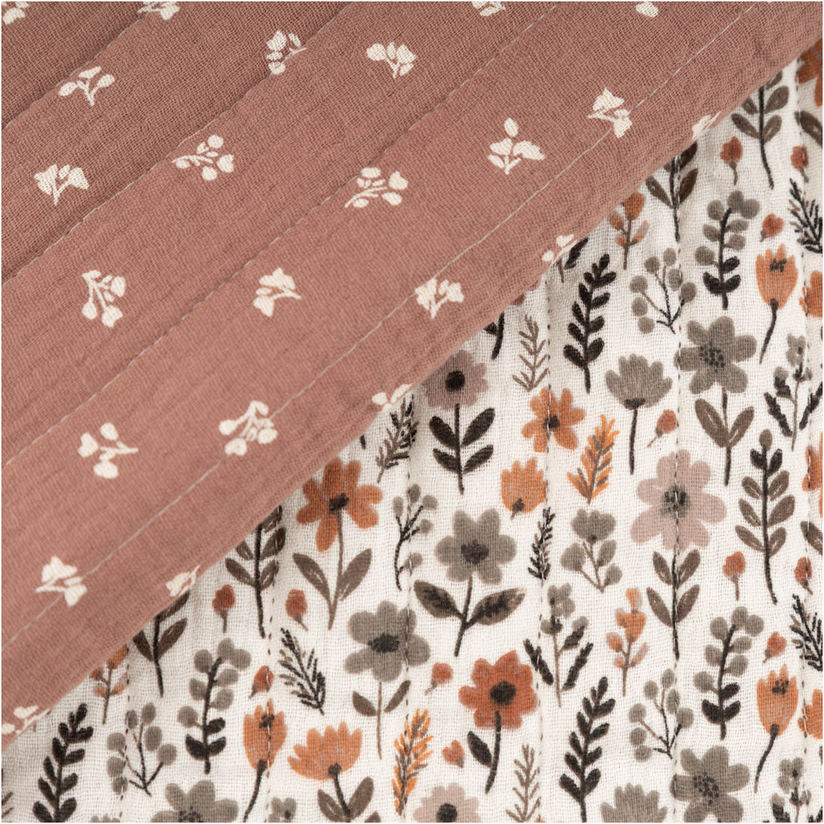 Der Doubleface-Musselin-Steppstoff „Maddy“ ist ein hochwertiger, schadstoffgeprüfter Steppstoff mit 3-lagigem Aufbau: zwei weiche Baumwoll-Musselin-Außenlagen und eine wärmende Polyester-Vlieslage. Durch die Längsstreifen-Steppung bleibt der Stoff formstabil und erhält ein sanftes Volumen. Dank zweiseitigem Design (Blumen braun/wollweiß & Mini-Motiv) ist der Stoff beidseitig nutzbar und ideal für Babydecken, Schlafsäcke, Übergangsjacken, Westen, Kissen, Decken und kreative DIY-Taschen. Pflegeleicht bei 30 °C, 130 cm Breite – perfekt für größere Schnittteile.