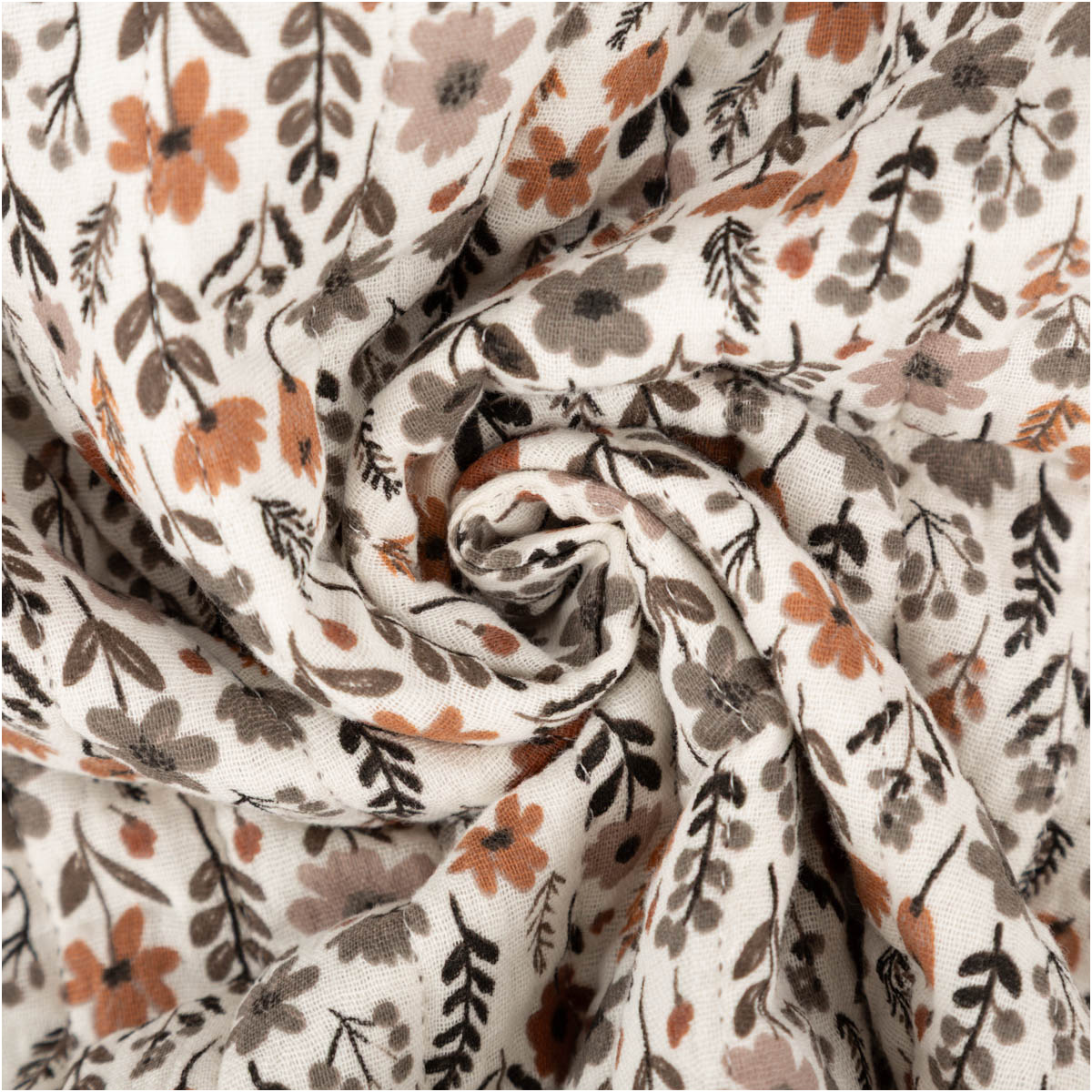 Musselin Steppstoff „Maddy“ Doubleface – Blumen braun/wollweiß, 130 cm