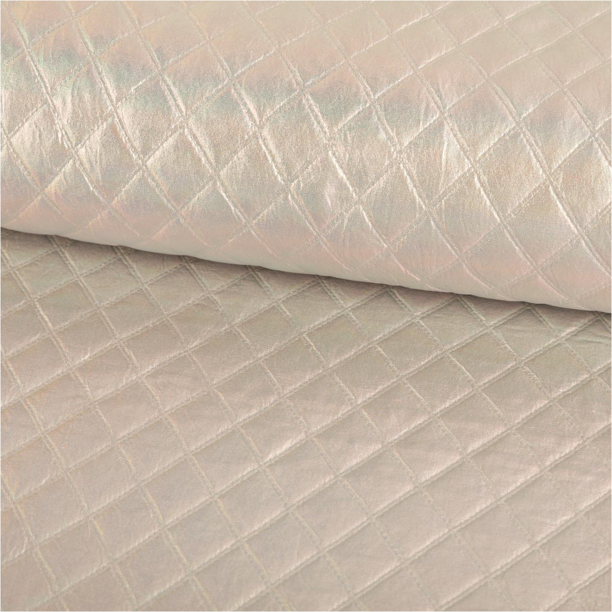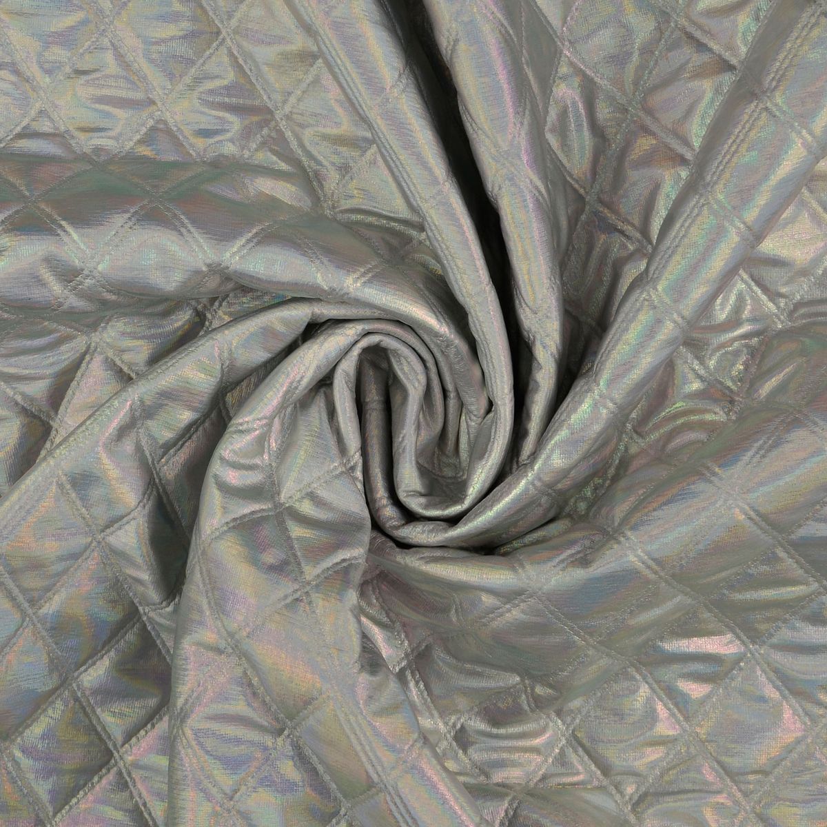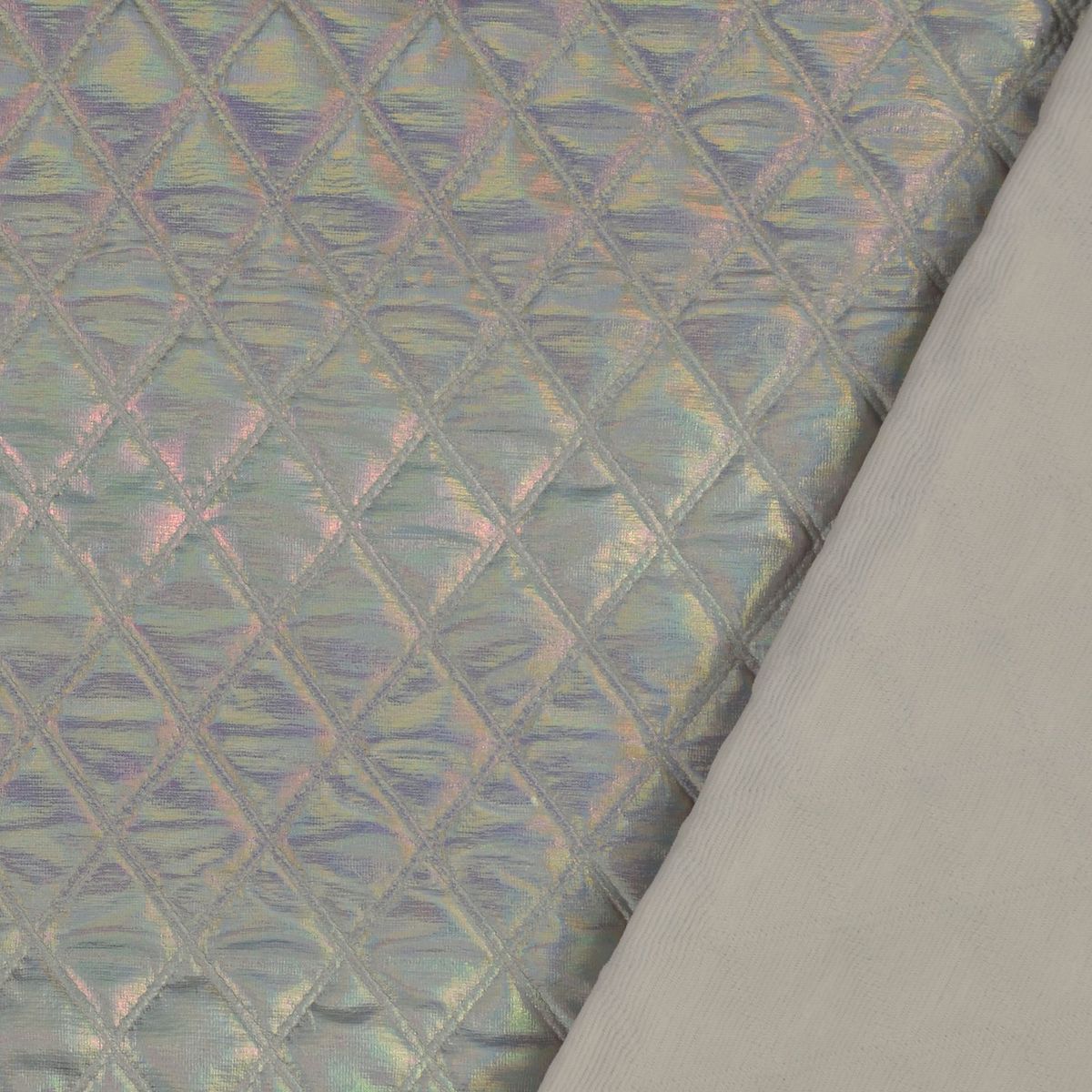 • Silber irisierender Steppstoff mit rautenförmiger Steppung